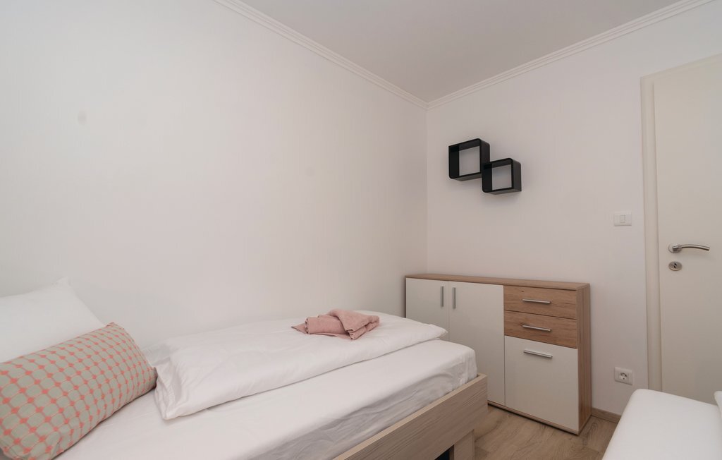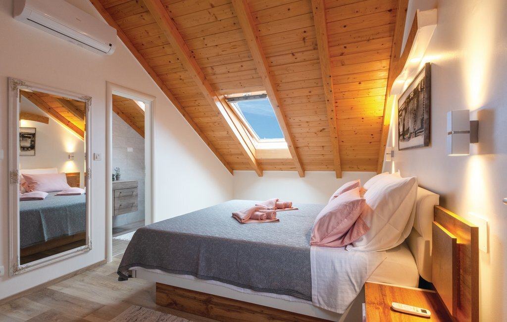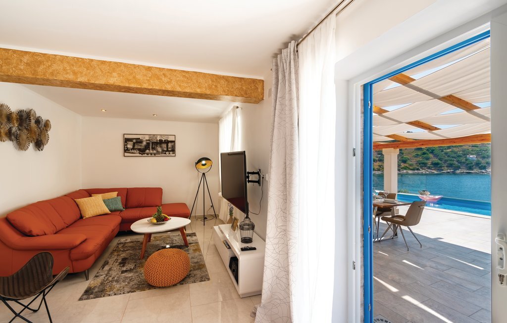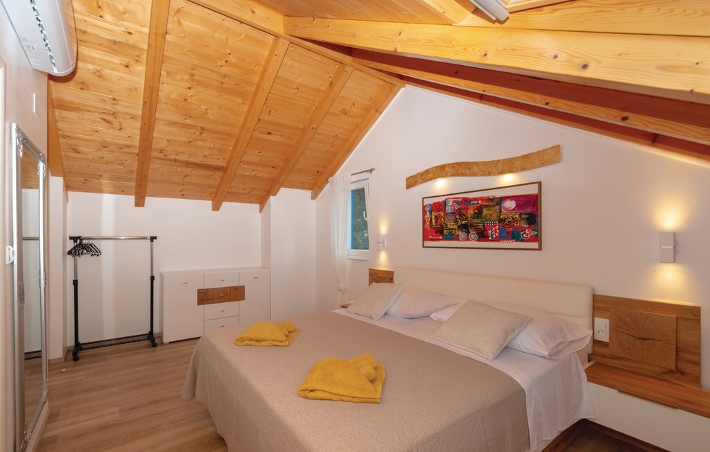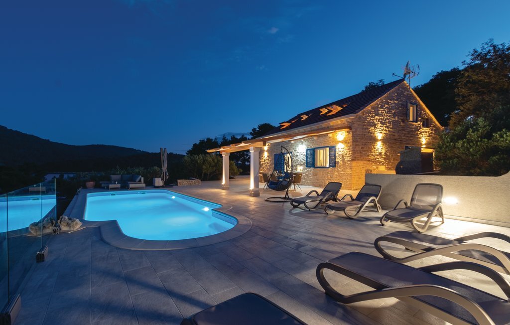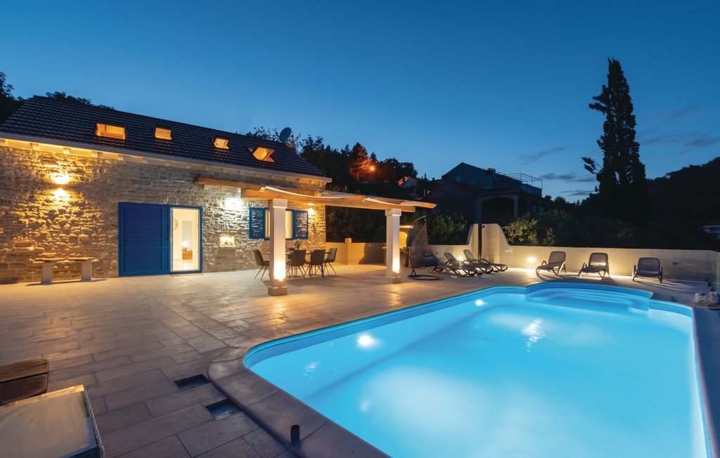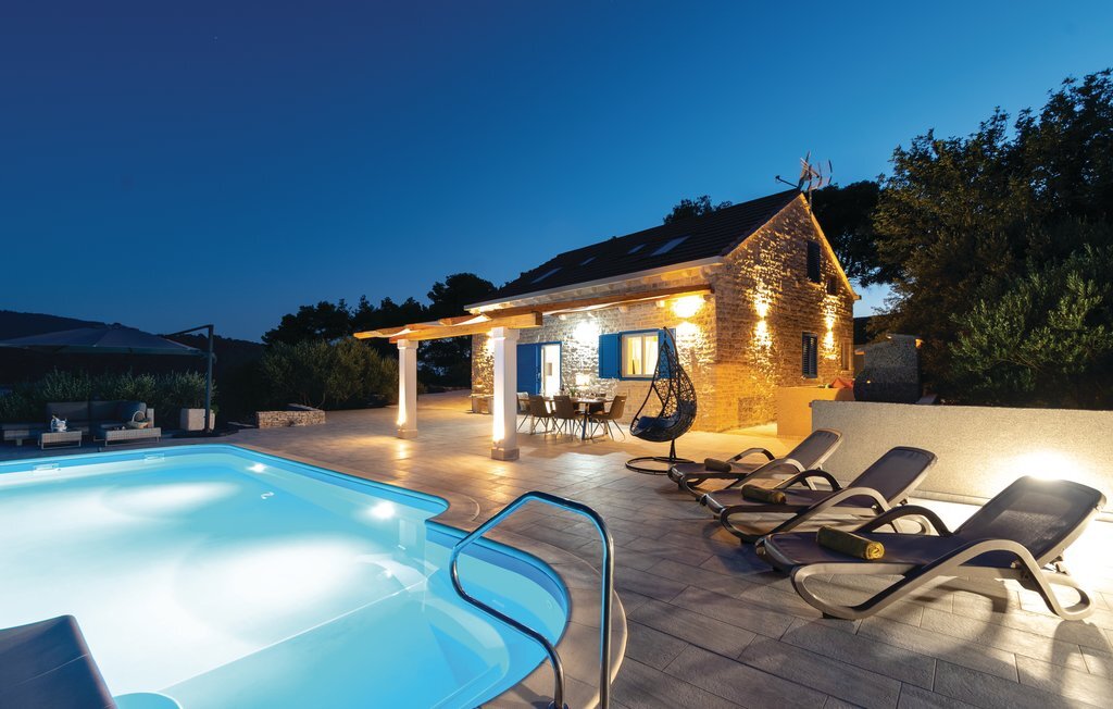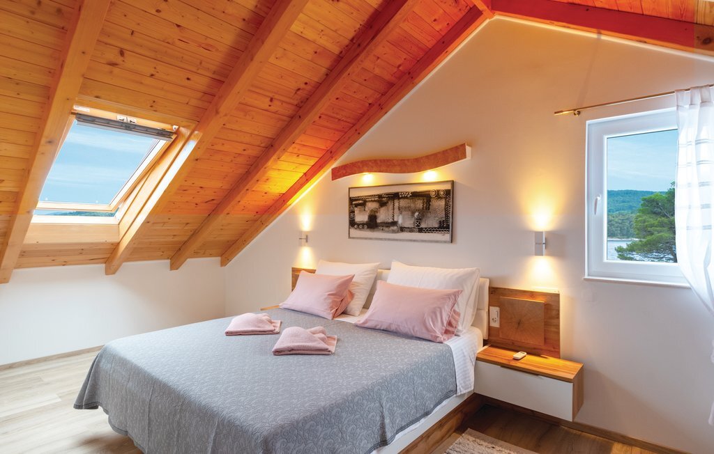 A peine arrivé à Vela Luka par le ferry, vous apercevrez une belle maison en pierre sur une propriété agréable. C'est là que se trouve cette magnifique maison de vacances avec piscine, en bordure de la petite presqu'île, dont une partie est orientée vers l'ouest et l'autre vers l'est, ainsi que vers Vela Luka, à quelques kilomètres de là. Un paradis pour se reposer. L'aménagement élégant et le bon équipement vous offrent le confort nécessaire. La hauteur de plafond la plus basse dans les combles est de 80 cm. Explorez l'île de Korula, avec ses magnifiques oliveraies, ses vignobles et ses épaisses forêts de pins. De nombreux restaurants de l'île proposent des spécialités délicieuses et rares à base de poisson frais et d'herbes méditerranéennes. Pour connaître le programme des manifestations culturelles et divertissantes, renseignez-vous auprès de l'office du tourisme local, afin de ne pas manquer un concert, une exposition ou une fête folklorique et de pêche authentique. L'accès à la maison n'est pas goudronné.