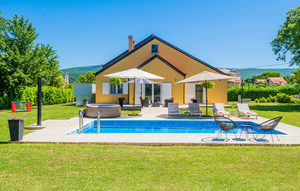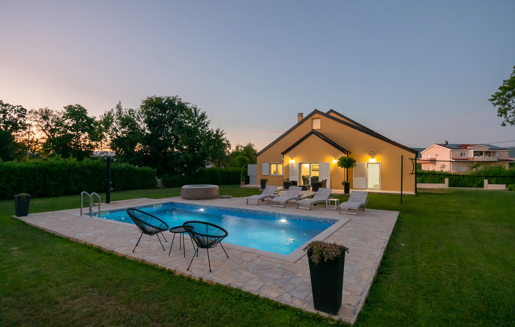 Bien-être à l'extérieur : Location de vacances disposant de chaises-longues et d'un ou plusieurs équipements tels que piscine extérieure, jacuzzi extérieur, lit à baldaquin de jardin etc...
