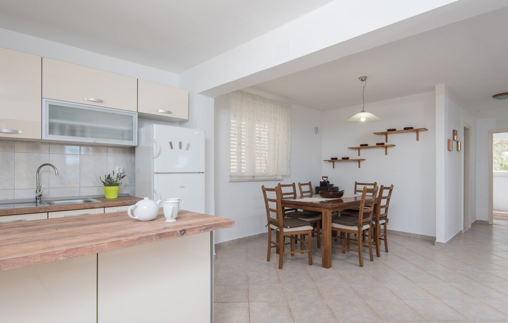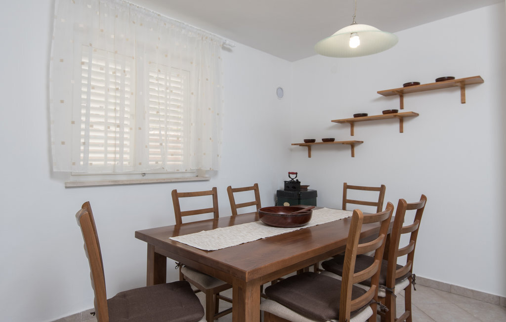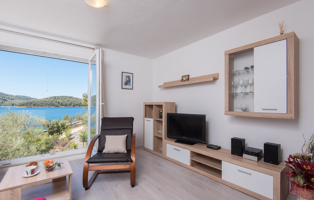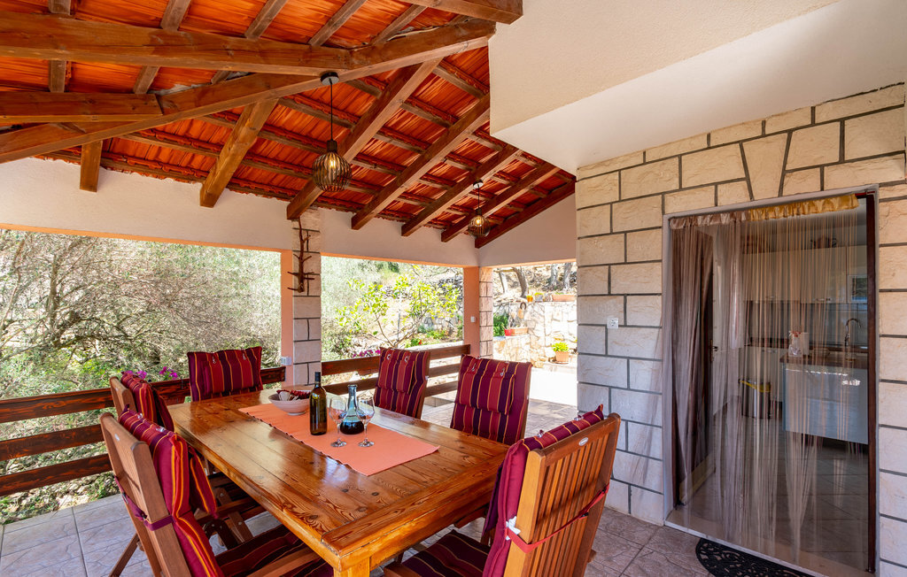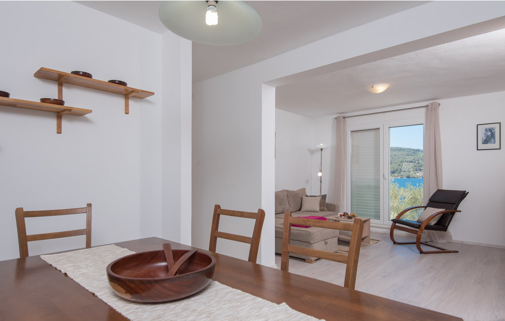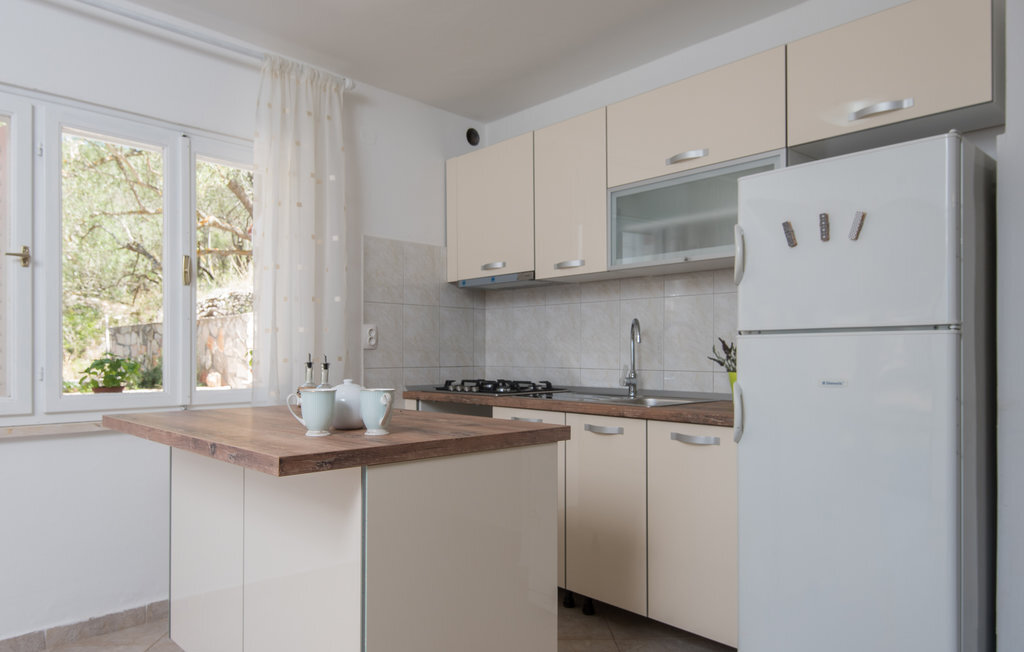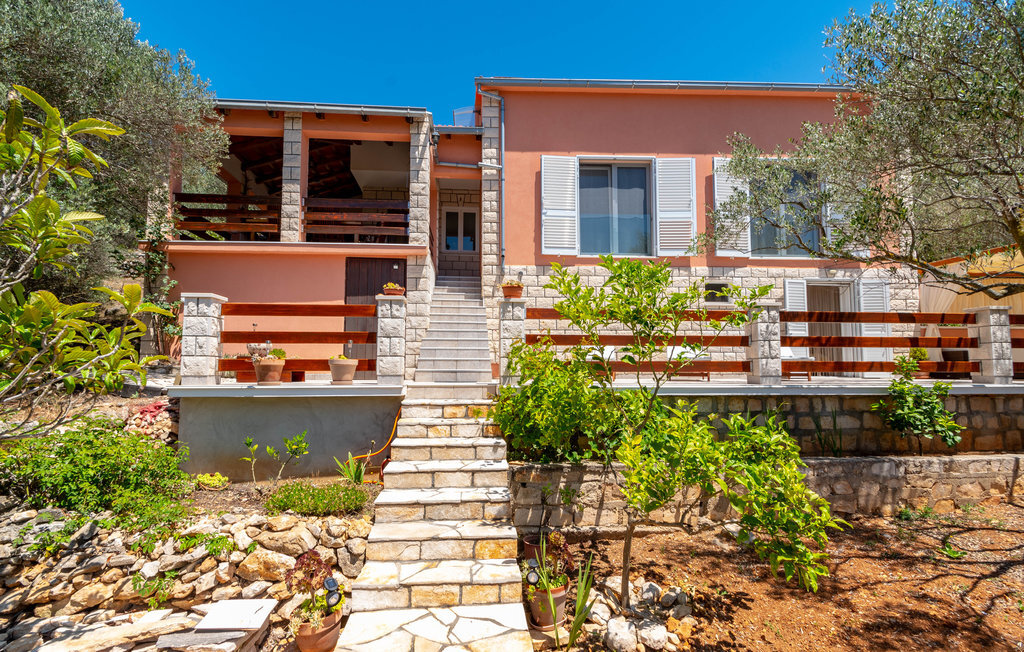 Maison de vacances aménagée de manière pratique dans un cadre idyllique, à quelques pas de la mer et non loin du port de Vela Luka. Profitez de vos vacances sur la terrasse spacieuse avec barbecue. La chambre à coucher et la salle de bain au rez-de-chaussée sont accessibles séparément de l'extérieur. Comme l'alimentation électrique est exclusivement assurée par l'énergie solaire et un groupe électrogène, l'utilisation d'appareils électriques est très limitée. Les derniers 700 m d'accès à la maison ne sont pas goudronnés, il faut donc conduire un peu plus prudemment. Un chemin caillouteux d'environ 80 m vous mène de la route à l'espace extérieur verdoyant de la maison.