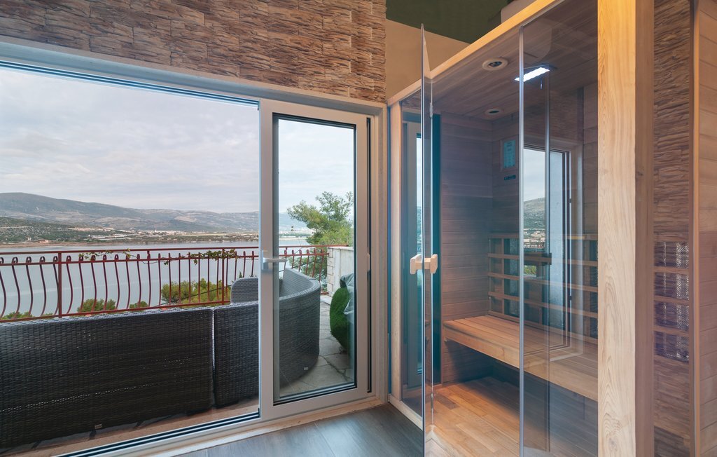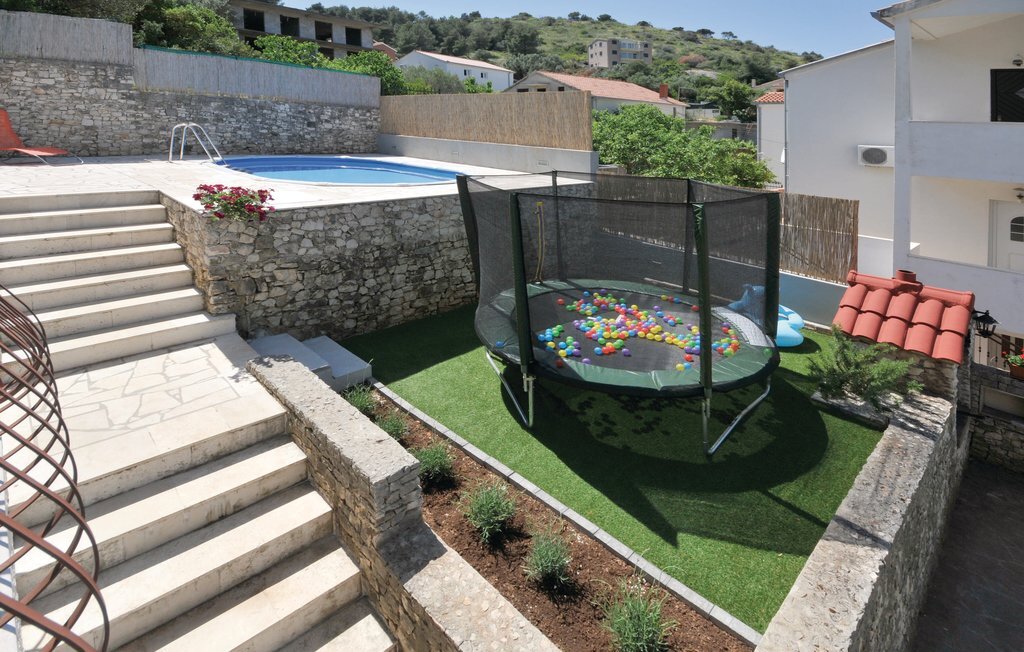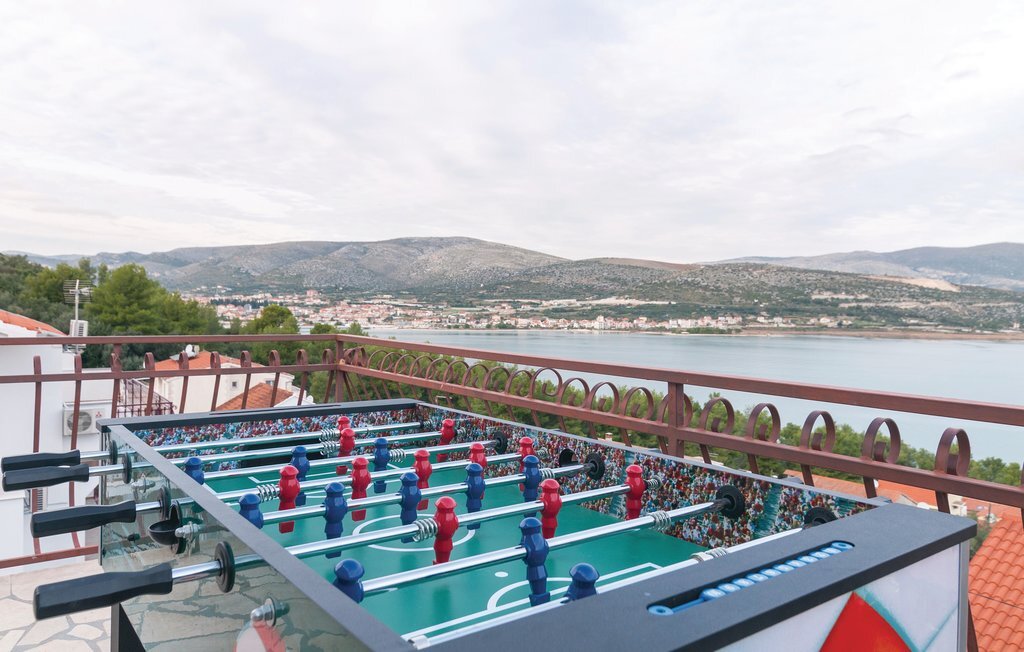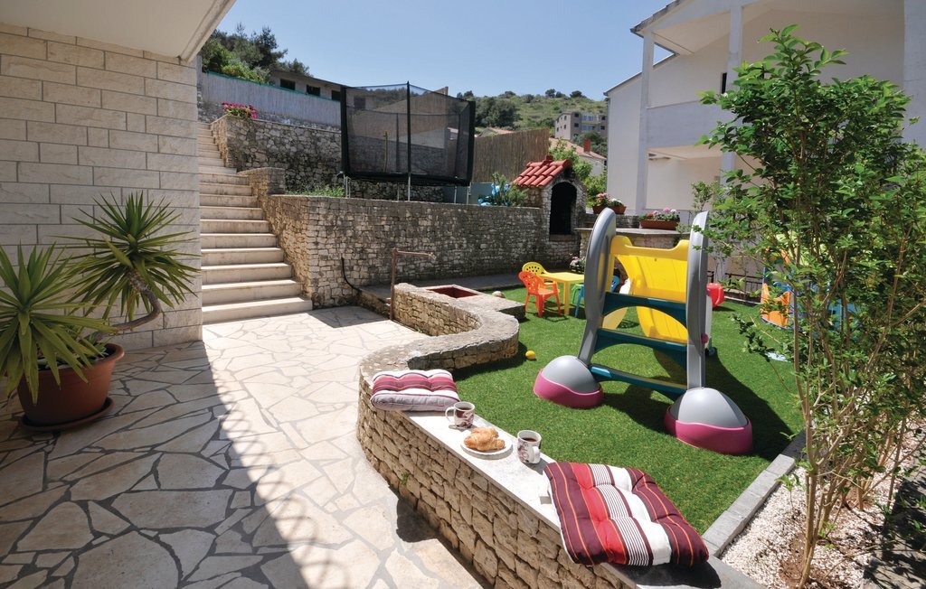 Cette maison jumelée, joliment et fonctionnellement aménagée, se trouve dans la localité de Misevac sur l'île de Ciovo, qui est reliée à la ville de Trogir par un pont. Votre logement de vacances est situé sur une colline et dispose donc d'une belle vue panoramique sur la mer. Vous disposez de deux unités d'habitation séparées, reliées par des escaliers extérieurs. La possibilité de baignade la plus proche est une plage de galets où vous pourrez profiter pleinement du soleil et de la mer. Ce logement de vacances est idéal pour les amis ou les familles qui arrivent sans voiture, car l'aéroport n'est qu'à 5 km de Trogir.