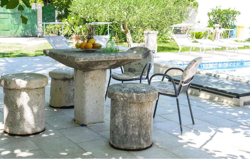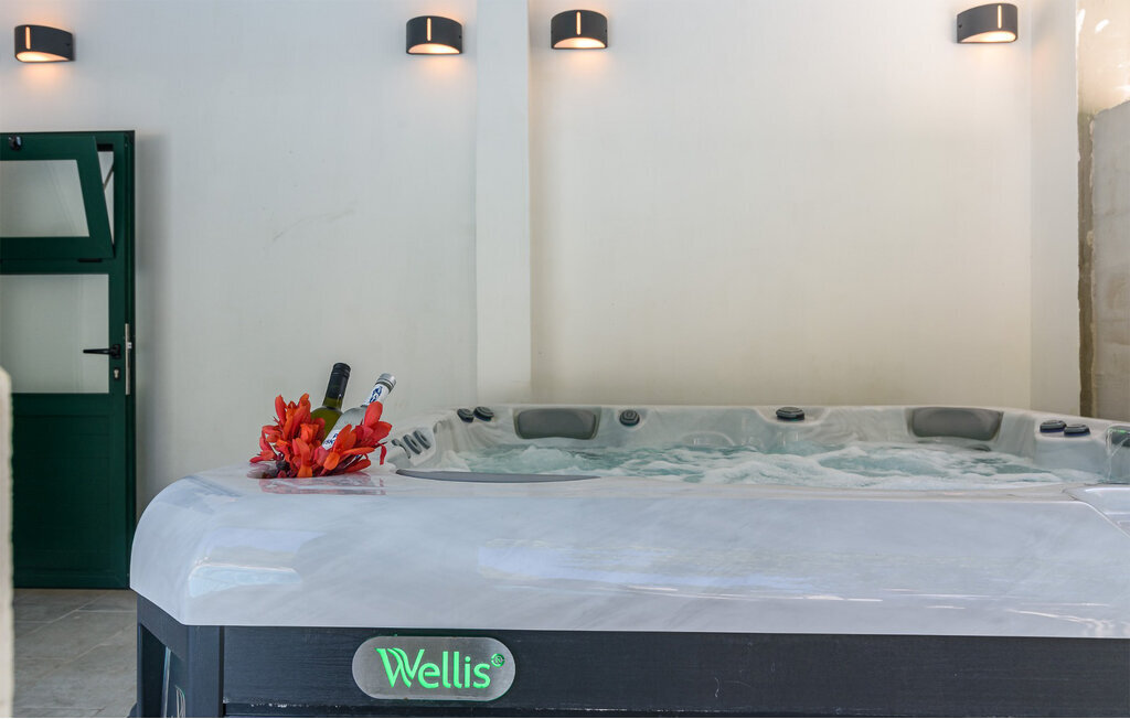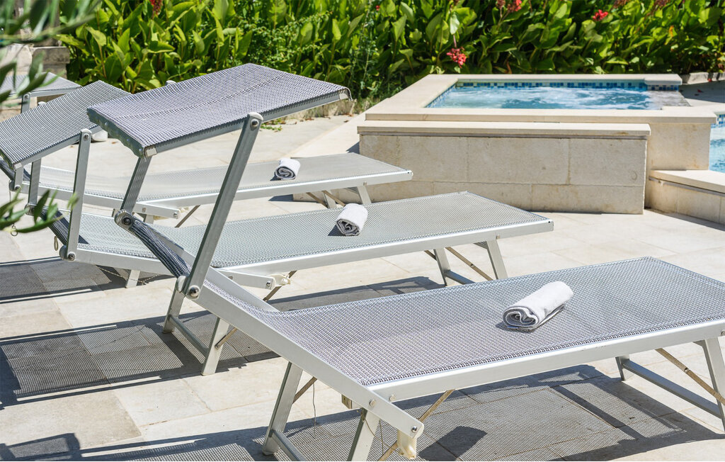 Bien-être à l'extérieur : Location de vacances disposant de chaises-longues et d'un ou plusieurs équipements tels que piscine extérieure, jacuzzi extérieur, lit à baldaquin de jardin etc...