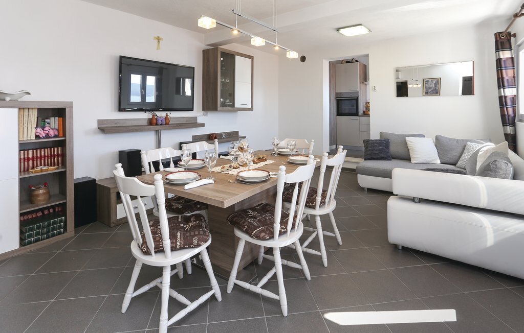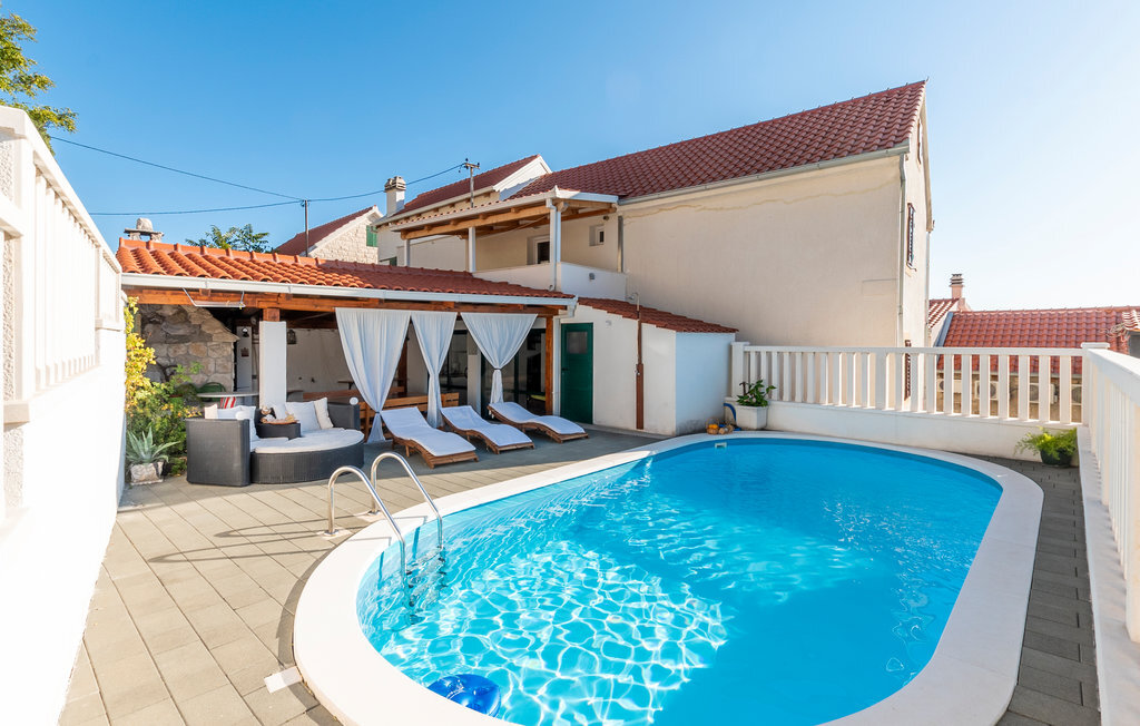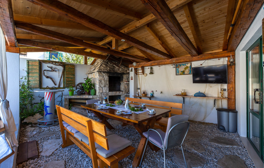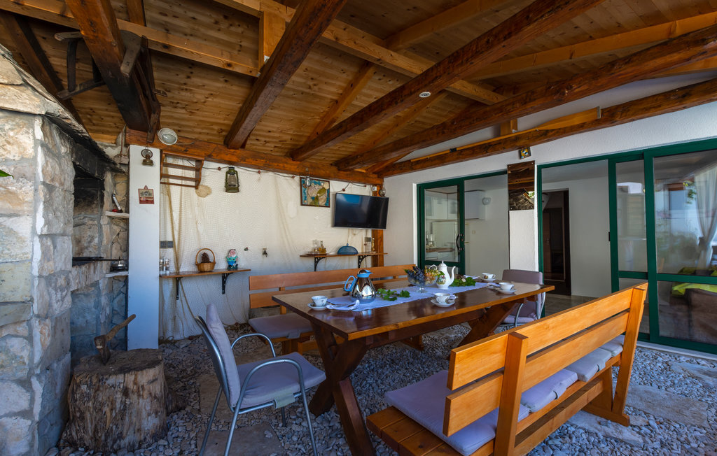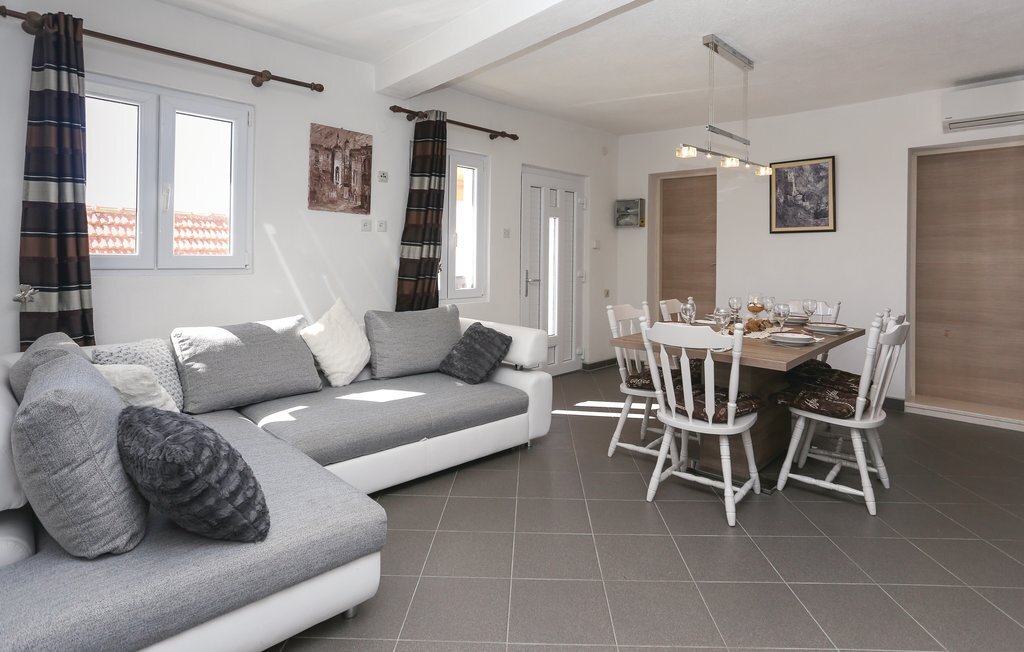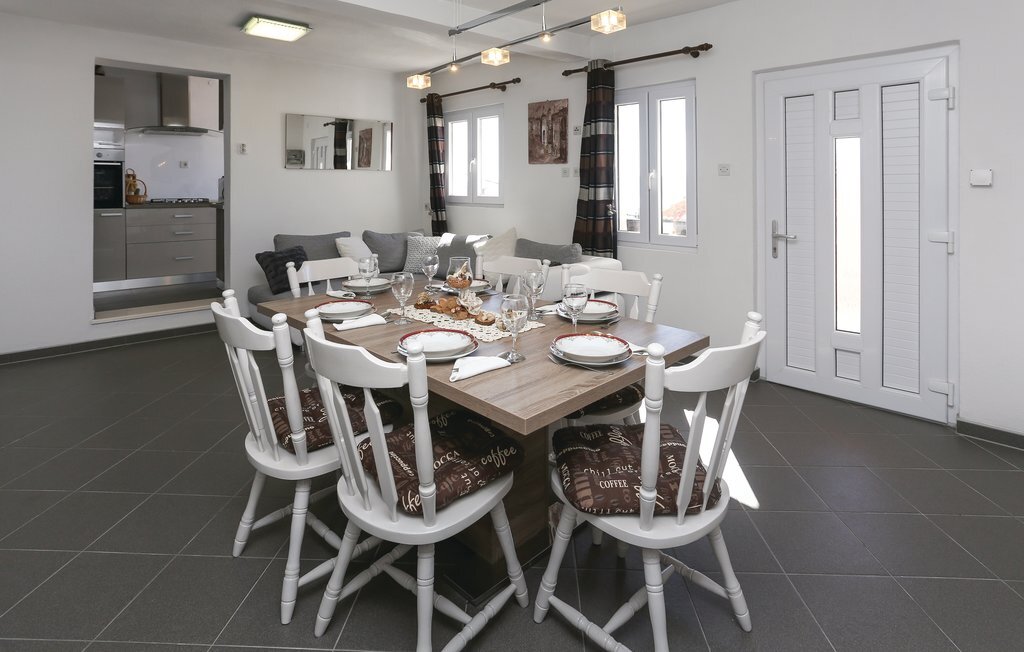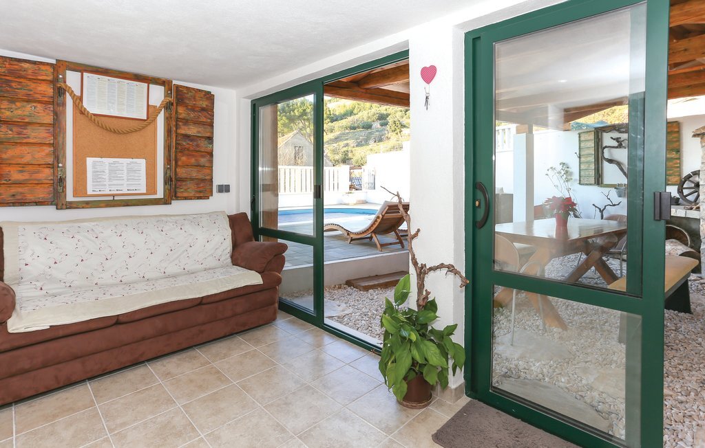Dans la petite station balnéaire de Stanici, près d'Omis, se trouve cette maison mitoyenne de deux étages, aménagée simplement, avec piscine. Ici, vous pouvez profiter de l'air frais et du beau paysage, loin du stress quotidien et des gaz d'échappement de la ville, et vous détendre vraiment pendant vos vacances. Le logement est situé sur une pente, ce qui rend le chemin vers les belles plages de galets escarpé. Si vous cherchez à varier les plaisirs et à rendre vos vacances actives, vous trouverez à Omis et à Makarska de nombreuses activités et possibilités de divertissement, de sorte que vous ne risquez pas de vous ennuyer en vacances.