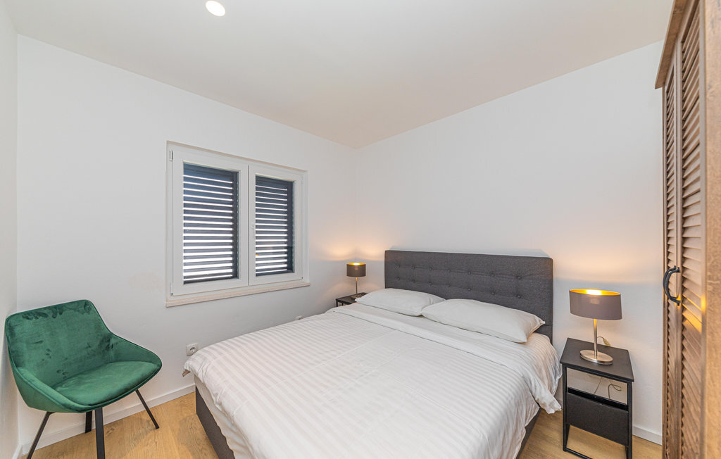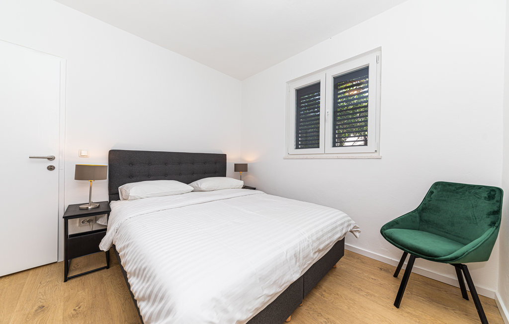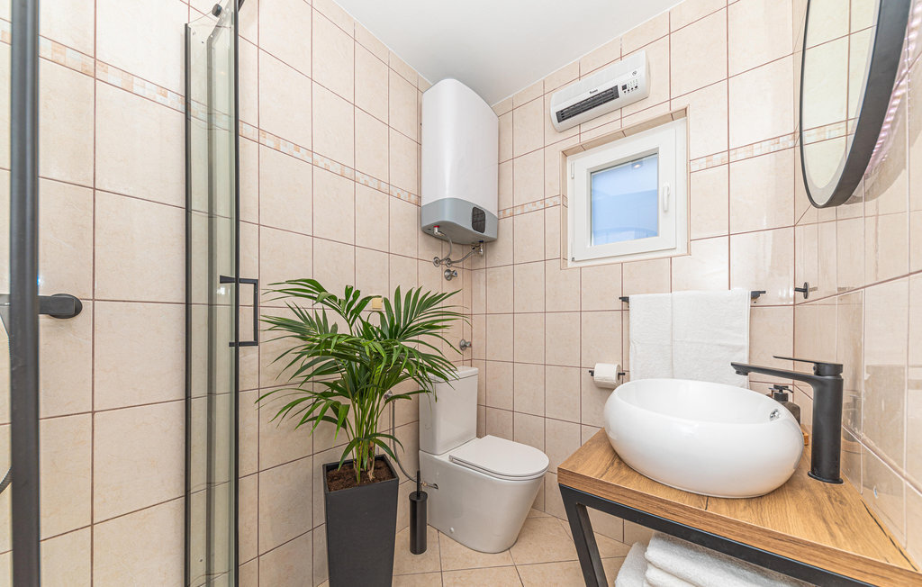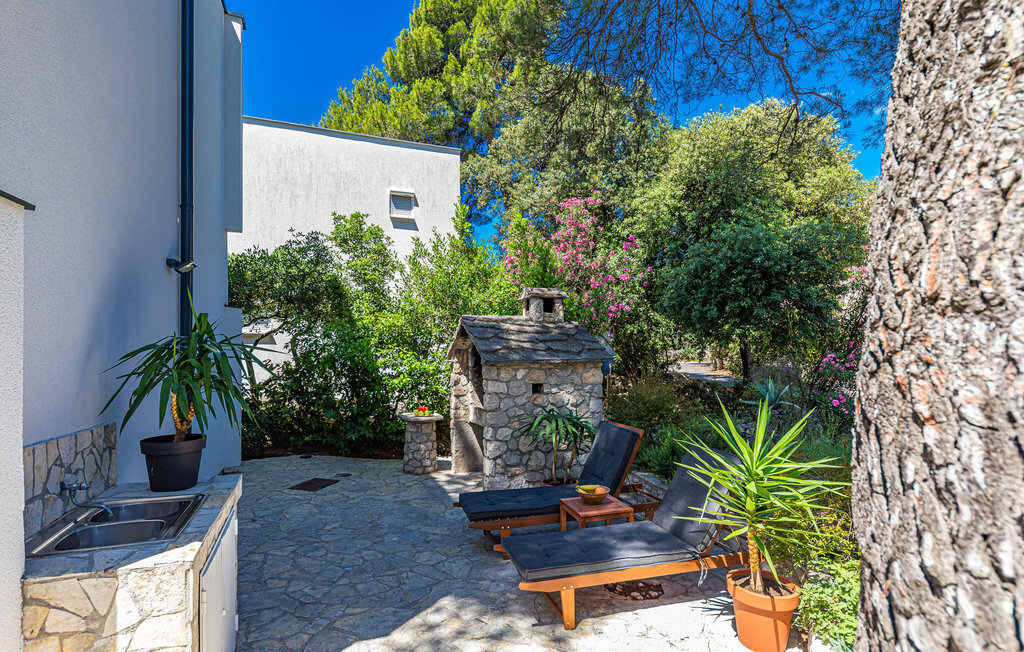 Maison de vacances aménagée simplement sur deux étages reliés par des escaliers extérieurs. Sur le terrain à proximité de la mer, vous pouvez déguster de délicieux barbecues à l'ombre des pins. Une plage de galets adaptée aux enfants se trouve à quelques minutes à pied. Visitez le village de Vodice, qui propose de nombreuses animations pour petits et grands. Amarrage en accord avec le propriétaire.