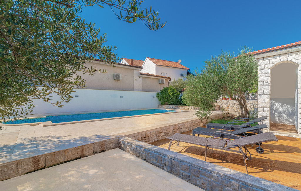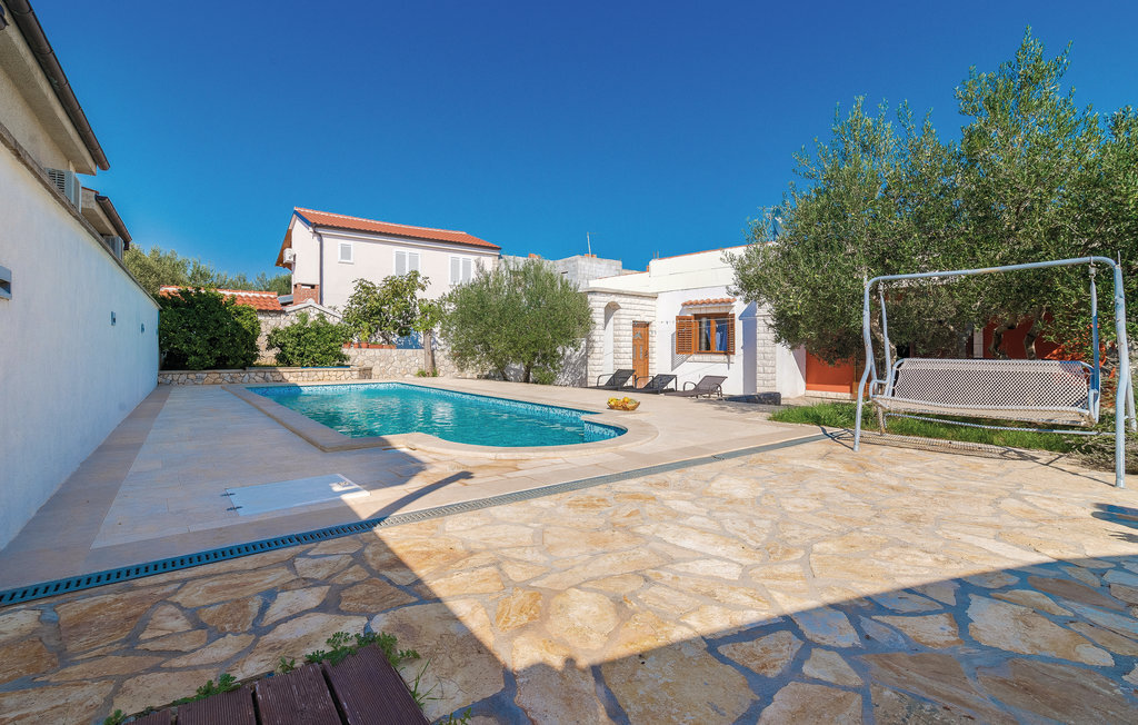 Passez d'agréables vacances sur l'île de Murter, dans cette belle maison avec piscine située à la périphérie du village de Jezero. Elle se trouve sur un terrain spacieux et clôturé, dans un environnement très calme et verdoyant. Cette maison de vacances aménagée avec goût et fonctionnalité répondra à vos besoins. Faites une promenade jusqu'au centre du village, où vous trouverez diverses installations. Profitez de la piscine ou de la nature et de la mer magnifique sur l'une des plages environnantes. Goûtez aux spécialités de la région dans l'un des restaurants et ressentez le charme de cette petite ville dalmate.