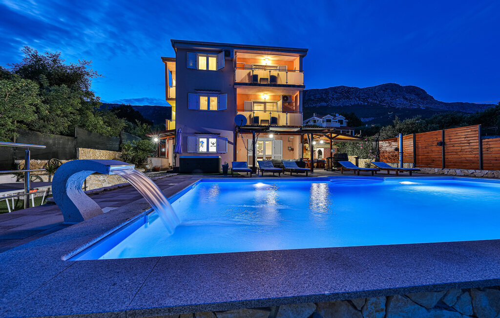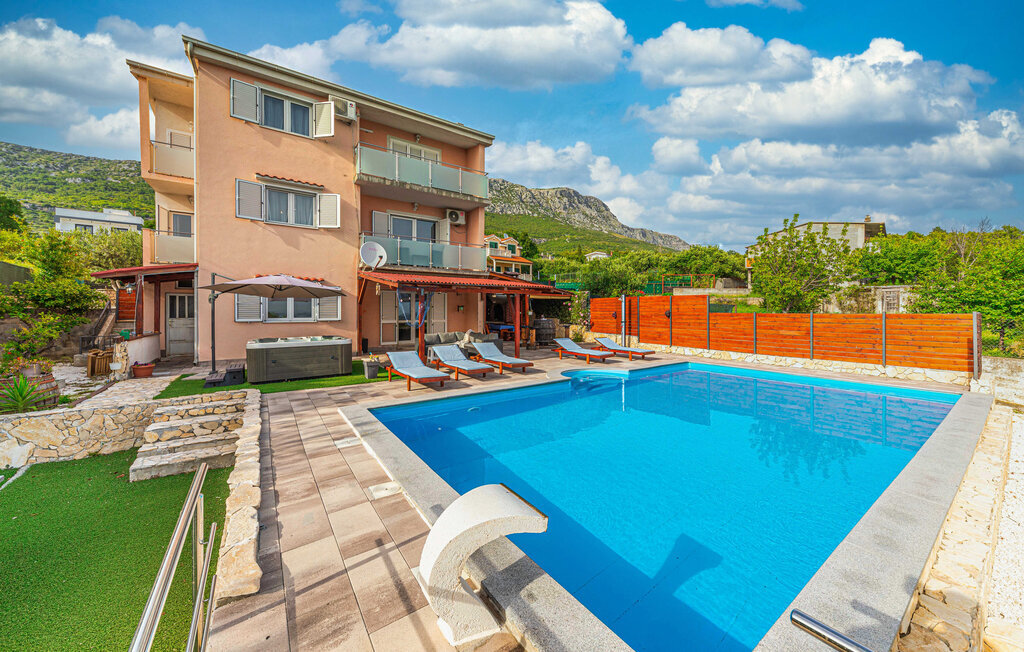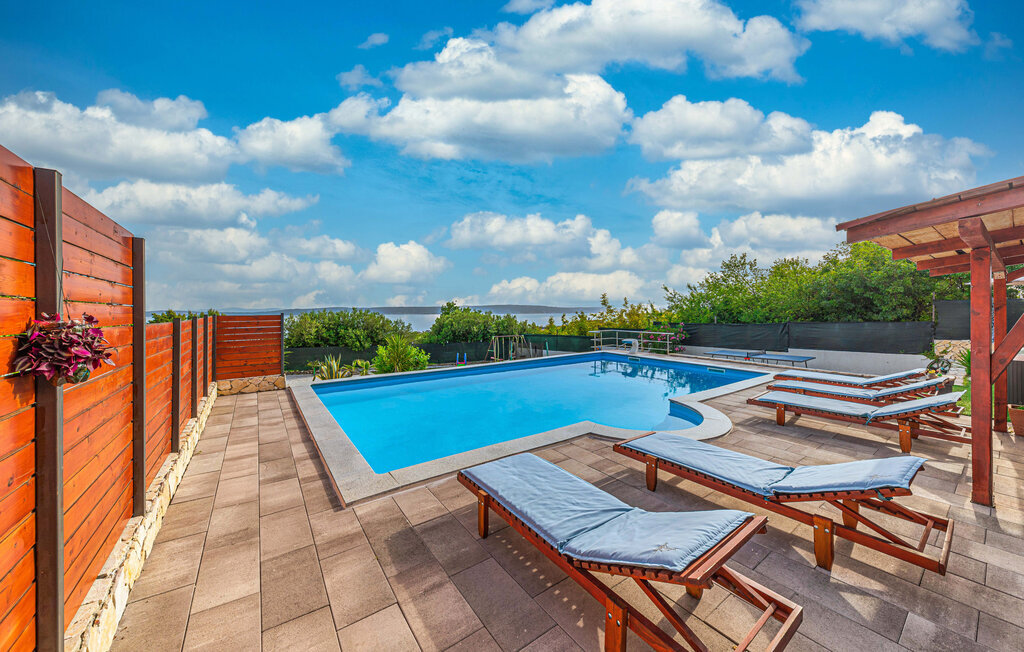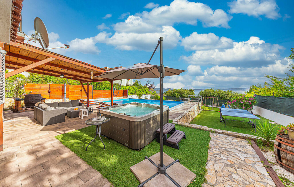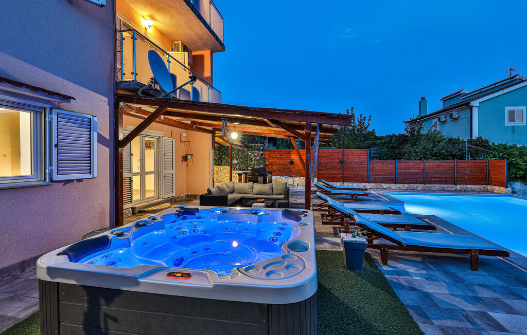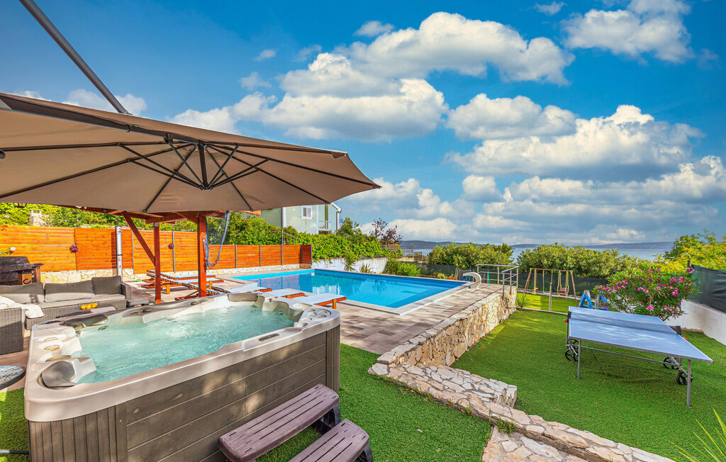 Bien-être à l'extérieur : Location de vacances disposant de chaises-longues et d'un ou plusieurs équipements tels que piscine extérieure, jacuzzi extérieur, lit à baldaquin de jardin etc...