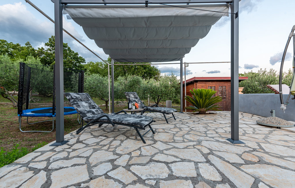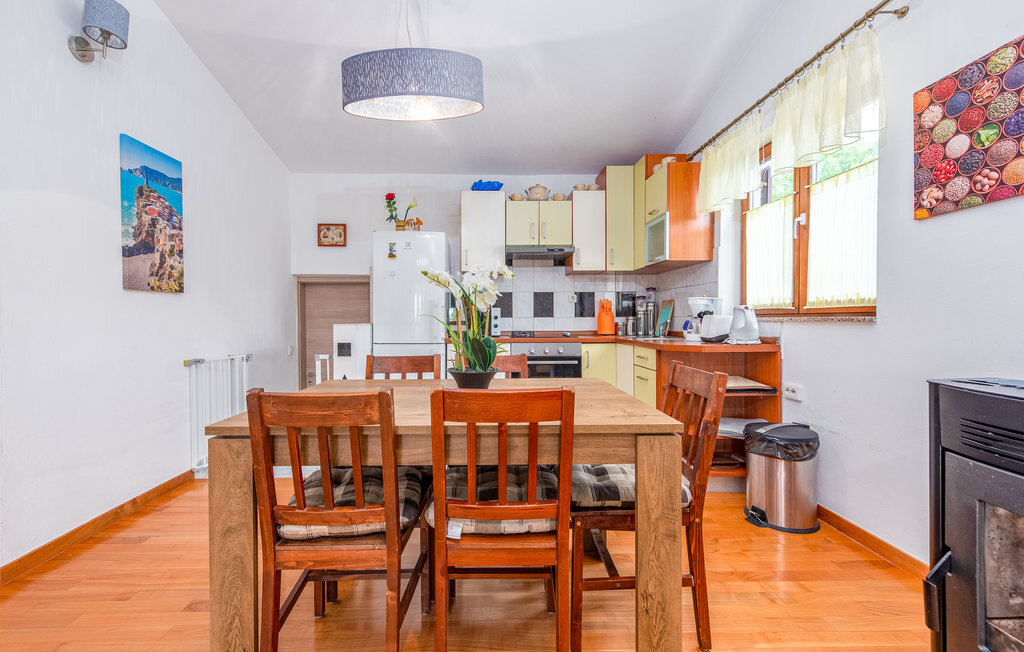Dans ce beau logement, vous pourrez profiter de vacances merveilleusement reposantes avec toute votre famille ou vos amis, y compris votre animal à quatre pattes. Profitez du calme de l'environnement rural et laissez le stress de la vie quotidienne s'envoler. Dans la cour, vous pouvez parfaitement vous détendre au bord de la piscine ou dans la piscine et laisser les jeunes enfants jouer sans souci. Prenez un bain de soleil sur l'une des chaises longues et permettez-vous de rêver. Depuis le petit balcon, vous avez une vue magnifique sur le paysage et depuis la cuisine, vous atteignez en quelques marches la "Konoba", où vous pouvez vous asseoir confortablement le soir.