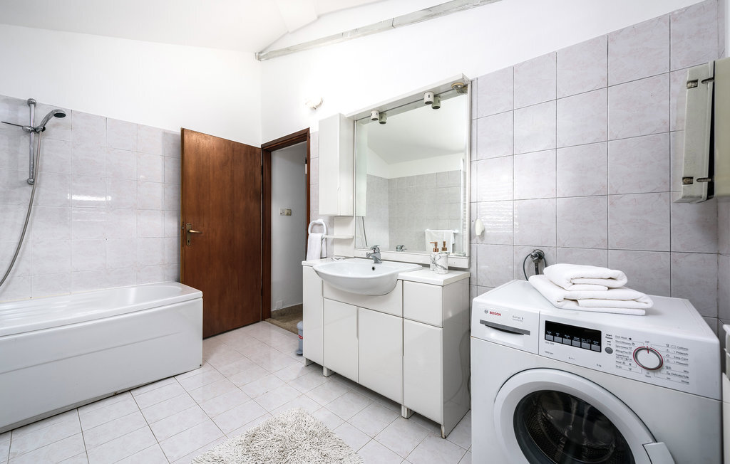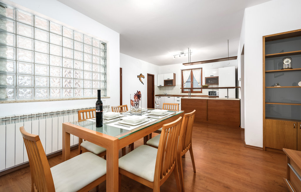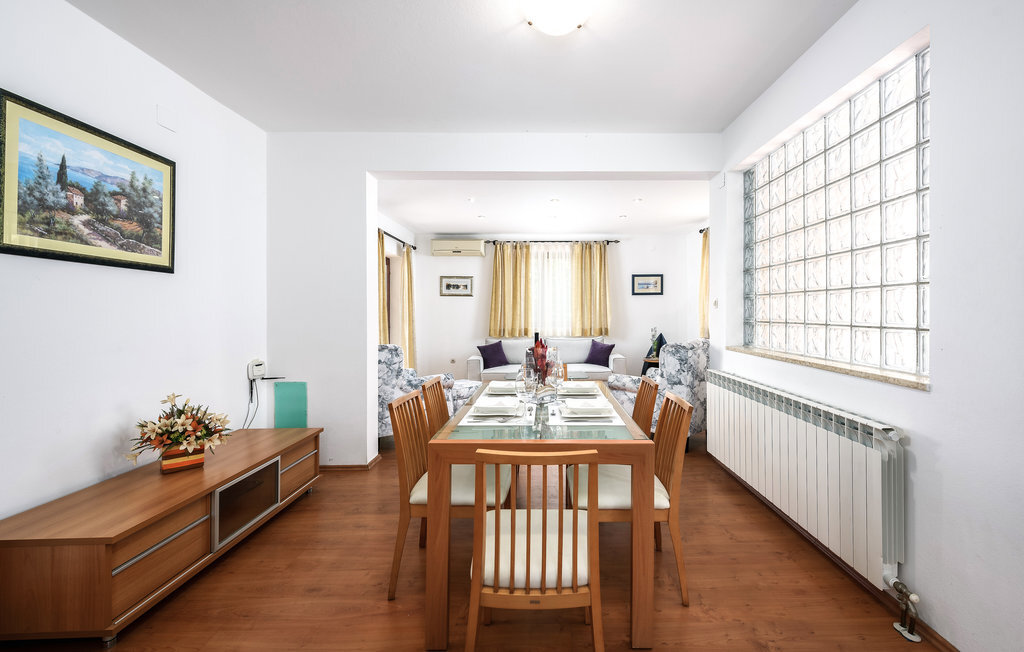 Cette maison de vacances confortable avec beaucoup d'espace vous attend sur un grand terrain clôturé avec une vue panoramique de rêve et dans un très bel environnement. Elle se compose de deux appartements reliés par un escalier intérieur. Elle convient très bien à deux familles. Sur la terrasse de 70 m², vous pouvez déguster tranquillement un petit verre de Malwasia pendant que vos enfants jouent dans le jardin. Vous y trouverez un barbecue extérieur sur lequel vous pourrez préparer de savoureuses grillades. À quelques minutes à pied de la maison se trouvent de belles plages où vous pourrez vous baigner dans une mer cristalline. Plusieurs épiceries et un restaurant se trouvent également à proximité. La magnifique piscine permet de se rafraîchir pendant les chauds mois d'été. Liznjan est un village typique de l'Istrie, où le tourisme de masse est encore un concept étranger. Non loin de là, Medulin offre une vie nocturne riche, notamment pour les plus jeunes, des terrasses d'été aux discothèques en passant par les bars de plage. La ville pittoresque de Pula invite à la flânerie et au shopping.