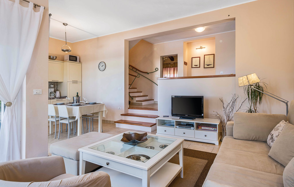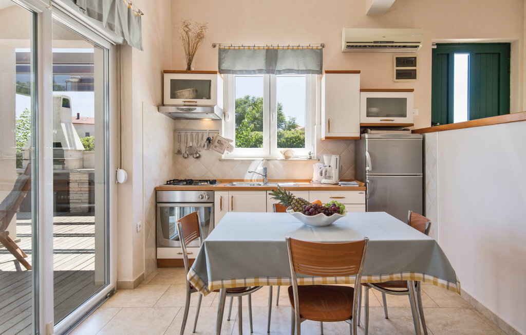Belle maison de vacances aménagée avec soin et composée de deux unités avec des entrées séparées. Elle est équipée d'un poêle à bois pour les soirées plus froides. La maison est très lumineuse, située dans un environnement calme et entourée d'un magnifique jardin méditerranéen. Vous pourrez vous y reposer en toute tranquillité et vos enfants pourront s'ébattre et jouer sans être dérangés. Un barbecue extérieur est également à votre disposition. Depuis les terrasses, vous avez une vue de rêve sur les environs pittoresques et très beaux, qui offrent de très bonnes promenades. Le petit village de Liznjan se trouve loin du tourisme de masse et pourtant non loin de l'ancienne ville romaine de Pula. Là-bas, diverses manifestations, de bons restaurants et quelques trésors culturels intéressants vous attendent. Non loin de là se trouvent les îles de Levan, Ceja et Bodulas, où vous pourrez faire une belle excursion en bateau. Une expérience amusante pour petits et grands.