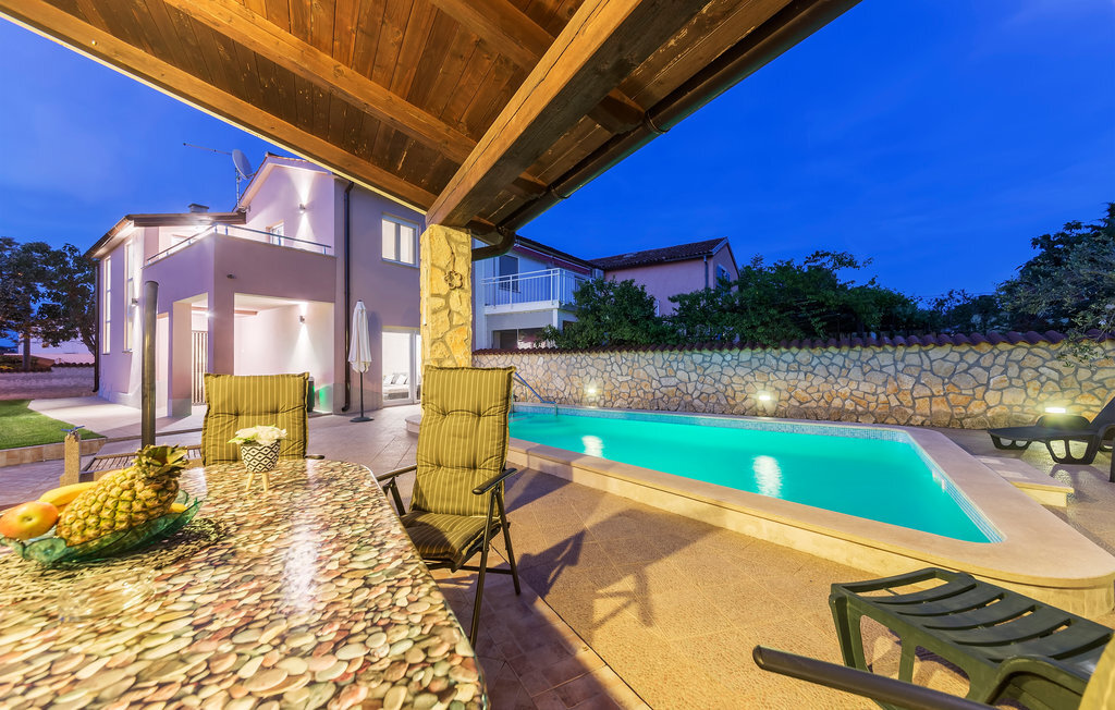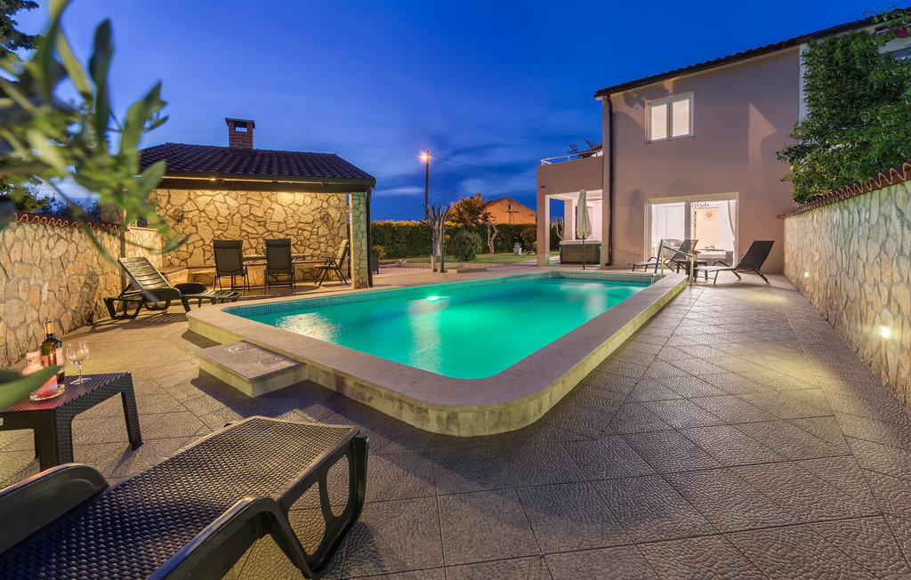 Cette magnifique maison de vacances se trouve dans la petite ville de Banjole, près de Pula. Elle a été entièrement rénovée en 2010. L'intérieur est confortable et aménagé avec soin. La cuisine est moderne et bien équipée. Le beau jardin est planté de différentes plantes et recouvert d'une pelouse bien entretenue. Il est entièrement fermé par un mur, ce qui permet de passer des vacances en toute tranquillité. Dans le jardin, une piscine est à votre disposition et vous invite à vous rafraîchir. Vous y trouverez également une salle de réunion - Konoba - équipée d'une cheminée et d'une petite cuisine à thé. Elle est idéale pour les dîners en commun, que vous pouvez préparer sur le barbecue en pierre dans le jardin et déguster ensuite dans cette atmosphère conviviale et sereine. Banjole compte de nombreuses criques avec des plages de galets et l'école de plongée du village vous offre la possibilité d'explorer le monde sous-marin. Faites une promenade en ville à Pula et visitez les nombreux monuments datant de l'époque romaine.