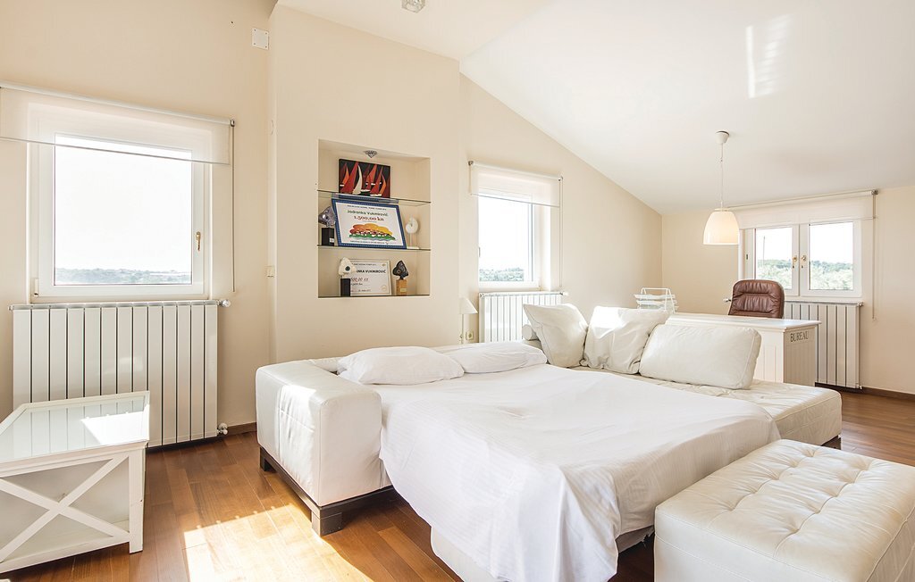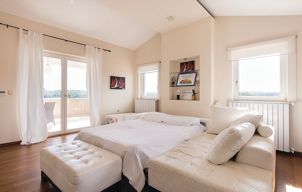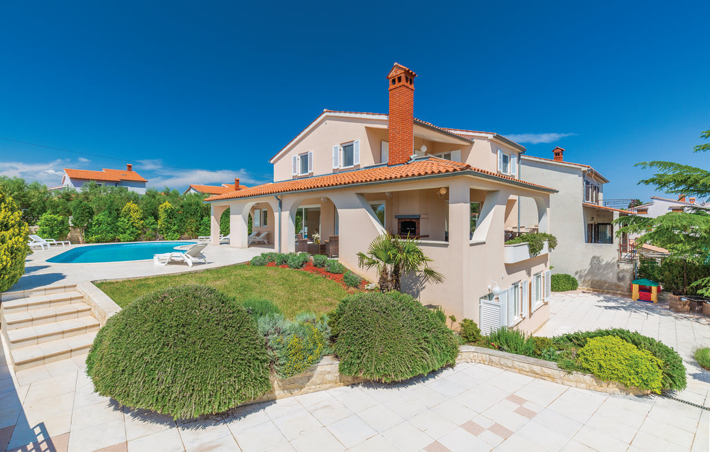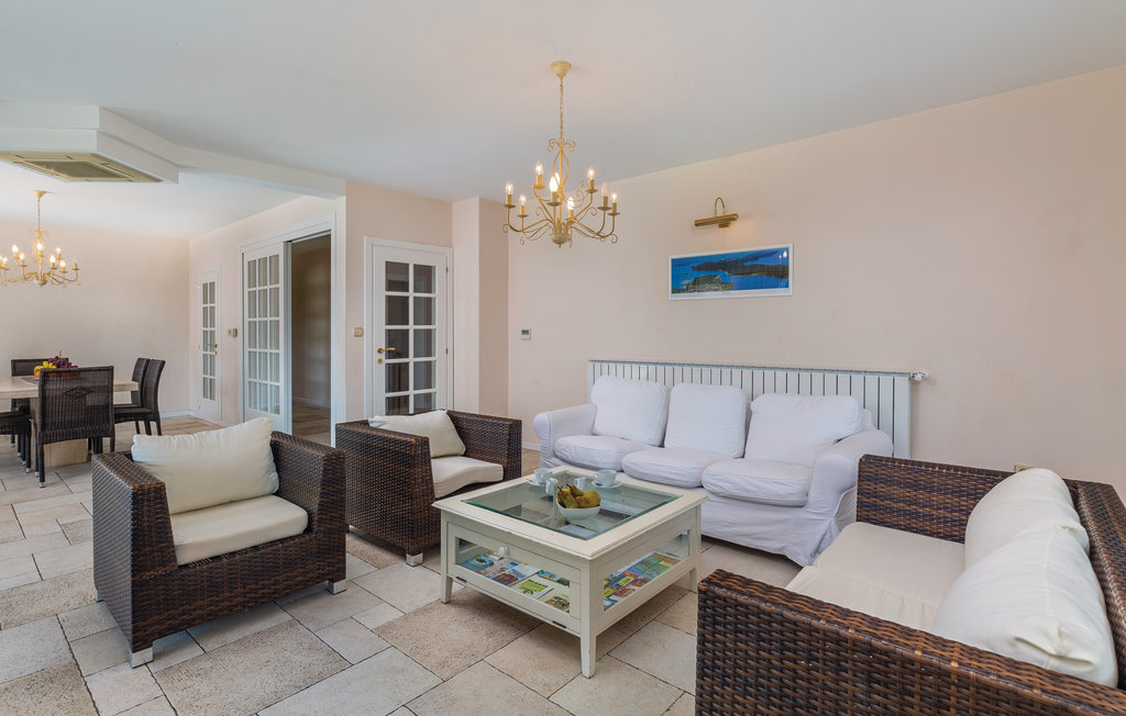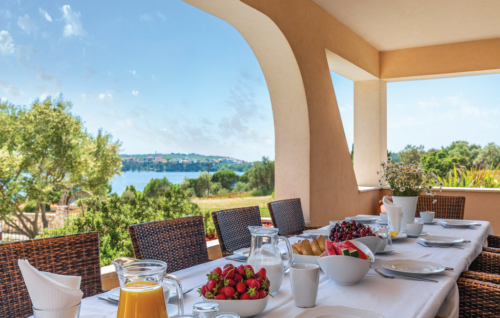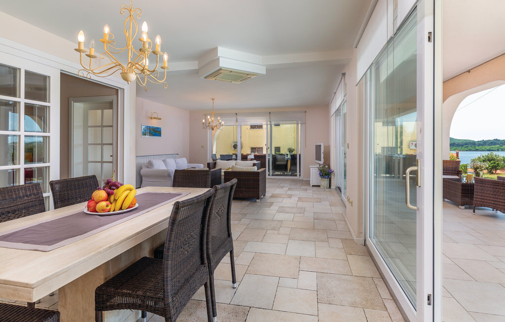 Cette maison de vacances moderne, spacieuse et très bien aménagée, baignée de lumière, se compose de quatre appartements, chacun avec un salon, une salle à manger et une salle de bains confortables, ainsi que des cuisines équipées de haute qualité. Tous les intérieurs sont neufs, luxueux et très modernes. Ils disposent également tous de la climatisation, ce qui permet de rafraîchir la maison en été. Le jacuzzi permet de se détendre à deux de manière romantique. Les appartements sont reliés entre eux à l'intérieur et seul l'appartement du sous-sol dispose d'une entrée séparée. Le beau et grand jardin avec piscine extérieure invite à la détente. Sur la terrasse couverte, vous pouvez lire confortablement un livre tout en profitant de la vue magnifique sur la mer qui scintille sous le soleil à quelques centaines de mètres seulement. Dans le jardin, il y a également une cheminée-barbecue sur laquelle on peut préparer différentes spécialités istriennes. L'ensemble du terrain est fermé, de sorte que le calme et l'intimité ne sont pas perturbés. Dans le petit village de pêcheurs touristique de Pomer, il y a un supermarché, des restaurants et de belles plages. La maison n'est qu'à 15-20 minutes en voiture de Premantura. Il y a ici un parc naturel, avec de nombreuses et magnifiques lagunes de plages de galets. La vieille ville de Pula est également à environ 15 minutes en voiture. Elle est connue pour son amphithéâtre romain et plusieurs autres bâtiments historiques.