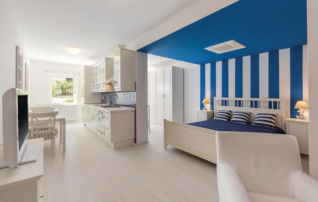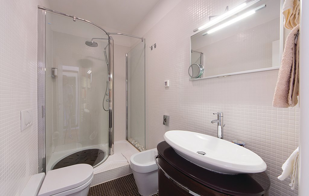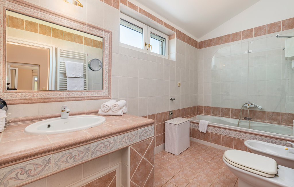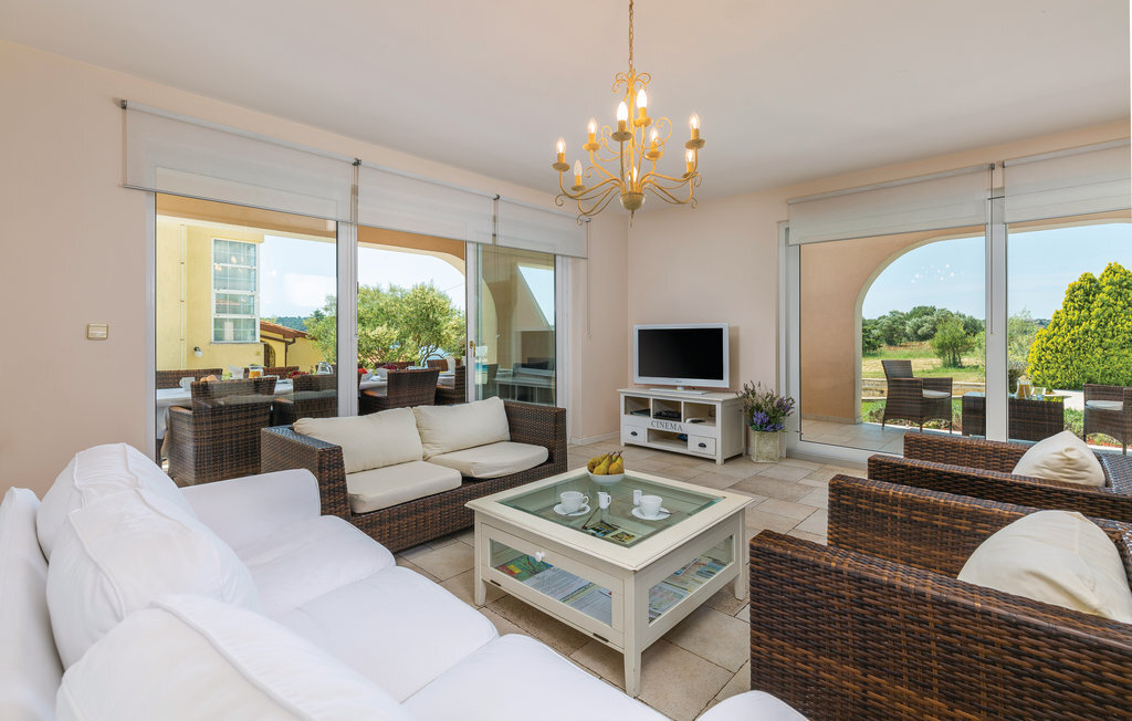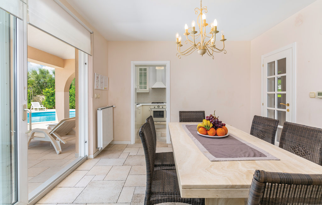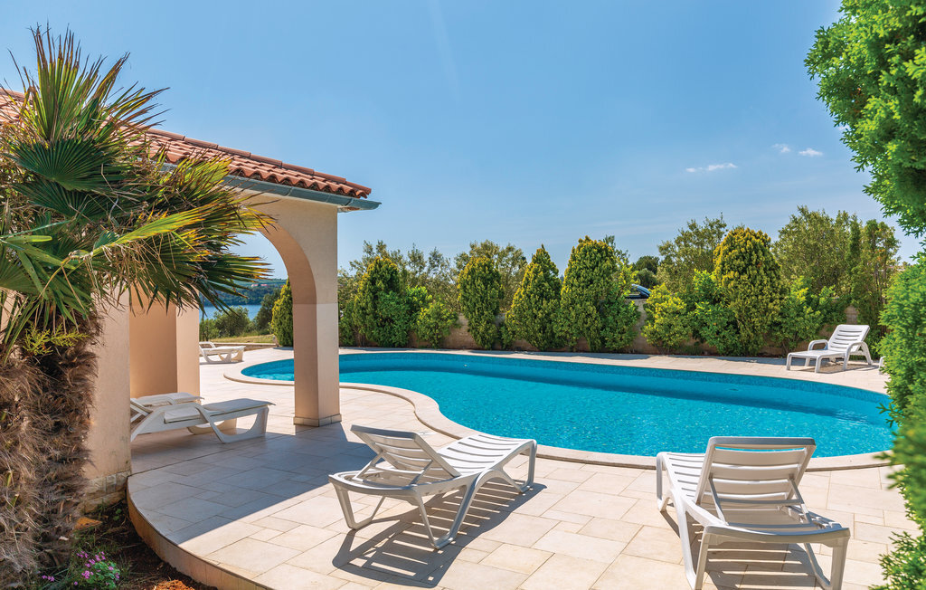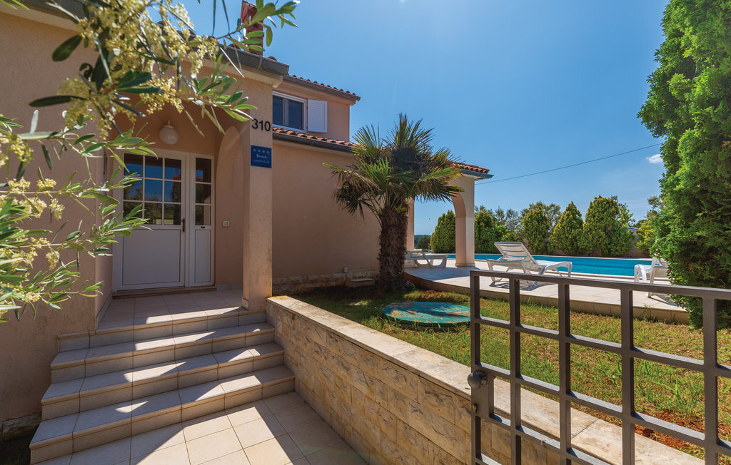 Cette maison de vacances moderne, spacieuse et très bien aménagée, baignée de lumière, se compose de quatre appartements, chacun avec un salon, une salle à manger et une salle de bains confortables, ainsi que des cuisines équipées de haute qualité. Tous les intérieurs sont neufs, luxueux et très modernes. Ils disposent également tous de la climatisation, ce qui permet de rafraîchir la maison en été. Le jacuzzi permet de se détendre à deux de manière romantique. Les appartements sont reliés entre eux à l'intérieur et seul l'appartement du sous-sol dispose d'une entrée séparée. Le beau et grand jardin avec piscine extérieure invite à la détente. Sur la terrasse couverte, vous pouvez lire confortablement un livre tout en profitant de la vue magnifique sur la mer qui scintille sous le soleil à quelques centaines de mètres seulement. Dans le jardin, il y a également une cheminée-barbecue sur laquelle on peut préparer différentes spécialités istriennes. L'ensemble du terrain est fermé, de sorte que le calme et l'intimité ne sont pas perturbés. Dans le petit village de pêcheurs touristique de Pomer, il y a un supermarché, des restaurants et de belles plages. La maison n'est qu'à 15-20 minutes en voiture de Premantura. Il y a ici un parc naturel, avec de nombreuses et magnifiques lagunes de plages de galets. La vieille ville de Pula est également à environ 15 minutes en voiture. Elle est connue pour son amphithéâtre romain et plusieurs autres bâtiments historiques.
