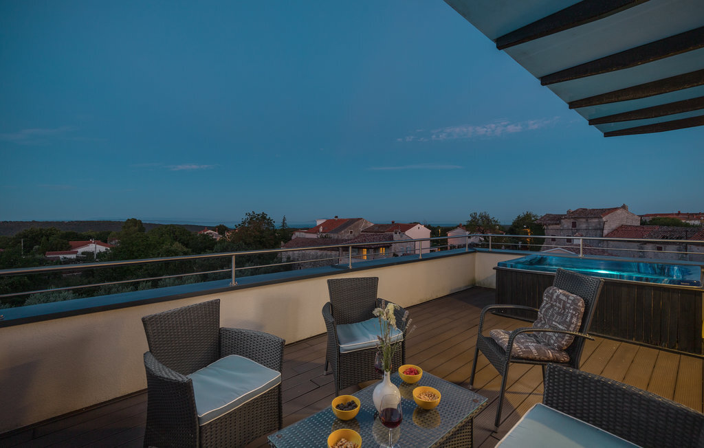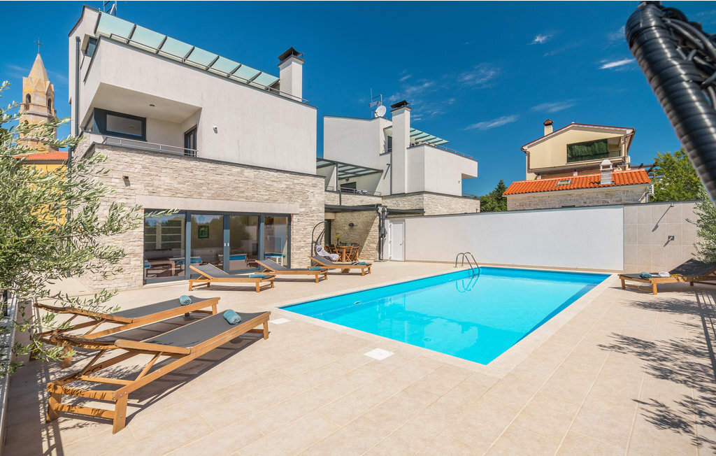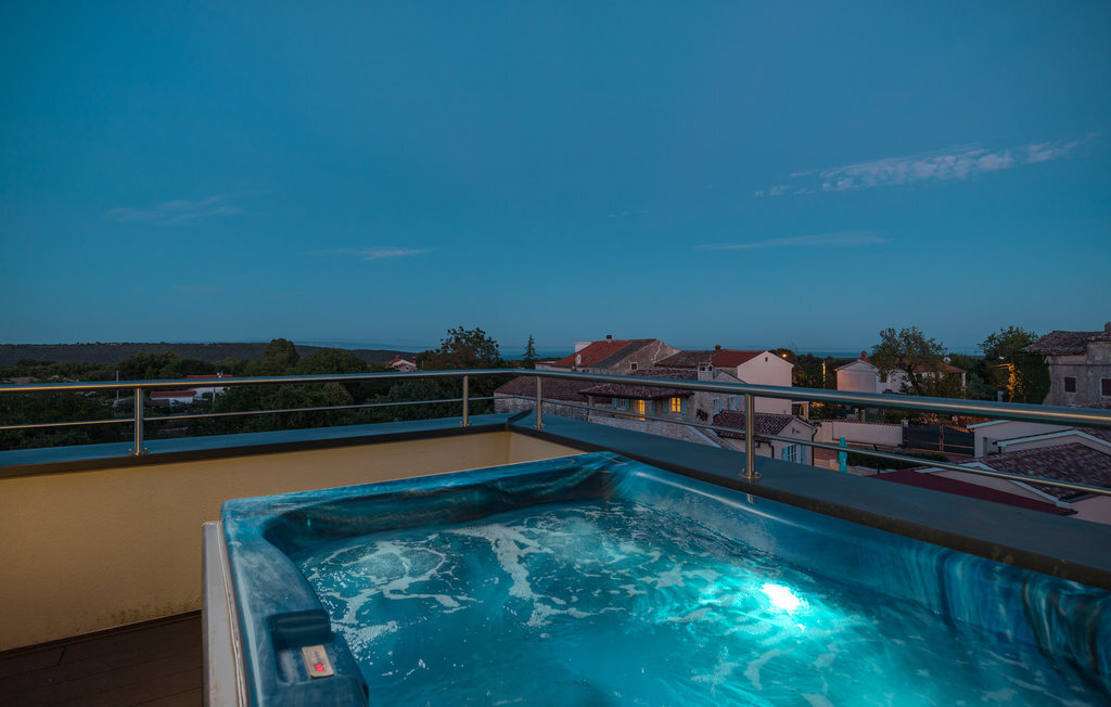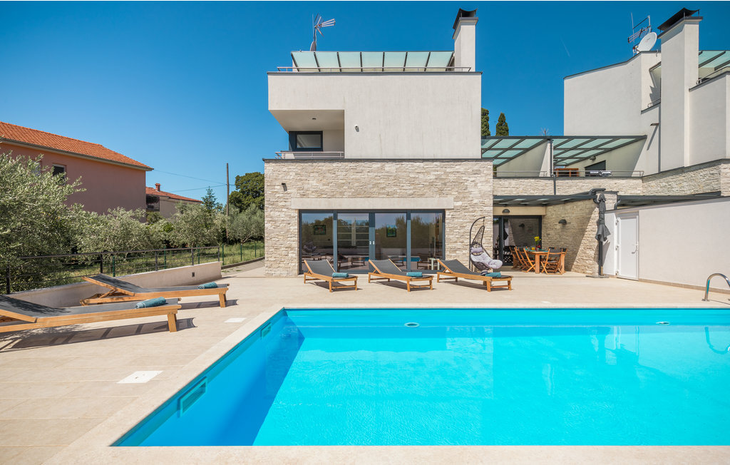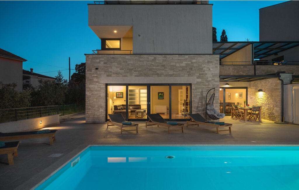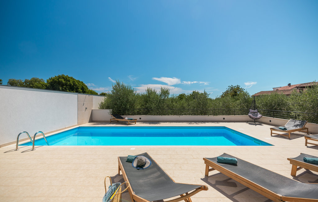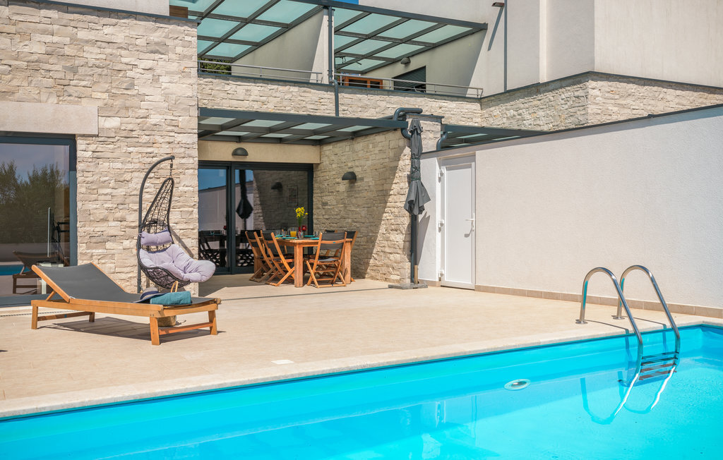 Bien-être à l'extérieur : Location de vacances disposant de chaises-longues et d'un ou plusieurs équipements tels que piscine extérieure, jacuzzi extérieur, lit à baldaquin de jardin etc...
