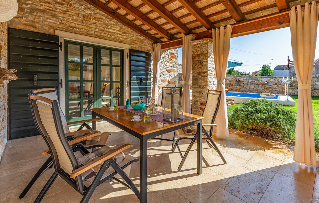 La maison de vacances attend ses hôtes à ian, un petit village rural, à 10 minutes en voiture de la ville historique de Pula et à quelques minutes en voiture de la plage. Deux chambres à coucher et un lit supplémentaire dans le salon peuvent accueillir 5 personnes. La chambre 2 dispose de deux lits simples qui peuvent être réunis en un lit double sur demande. Les pièces sont aménagées dans un style rustique avec une attention particulière aux détails. Vous pouvez garer vos vélos dans le débarras.