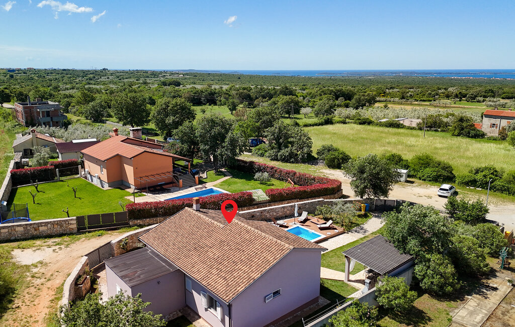 Pour les amoureux de la nature et ceux qui ne veulent pas être très loin de la mer, cette petite maison de vacances avec piscine est idéale. Le bungalow se trouve au début du village de Savela. Détendez-vous sur la terrasse couverte avec vue sur la piscine et passez des vacances reposantes avec votre famille. Explorez la nature avec de nombreuses attractions à vélo et visitez Vodnjan avec une collection de reliques et de momies de saints dans l'église Sv. Blasius. Nous vous recommandons également une excursion en bateau vers les îles Brijuni (parc national), où vous pourrez profiter des plages propres et de la mer magnifique.