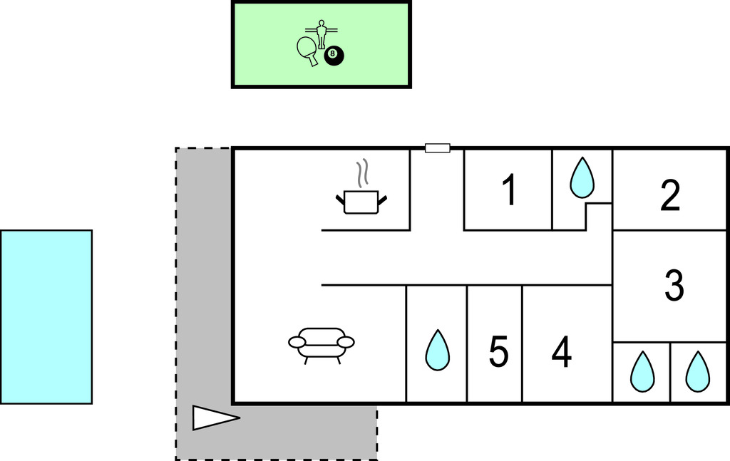 Location de vacances avec activités : Cette location de vacances comprend un ou plusieurs équipements de loisir (ping-pong, billard, baby-foot...)