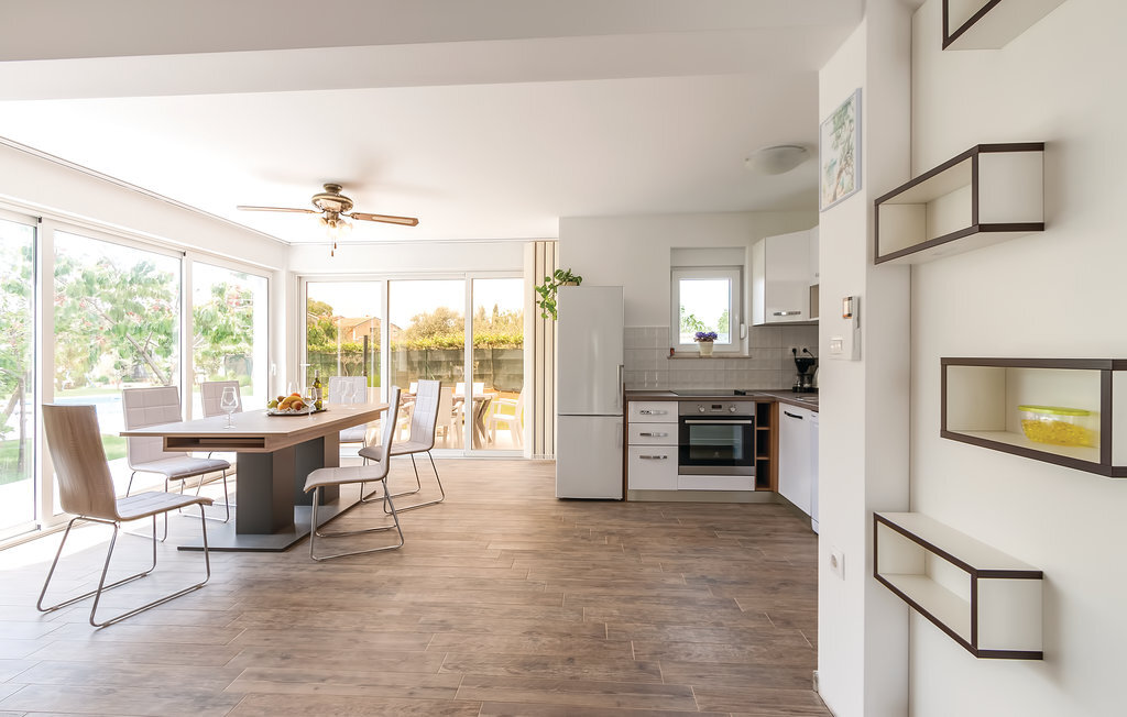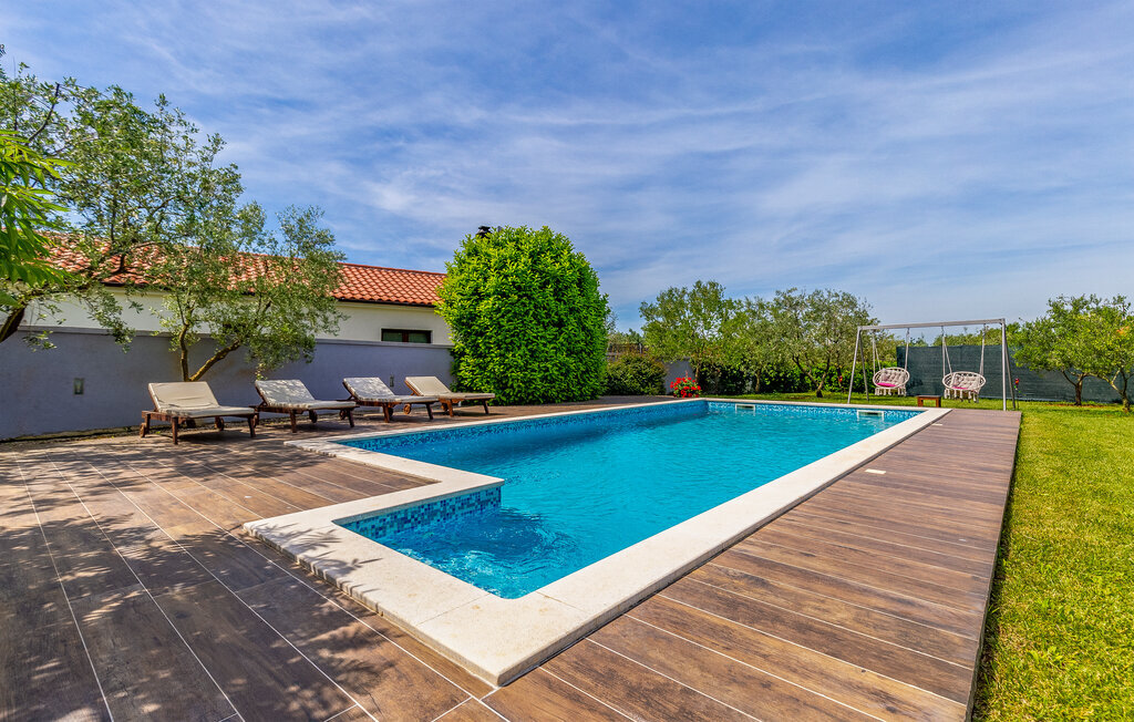 Cette maison de vacances attrayante se trouve dans le petit village touristique de Faana, à proximité de la ville de Pula et en face des îles Brijuni. Sur le terrain clôturé, une grande terrasse avec de beaux meubles de jardin et un barbecue vous attend, tout comme la magnifique piscine. Les pièces intérieures, aménagées avec style, ont une agréable atmosphère de bien-être. Au rez-de-chaussée se trouvent un salon et une salle à manger avec cuisine et une salle de bain, tandis qu'à l'étage se trouvent deux chambres à coucher avec salle de bain privée. Promenez-vous le long de la promenade du bord de mer de Faana et laissez-vous divertir par les différentes manifestations estivales.