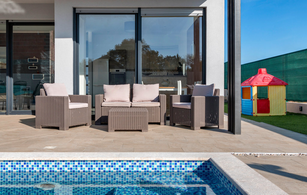 Passez vos vacances en famille ou entre amis dans cette belle maison de vacances avec piscine, située dans le village de Peroj, près de Faana. L'intérieur est aménagé de façon moderne et vous offre tout ce qui est nécessaire pour un séjour agréable. Profitez des bains de soleil sur la terrasse de la piscine et, en préparant de délicieux repas au barbecue, passez des moments de détente avec vos proches. À proximité, vous trouverez de belles plages de galets avec vue sur l'archipel de Brijuni. Il est recommandé de visiter les villes de Faana et Pula avec leurs curiosités ainsi que le parc naturel du cap Kamenjak dans la localité de Premantura.