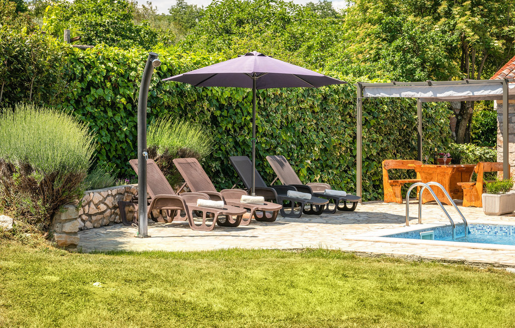 Cette jolie maison de vacances avec piscine se trouve dans le petit village de Faraguni, près de Labin, et est idéale pour des vacances familiales relaxantes dans un cadre idyllique et rural. L'intérieur est joliment et fonctionnellement aménagé et vous offre un séjour confortable. Devant la maison se trouve une agréable terrasse où vous pourrez déguster votre délicieux dîner au barbecue accompagné d'un verre de bon vin d'Istrie. Les plus jeunes membres de la famille seront ravis d'avoir autant d'espace pour jouer sur le terrain. Faites des promenades romantiques à pied ou à vélo dans un environnement paisible et une nature intacte. Pendant votre séjour, vous visiterez la célèbre station balnéaire de Rabac, où vous pourrez profiter de la mer et du soleil sur les plus belles plages d'Istrie et, le soir, vous promener le long de la promenade, avec ses nombreux cafés-bars, boutiques de souvenirs et restaurants.
