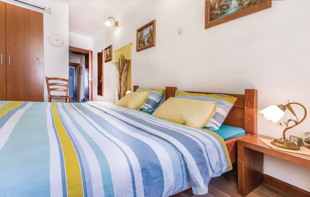 Cette maison mitoyenne à l'aménagement simple se trouve dans le village idyllique de Vodnjan. Elle est située dans la vieille ville et sur la rue principale Cala. Le rez-de-chaussée se compose d'une cuisine, d'une salle à manger, d'une salle de bain et d'un salon avec accès à la terrasse où se trouve une sterna (une fontaine, particulièrement typique de la région d'Istrie). Au premier étage se trouvent les deux chambres à coucher, chacune avec sa propre salle de bain. Dans la cour se trouve un barbecue. Pendant votre séjour à Vodnjan, vous pouvez visiter la collection d'art religieux dans l'église St. Blaz.