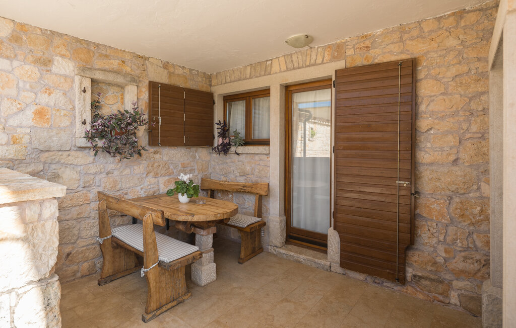 Cette maison jumelée se trouve dans le petit village tranquille de Puzari, en Istrie centrale. Elle a été rénovée en 2010 et aménagée de manière rustique. Le salon et la cuisine se trouvent au rez-de-chaussée et vous accédez à l'étage supérieur par un escalier en colimaçon raide, où se trouvent les chambres à coucher. Le terrain commun est partagé avec le propriétaire de la maison, mais la piscine derrière la maison est à votre disposition. Visitez également la petite ville médiévale de Zminj, située sur une colline et entourée d'un mur d'enceinte en grande partie conservé.
