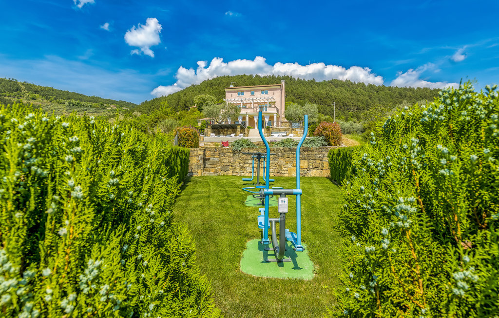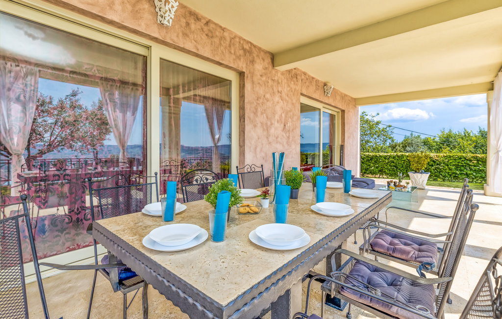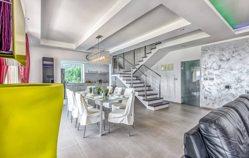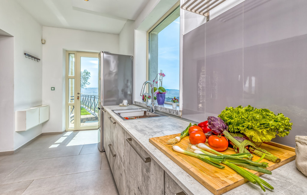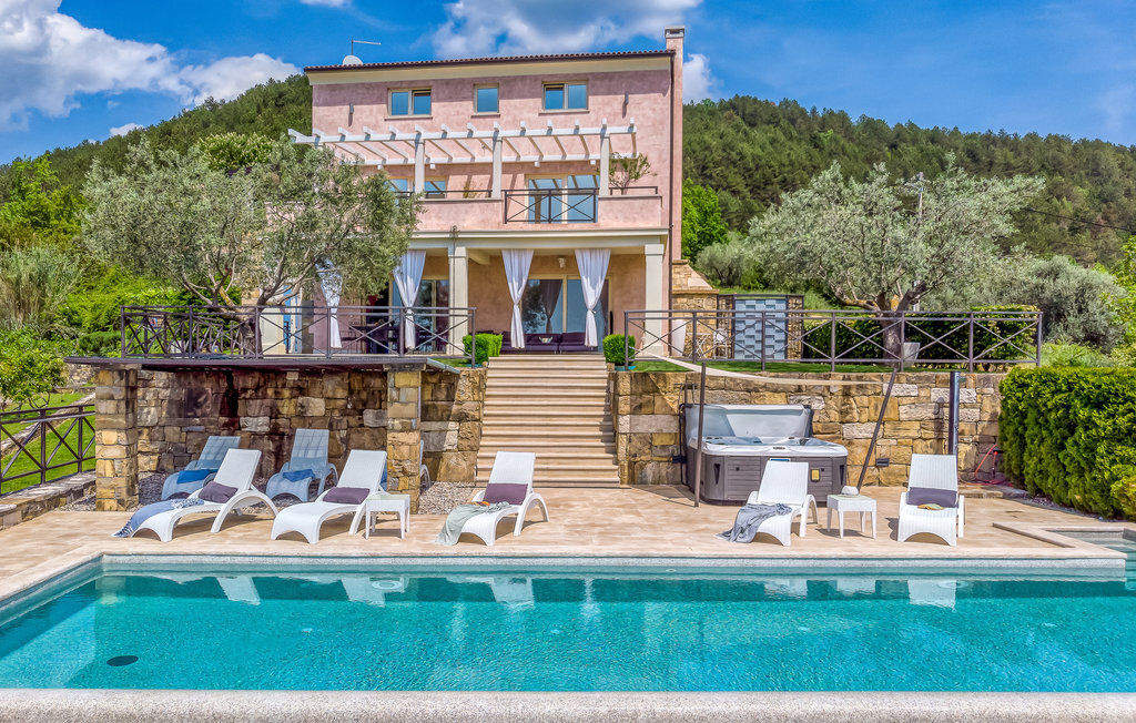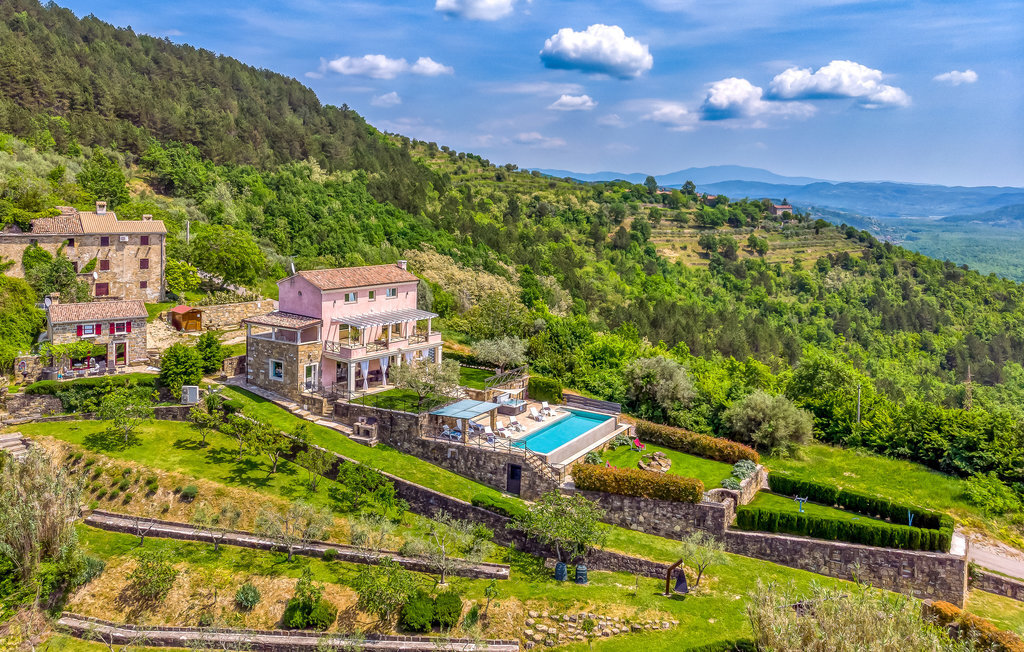Si vous aspirez à des vacances dans un environnement calme, cette belle maison de vacances est le bon choix pour vous. Vous y aurez également une vue sur la vallée de la rivière Mirna, le lac Butonega ou la célèbre ville de Motovun. Vous habitez en bordure du village et à 280 mètres au-dessus du niveau de la mer, au-dessus du village de Livade. Ici, le climat est très doux. Depuis la maison, profitez de la vue panoramique sur le paysage et la nature intacte. La propriété est entourée d'un mur de pierre qui offre de l'intimité. En outre, il y a un jardin ouvert de 2000 m², où de nombreux arbres fruitiers et herbes aromatiques ont un effet relaxant sur le corps et l'esprit grâce à leur parfum. Devant la maison, il y a la grande piscine d'eau salée et le jacuzzi, qui apporteront un rafraîchissement pendant la chaleur de l'été. Le soir, vous pourrez profiter d'une vue magnifique sur le ciel étoilé depuis l'une des belles terrasses. Le jardin tombe en cascades, reliées par des escaliers en pierre. La maison a été rénovée dans le style vénitien et équipée de meubles modernes. Elle est entièrement climatisée et chaque chambre et salon offre une vue panoramique sur le paysage. Ce n'est pas seulement l'installation qui vous apportera du plaisir, mais aussi le patrimoine culturel de cette région. Allez voir la cascade près de la maison, qui a de l'eau même pendant l'été. Goûtez aux délicieuses spécialités de la région, dont les plats à base de truffes, et découvrez l'histoire à travers le musée de Prenzane, Loggia Oprtalj et la forteresse de Motovun. Partez sur la Parenzana - à vélo ou à pied - qui s'étend entre Groznjan et Vizinada. Les chevaux d'équitation et le bien-être à réserver se trouvent déjà à quelques kilomètres de distance.