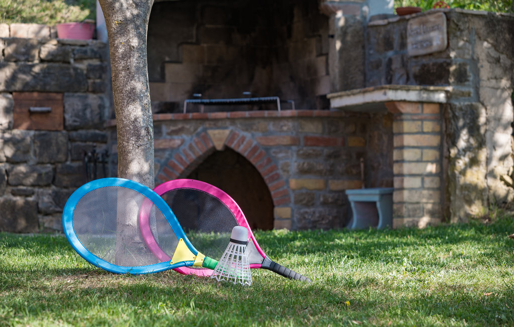 Activités de plein air : Cette location de vacances propose au moins 3 activités de plein air pour toute la famille comme par exemple une table de ping-pong, un trampoline, des boules de pétanques, un panier de basket avec son ballon etc...