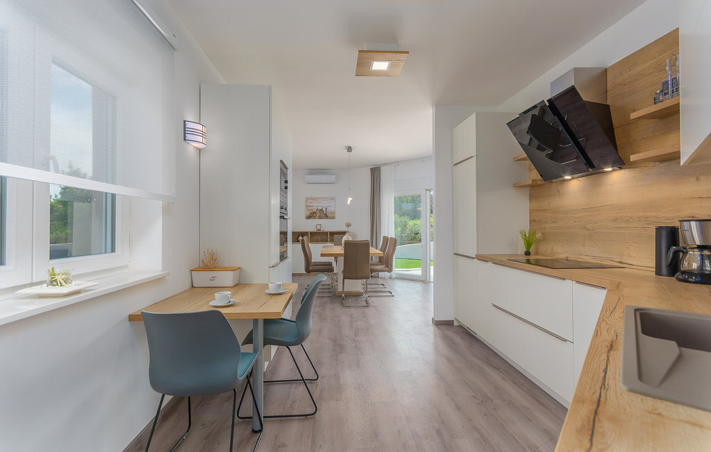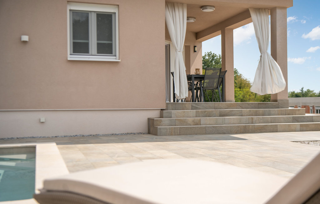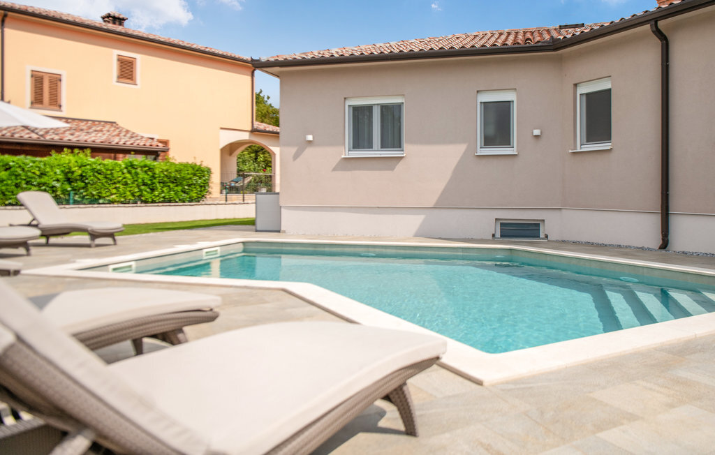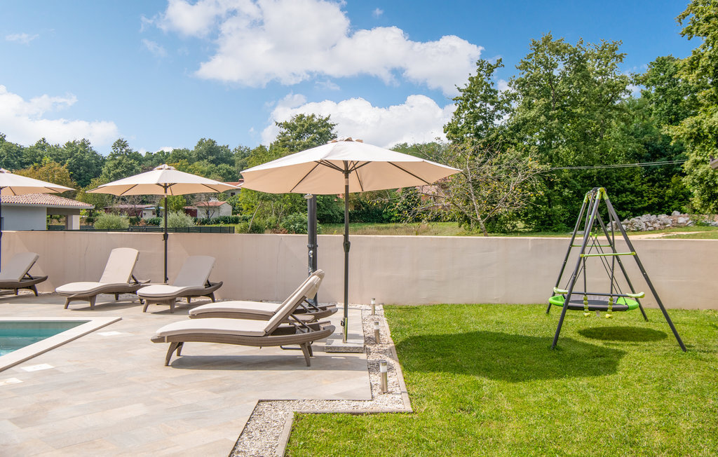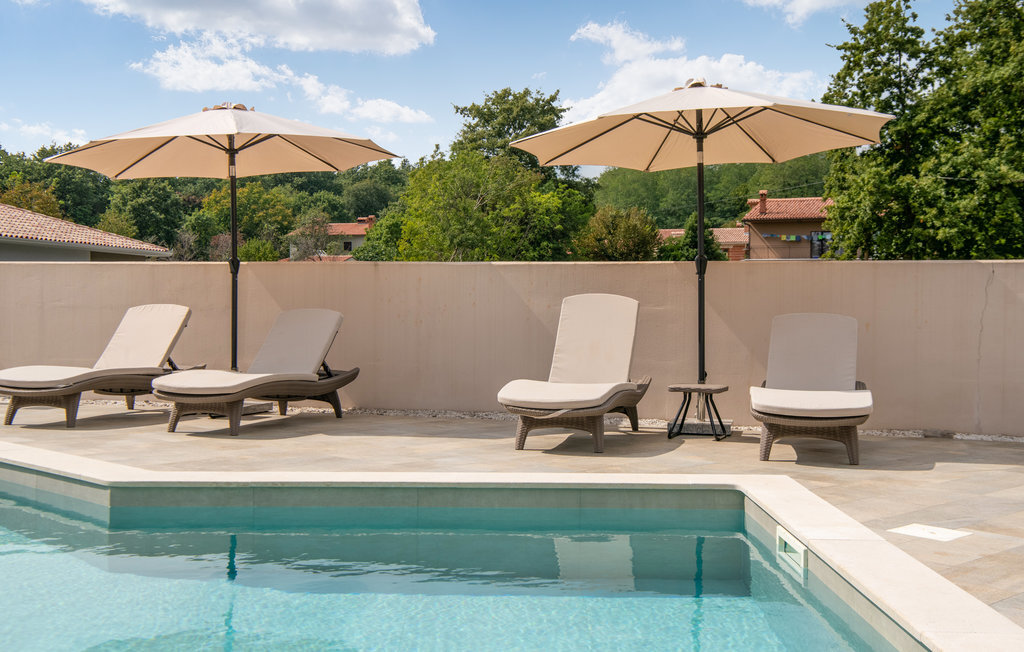 Cette belle maison de vacances se trouve dans le petit village de Marceljani, à proximité de deux points intéressants du tourisme en Istrie - Labin, une ville pittoresque sur une colline, et Rabac, un endroit avec les plus belles plages d'Istrie. Elle dispose de trois chambres à coucher, de trois salles de bain, de toilettes, d'une cuisine avec coin repas et d'un salon, ainsi que d'une terrasse couverte où vous profiterez certainement des soirées d'été. La piscine extérieure vous permettra de vous rafraîchir les jours de grande chaleur. N'hésitez pas à assister à l'une des manifestations organisées à Labin pendant les mois d'été. Nous vous recommandons également de faire des excursions d'une journée vers d'autres destinations comme Pula, le parc national de Brijuni et Rovinj.
