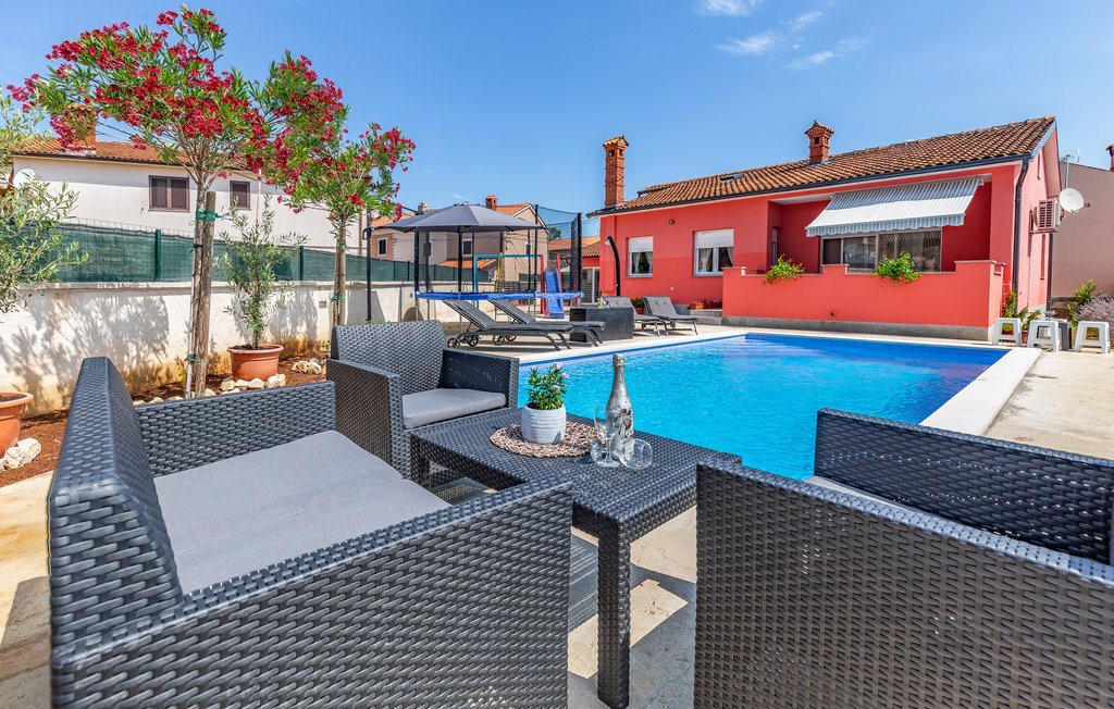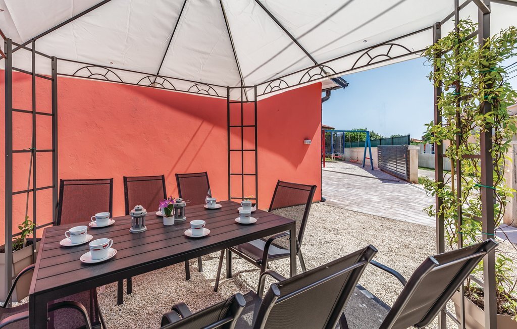 Cette maison colorée dans le village de Marcana est très bien équipée. Sur le terrain fermé, il y a beaucoup de contenu pour toute la famille. Le salon donne accès à la terrasse, où vous passerez de bons moments. Trois chambres à coucher sont à votre disposition et la maison convient donc parfaitement pour des vacances en famille ou un groupe d'amis. Vous trouverez un magasin, une pharmacie et une pizzeria à proximité. À Duga uvala, vous trouverez de belles plages et une mer claire. En tant que plus grande ville de la péninsule d'Istrie, Pula offre une multitude d'activités et d'innombrables plages. De nombreux restaurants et bars, des boutiques, des promenades, des manifestations et des concerts, ainsi que des monuments datant de l'époque des Romains, des Vénitiens ou des Byzantins, garantissent des vacances inoubliables. Le bassin de baignade vous permettra de vous rafraîchir, tandis que vous vous amuserez dans la salle d'activités.