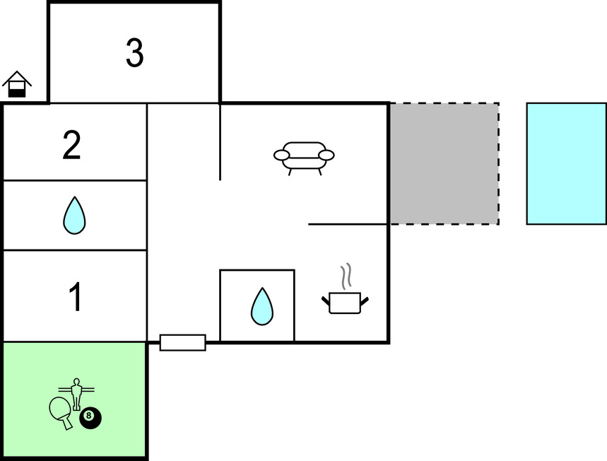 Location de vacances avec activités : Cette location de vacances comprend un ou plusieurs équipements de loisir (ping-pong, billard, baby-foot...)