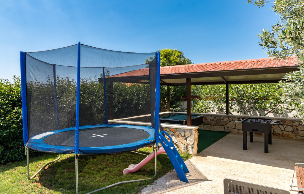 Activités de plein air : Cette location de vacances propose au moins 3 activités de plein air pour toute la famille comme par exemple une table de ping-pong, un trampoline, des boules de pétanques, un panier de basket avec son ballon etc...