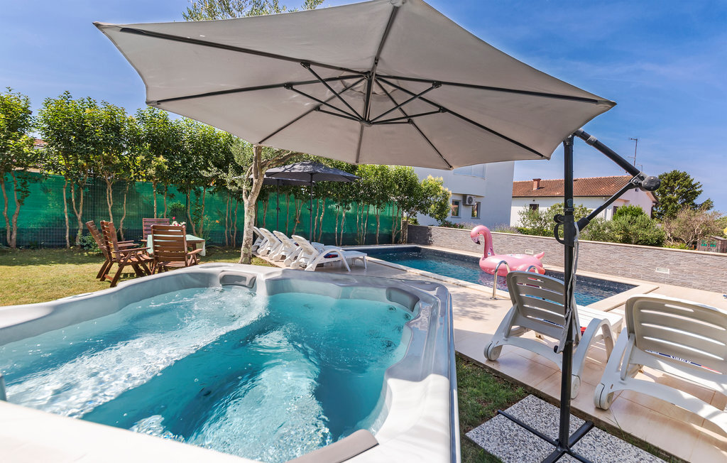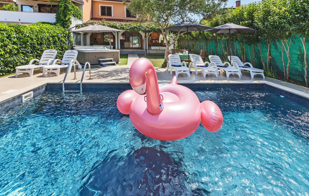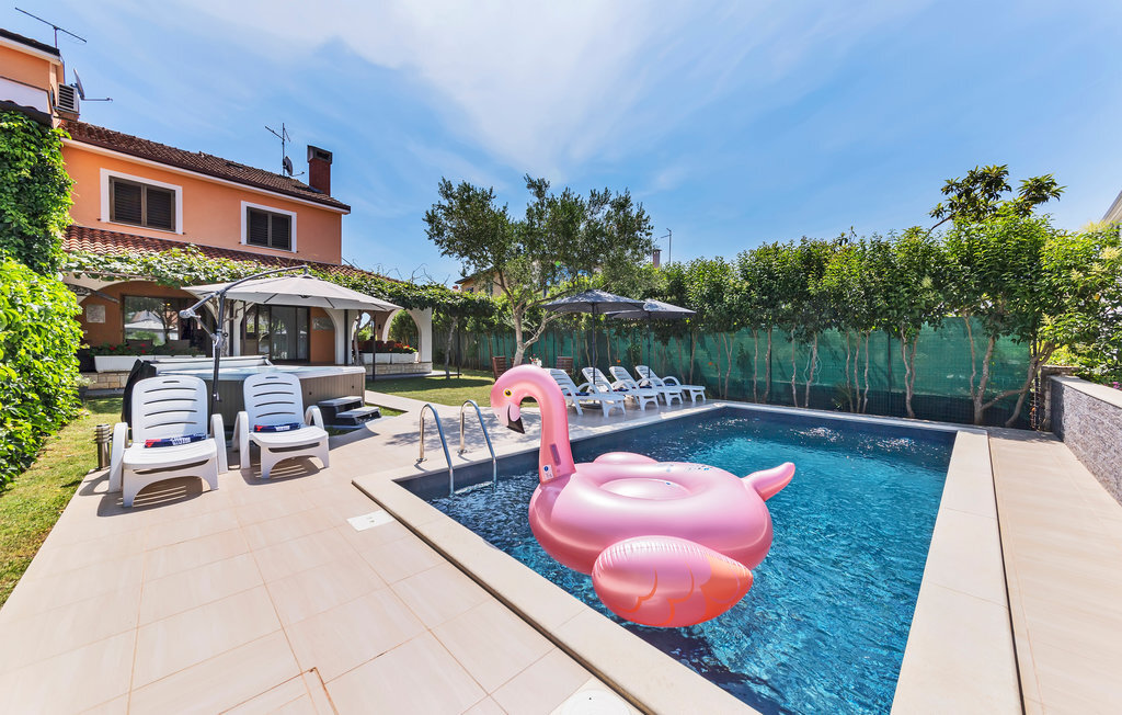 Cette belle maison de vacances avec un vaste jardin aménagé se trouve à proximité d'Umag. Les pièces ouvertes et lumineuses sont confortables et aménagées avec le souci du détail. Depuis le grand salon, on accède à la terrasse couverte ombragée qui offre une vue magnifique sur le jardin bien entretenu, planté de différentes plantes méditerranéennes. Vous pourrez y passer de longues soirées barbecue dans une atmosphère agréable. Visitez également Umag avec ses nombreuses possibilités pour les vacanciers actifs et pour ceux qui aspirent à une vie nocturne bien remplie.