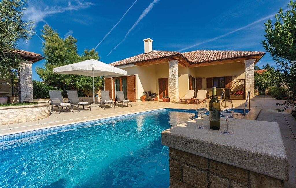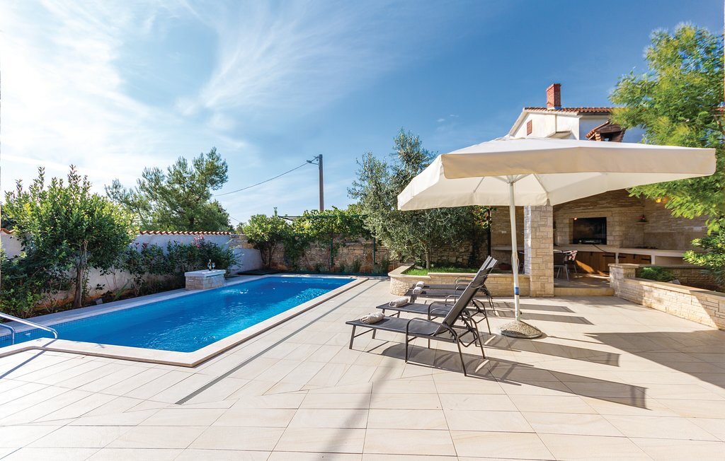 Entourée d'un terrain bien entretenu, cette magnifique maison de vacances avec piscine vous attend. Elle se compose d'une salle de séjour avec cuisine, de deux chambres à coucher, de deux salles de bains et d'une galerie ouverte avec un lit double. Deux climatiseurs se trouvent au rez-de-chaussée, un autre dans la galerie. Devant la maison, vous pouvez prendre votre café du matin sur la terrasse couverte et vous rafraîchir dans la piscine extérieure pendant les chaudes journées d'été. Dans le jardin clôturé, une autre terrasse couverte avec barbecue est à votre disposition. Le centre du village avec un supermarché et un excellent restaurant se trouve à proximité.
