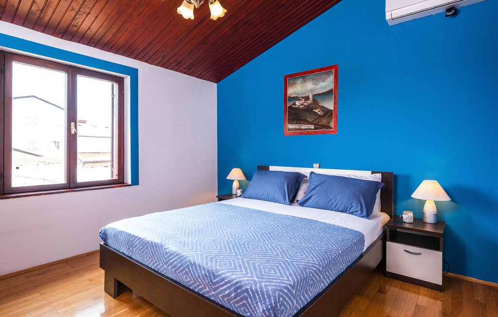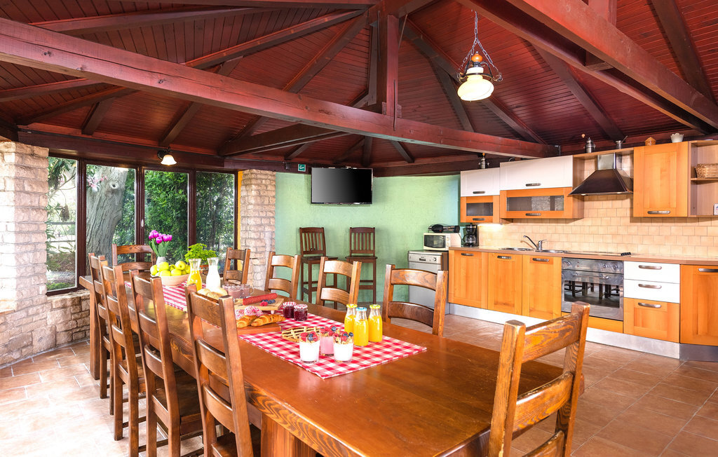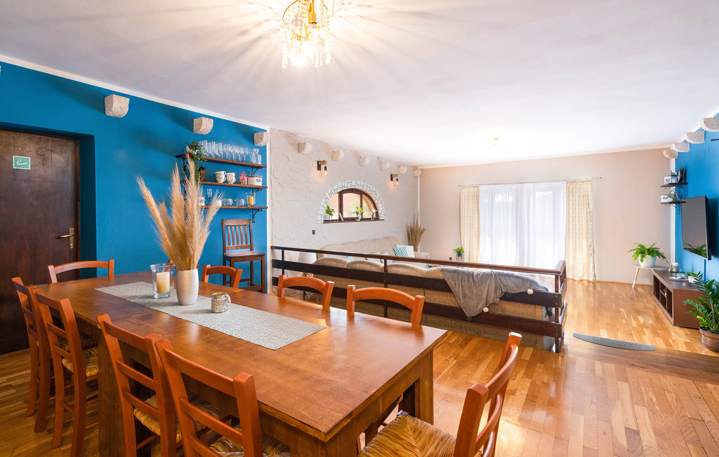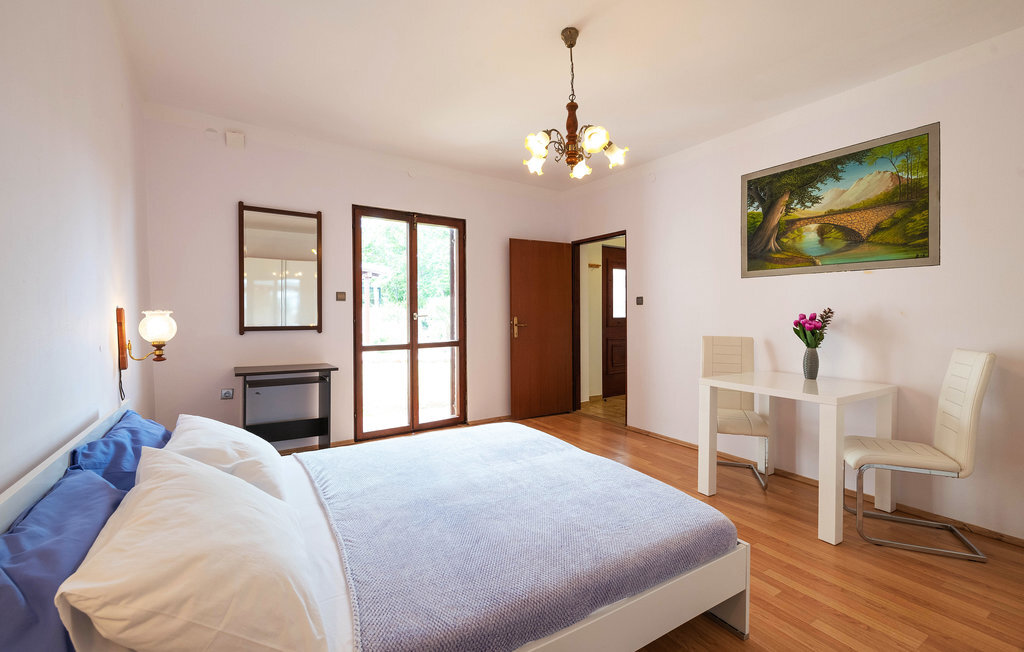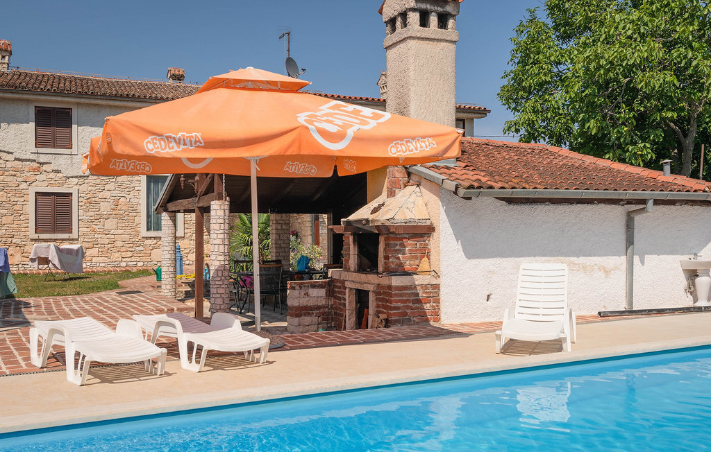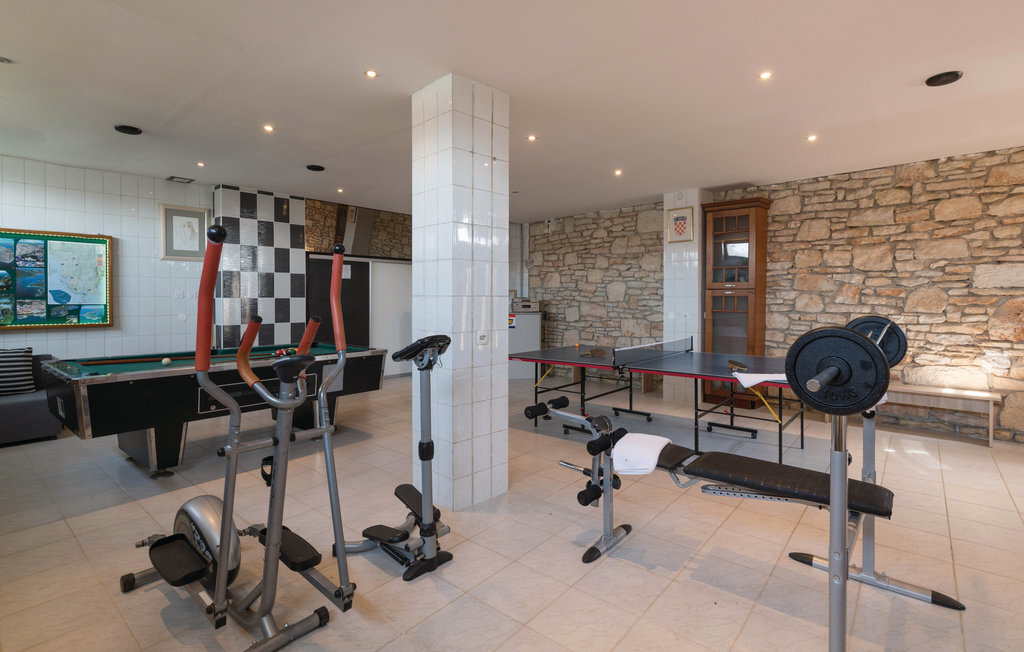 Cette maison de vacances rurale et maritime pour 16 personnes est située dans une grande propriété avec piscine. Elle se compose d'une maison principale avec deux chambres à coucher, deux salles de bain, une cuisine et un salon au rez-de-chaussée et de trois chambres à coucher, deux salles de bain et un salon au premier étage. En annexe à la maison principale se trouve également un appartement de vacances avec chambre à coucher, salon, cuisine et salle de bain, ainsi qu'un petit studio, chacun avec une entrée séparée. Passez votre temps dans la salle de fitness et de loisirs avec billard, table de ping-pong et fléchettes. Découvrez les magnifiques plages naturelles avec une mer cristalline. Goûtez les spécialités du restaurant à proximité et visitez la station balnéaire de Medulin avec sa plage de sable.