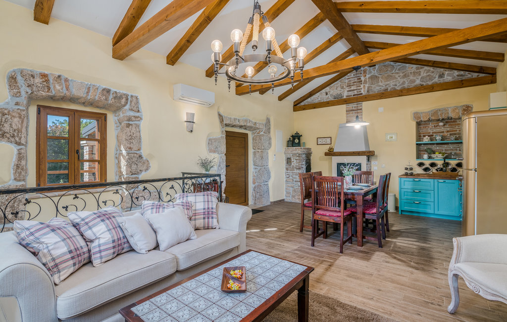 Cette belle maison en pierre est située dans un petit village de l'intérieur de Krk. Elle est aménagée de manière exquise et vous offre tout le confort indispensable. Il règne dans la maison une atmosphère agréable et chaleureuse. Au rez-de-chaussée se trouvent deux chambres à coucher, tandis que le salon spacieux avec sortie sur la grande terrasse couverte se trouve au premier étage. Vivez des repas conviviaux et profitez de la vue sur le jardin et la piscine où vos enfants barbotent. Vous atteindrez rapidement en voiture les localités d'ilo, Vrbnik, Malinska et la ville de Krk, qui vous offriront une vie nocturne riche et des manifestations culturelles pendant les mois d'été. Découvrez à Klimno une plage aux boues médicinales et des criques cachées sur Krk.
