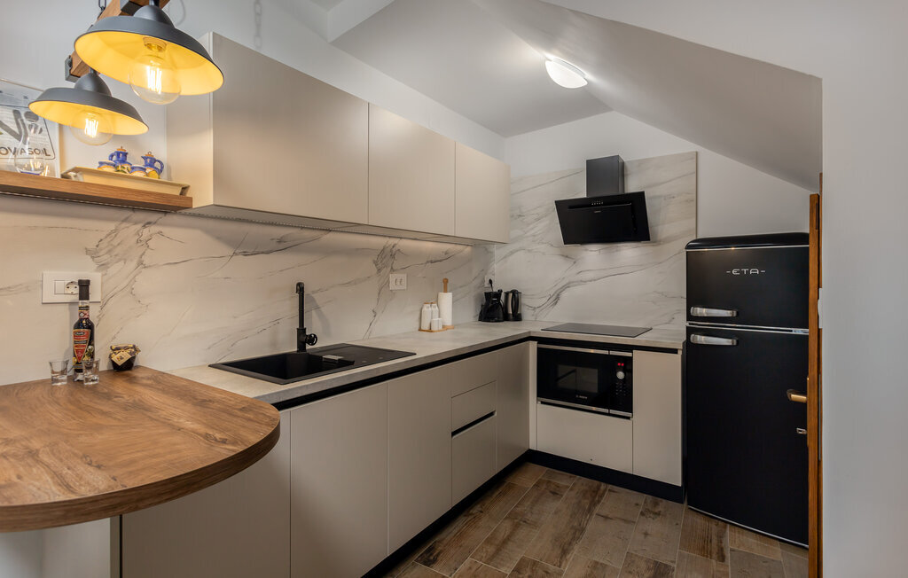 Passez vos vacances dans cette petite maison mitoyenne de style traditionnel. Le terrain est clôturé, de sorte que les enfants peuvent jouer sans souci sur la terrasse, qui est en grande partie ombragée. Détendez-vous l'après-midi en lisant votre livre préféré ou visitez la plage toute proche. Au rez-de-chaussée se trouve la cuisine et le coin repas, tandis qu'à l'étage supérieur se trouvent la chambre à coucher et la salle de bain. Le parking se trouve sur le terrain devant la maison de vacances. Le tourisme a commencé à se développer à Crikvenica dès le 19e siècle et porte aujourd'hui le label de station climatique en raison de son climat particulièrement agréable.