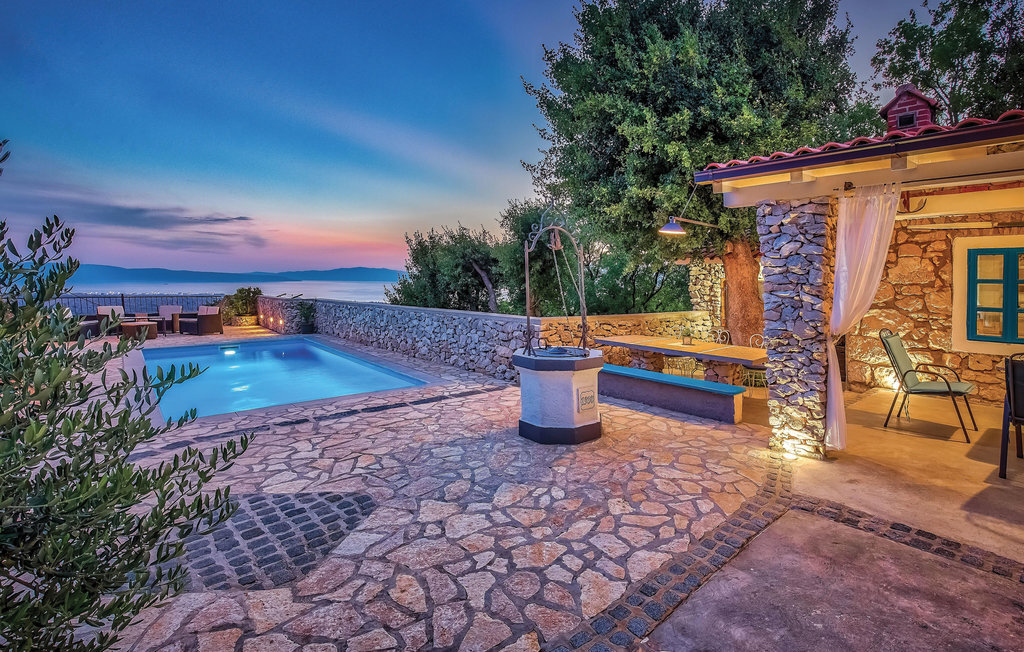 Passez vos vacances dans un environnement calme dans cette maison de vacances avec une vue panoramique fantastique sur la baie et l'île de Krk. La maison a été restaurée en combinant une architecture côtière traditionnelle, des éléments rustiques et des accessoires modernes à l'intérieur. Sur la terrasse spacieuse se trouvent une douche extérieure et des toilettes supplémentaires. Il y a aussi une piscine pour les chaudes journées d'été. La ville voisine de Crikvenica est une destination de vacances populaire avec de belles plages et une multitude de possibilités pour des vacances actives. Il y a aussi des sentiers de randonnée, le lac Tribalj, le parc national Risnjak, une multitude d'événements culturels et sportifs. Découvrez également le riche patrimoine historique de la localité et une offre gastronomique variée ainsi qu'un vin délicieux. Un billard miniature et des fléchettes sont disponibles pour des compétitions amicales de vacances. La hauteur minimale du plafond est de 130 cm.