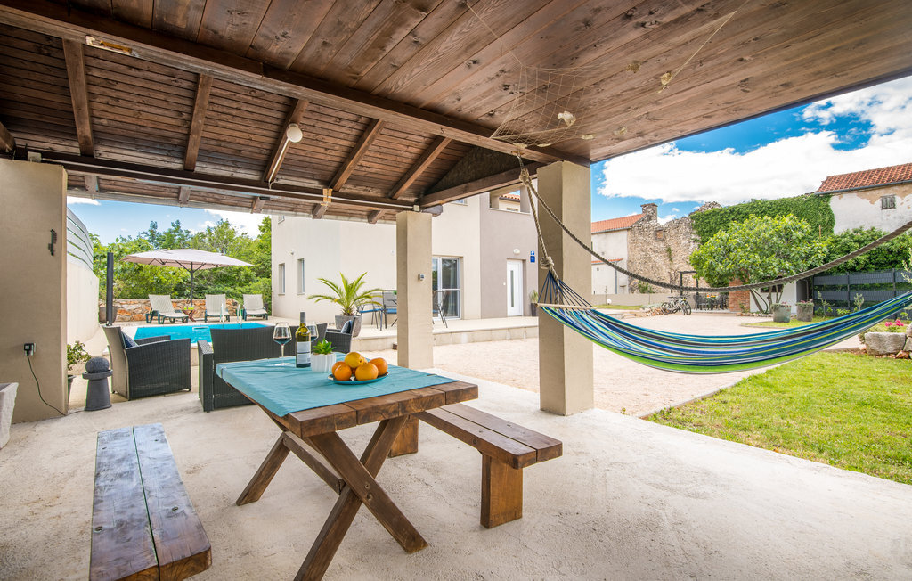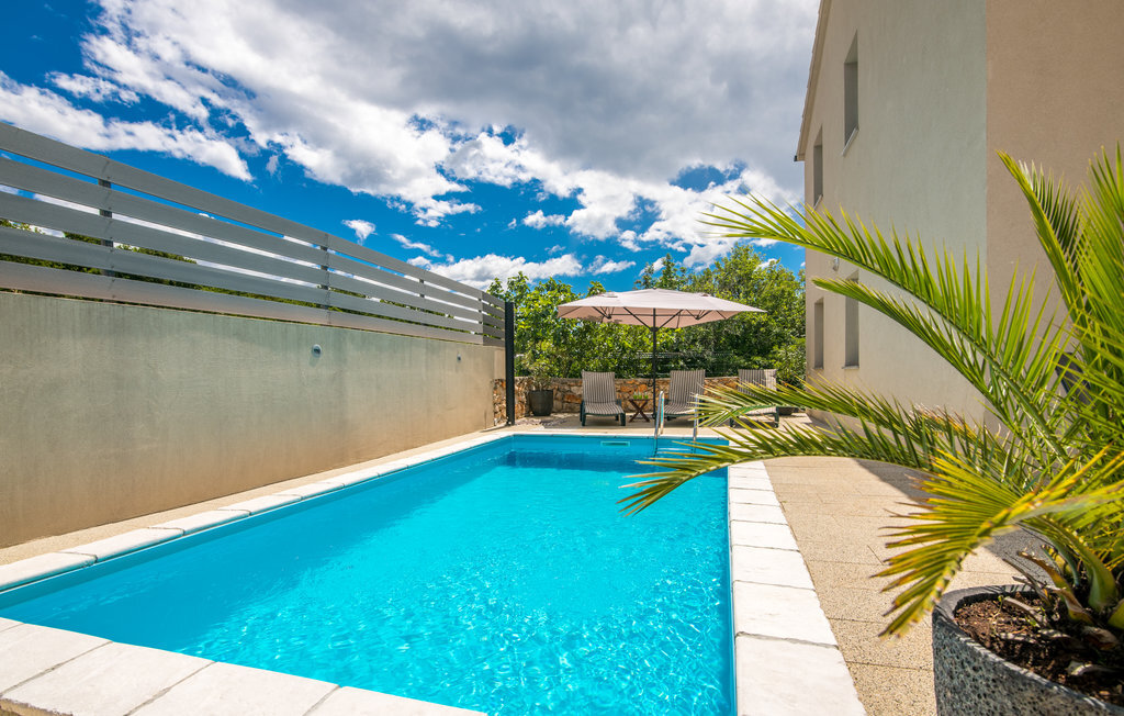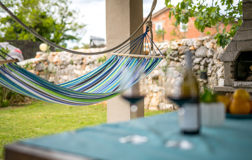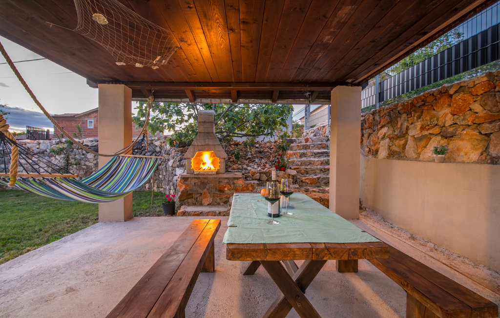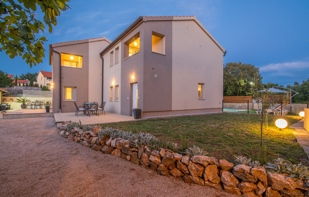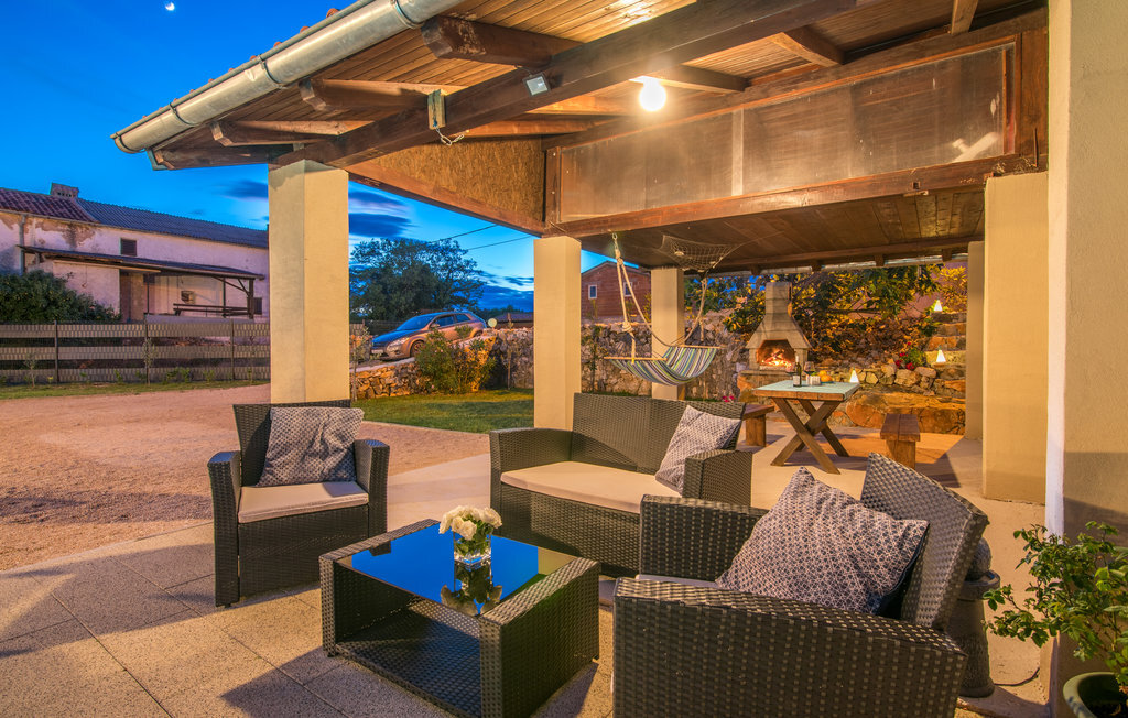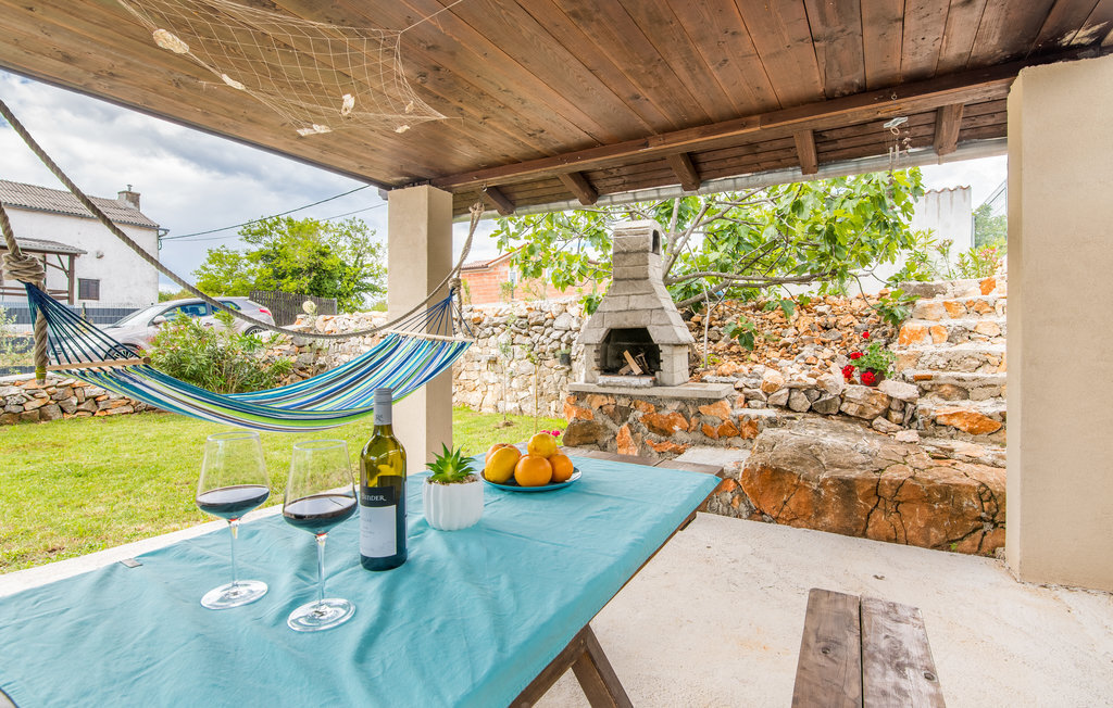 Au centre de l'île de Krk, dans le petit village de Kras, se trouve cette maison de vacances entièrement équipée et aménagée avec un charme particulier. La maison jumelée se compose de deux appartements séparés, au rez-de-chaussée et au premier étage, qui disposent chacun d'une chambre à coucher, d'une salle de bain, d'une cuisine-salon et de terrasses. Profitez également du vaste terrain équipé de meubles de jardin, d'un barbecue, d'une piscine et d'une zone de bronzage, et profitez ici de votre intimité. Découvrez les plages et la mer bleue de Baki et Stara Baka ou allez à la plage de sable de Risika. Des curiosités intéressantes se trouvent à Krk, Vrbnik ou sur la petite île de Koljun. Des écoles de plongée ainsi qu'un réseau de pistes cyclables sont disponibles sur toute l'île.