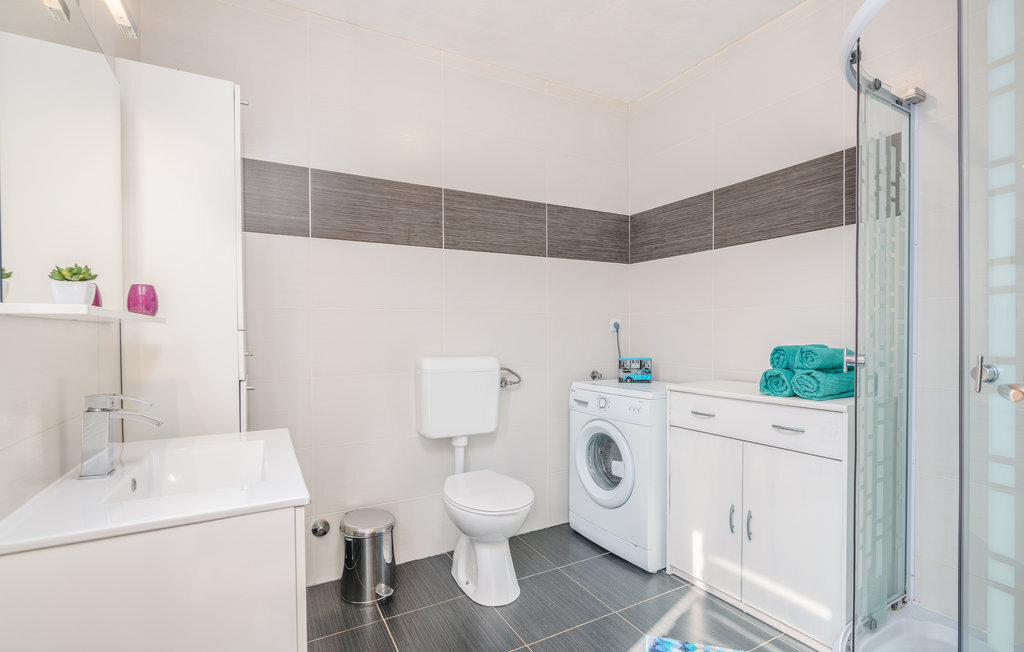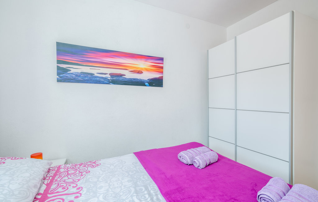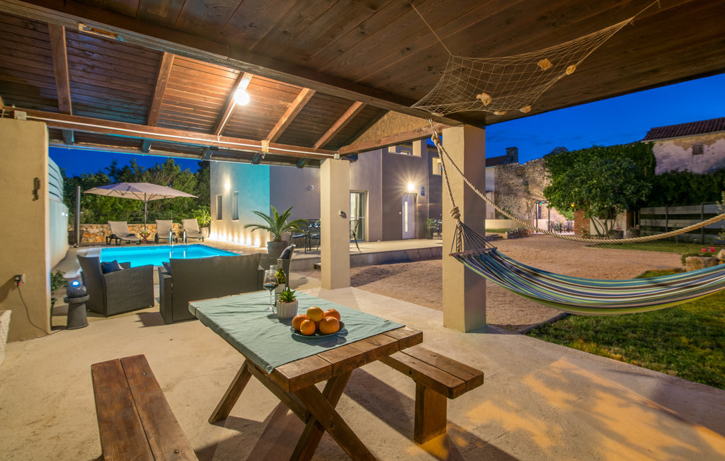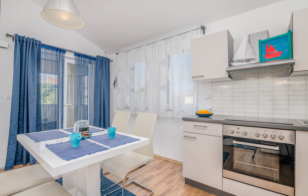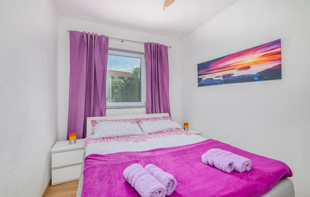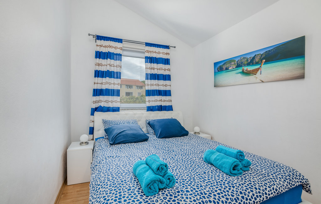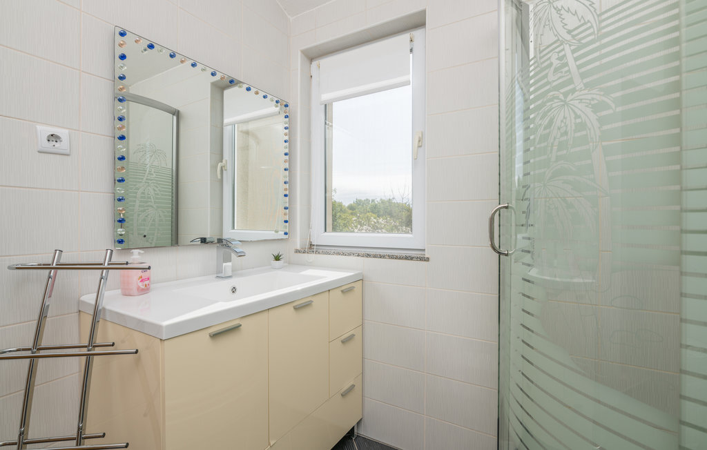 Au centre de l'île de Krk, dans le petit village de Kras, se trouve cette maison de vacances entièrement équipée et aménagée avec un charme particulier. La maison jumelée se compose de deux appartements séparés, au rez-de-chaussée et au premier étage, qui disposent chacun d'une chambre à coucher, d'une salle de bain, d'une cuisine-salon et de terrasses. Profitez également du vaste terrain équipé de meubles de jardin, d'un barbecue, d'une piscine et d'une zone de bronzage, et profitez ici de votre intimité. Découvrez les plages et la mer bleue de Baki et Stara Baka ou allez à la plage de sable de Risika. Des curiosités intéressantes se trouvent à Krk, Vrbnik ou sur la petite île de Koljun. Des écoles de plongée ainsi qu'un réseau de pistes cyclables sont disponibles sur toute l'île.