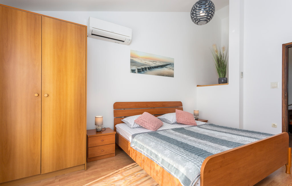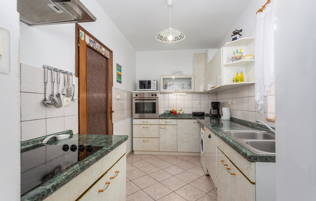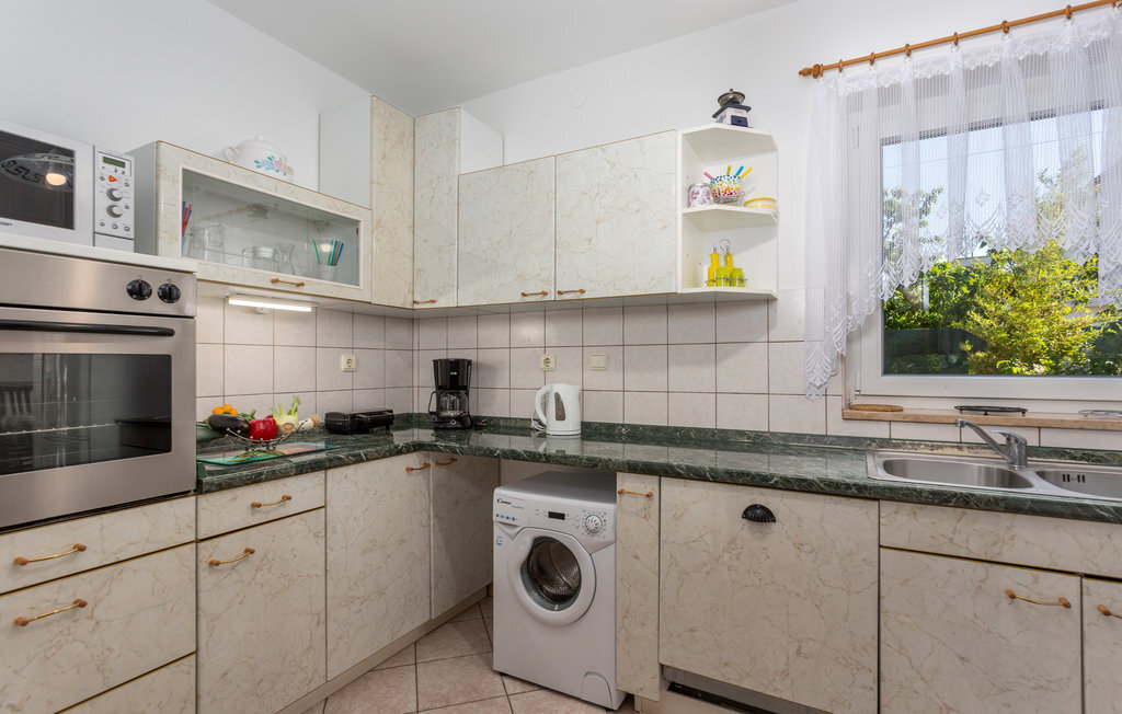 Cette agréable maison de vacances avec piscine se trouve dans le quartier résidentiel calme de la ville de Punat. La surface habitable se compose d'un salon avec cuisine, d'une salle de bain ainsi que d'une terrasse au rez-de-chaussée, tandis que trois chambres, deux salles de bain et deux balcons se trouvent à l'étage. Sur le terrain clôturé se trouvent une piscine avec une zone de bronzage et un barbecue. En quelques minutes à pied, vous atteindrez les plages les plus proches et le centre du village avec ses nombreux restaurants proposant des spécialités méditerranéennes et différents types de vins régionaux. Découvrez également les magnifiques plages de Stara Baka, qui se trouvent à quelques minutes en voiture.