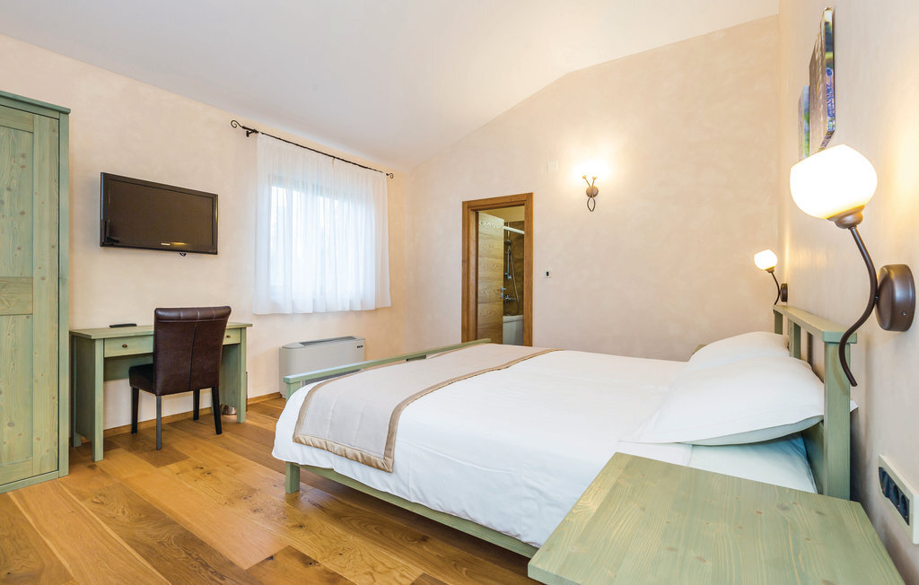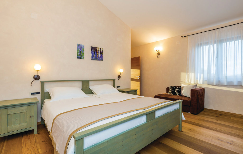 Cette belle villa avec un grand jardin clôturé, idéal pour les enfants, se trouve dans le petit village de Turcic, à seulement 10 minutes à pied de la mer et des plages. Elle fait partie d'un complexe de 4 villas. Chaque maison dispose de sa propre piscine et d'un jardin privé. Les chambres sont spacieuses et joliment aménagées, chacune avec sa propre salle de bain. Au rez-de-chaussée se trouvent un grand salon et une cuisine avec salle à manger, d'où l'on accède à la terrasse couverte où l'on peut également prendre ses repas. Dans la cour se trouve la piscine, qui vous rafraîchira les chaudes journées d'été. De la maison, vous pourrez rapidement accéder aux attractions de l'île, qui propose de nombreuses animations et une offre gastronomique riche en été.