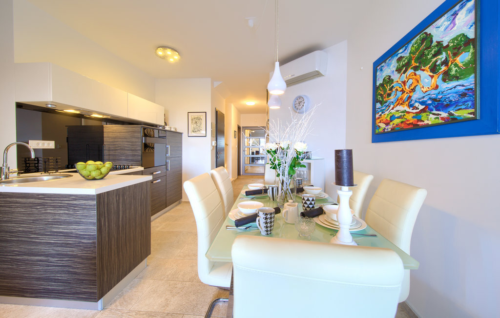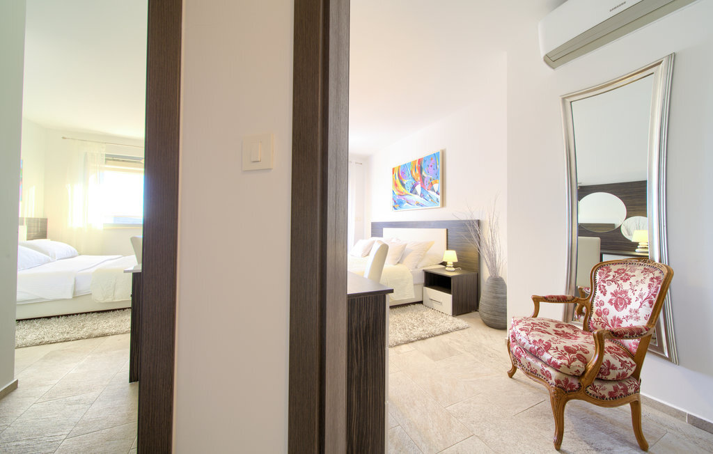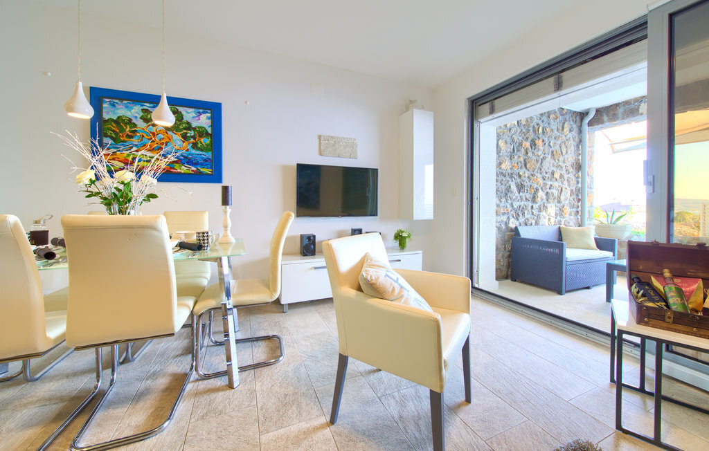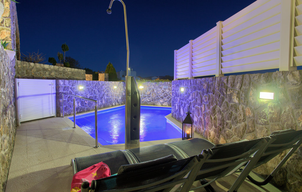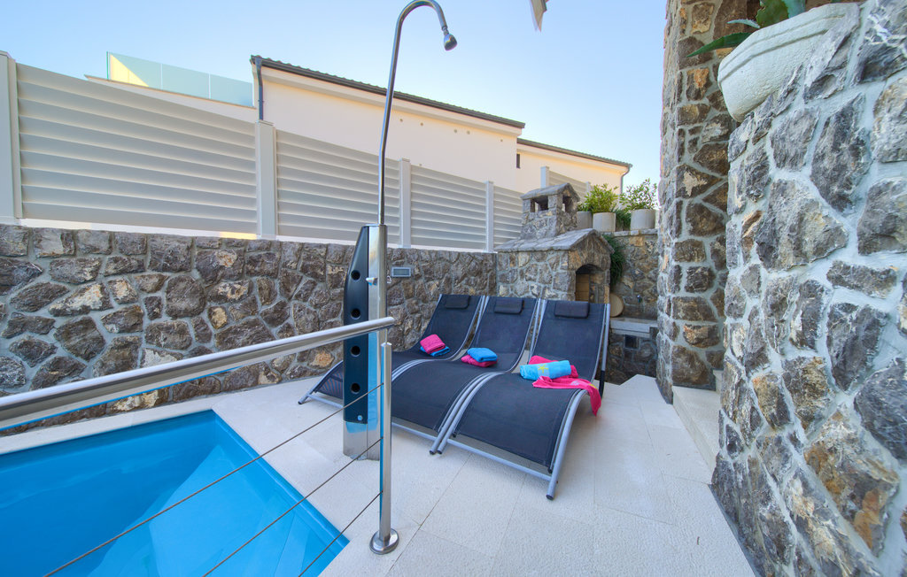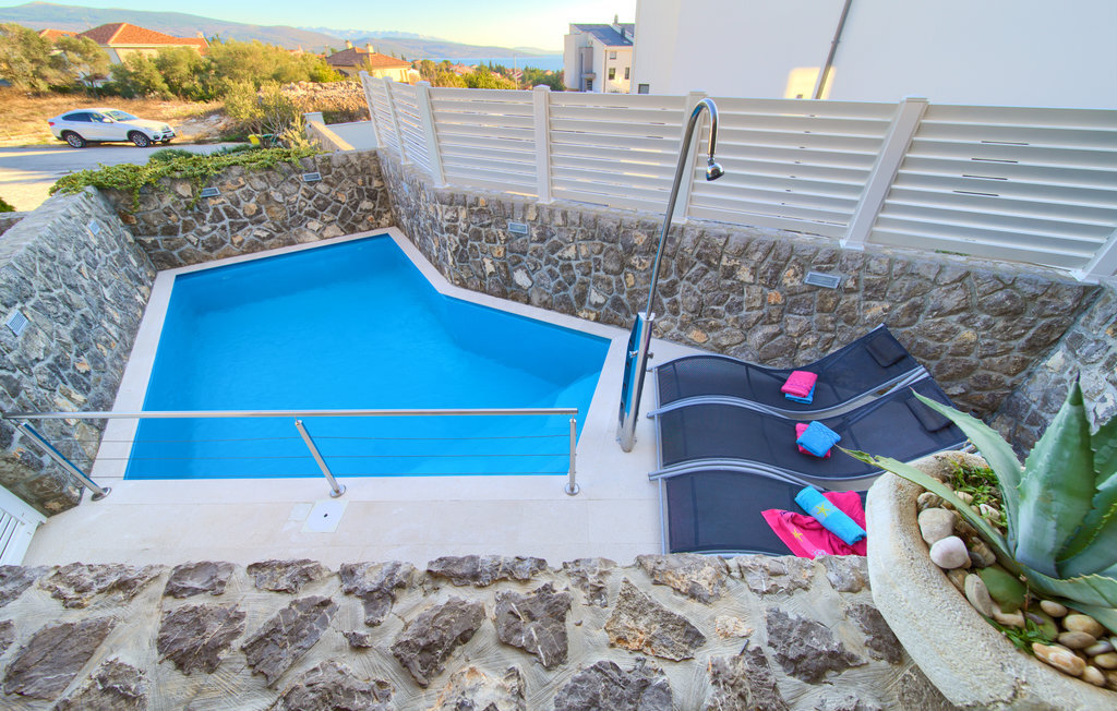 Belle maison mitoyenne à Krk, située au-dessus de la vieille ville historique. Ici, vous vous sentirez comme chez vous. A l'intérieur, des peintures et de beaux détails créent une atmosphère élégante. Le salon donne directement sur la terrasse couverte. Sous celle-ci se trouvent la piscine (chauffée de début mai à fin septembre), le solarium et un barbecue. La piscine et les installations disponibles sont à l'abri des regards des autres hôtes et des voisins. Les chambres à coucher se trouvent à l'étage supérieur. Une belle maison de vacances pour des vacances en famille. Loin de l'agitation de la ville, vous pouvez explorer le superbe emplacement entouré de nature, où les plages, les restaurants et les magasins sont à proximité. Explorez la riche histoire et le patrimoine culturel de l'île. Pour varier les plaisirs, vous pouvez faire du wakeboard à Punta, un téléski, du jet-ski ou du karting à Krk. A proximité immédiate, il est possible de bénéficier de la demi-pension et du wellness moyennant un supplément.
