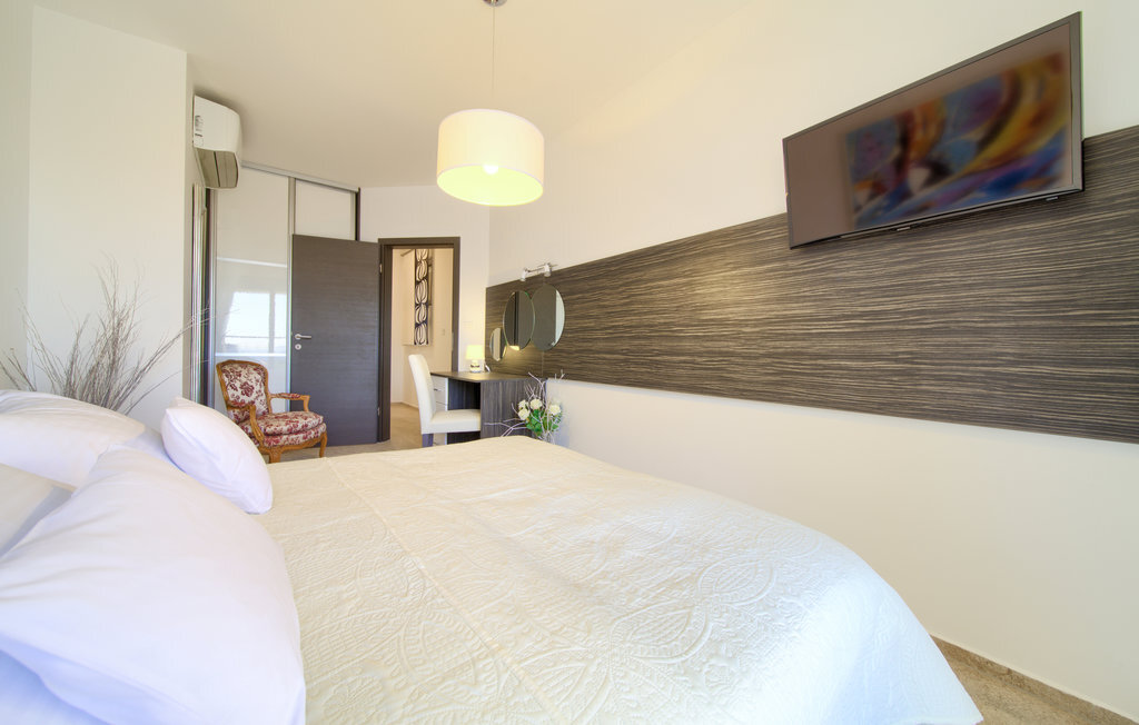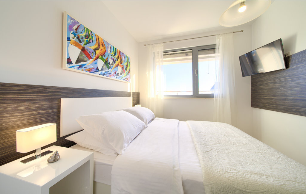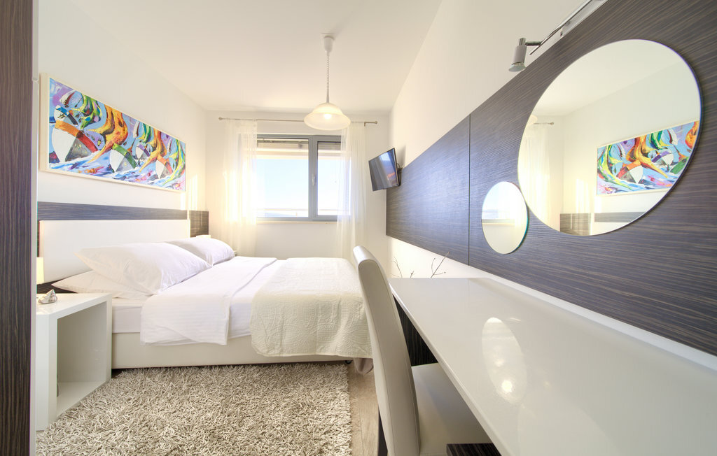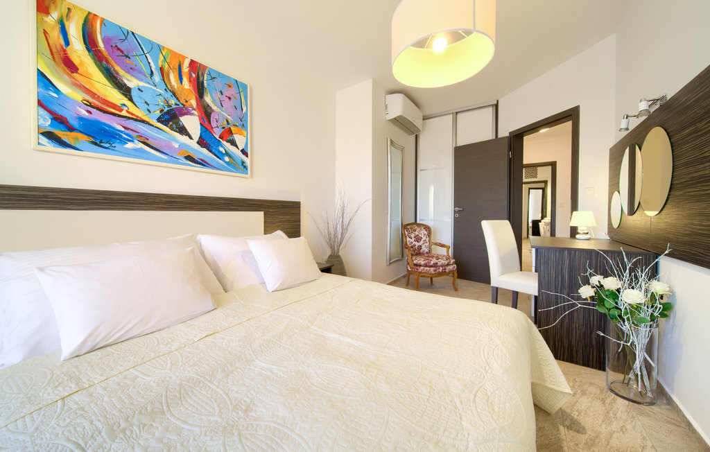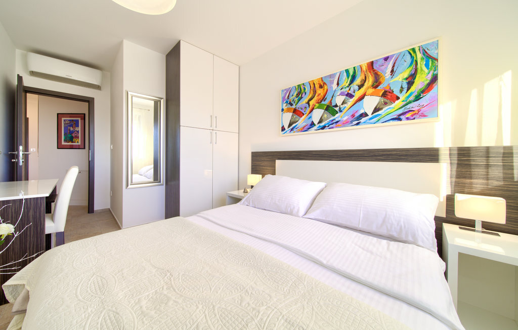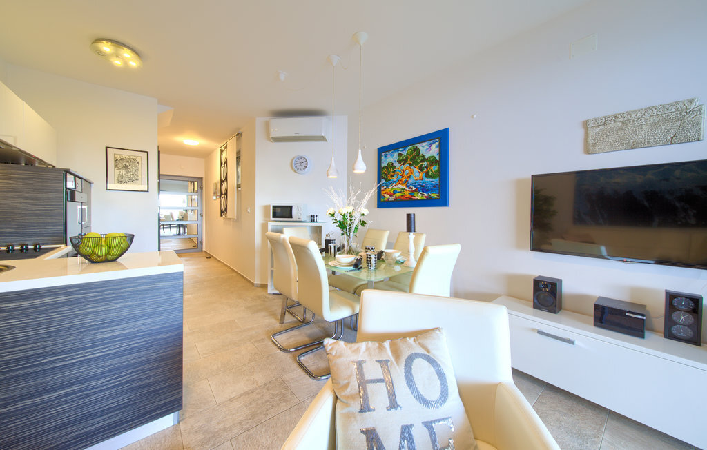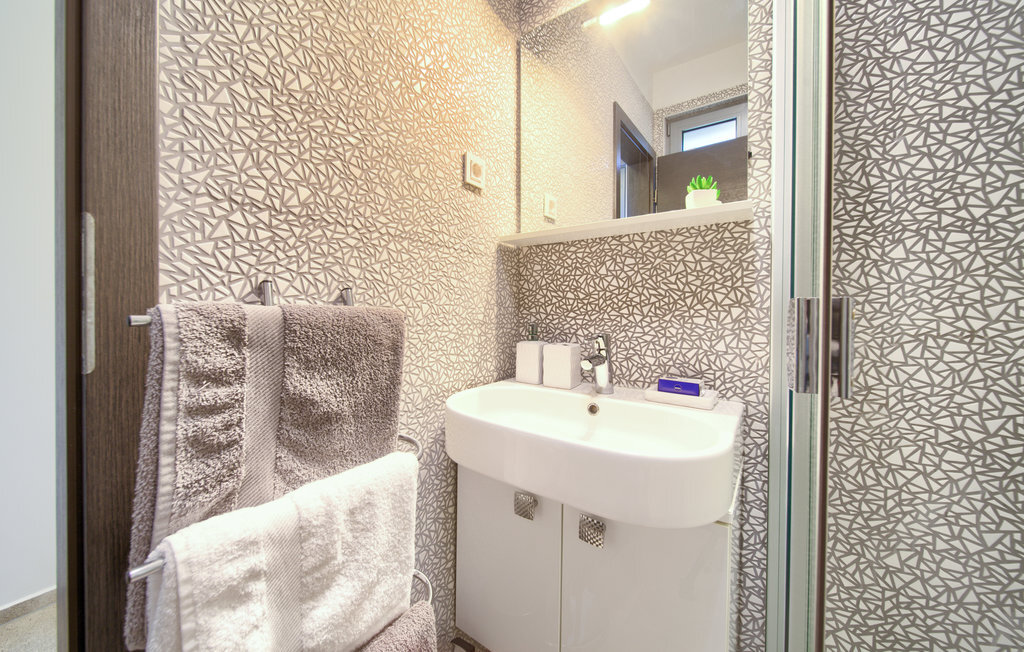 Belle maison mitoyenne à Krk, située au-dessus de la vieille ville historique. Ici, vous vous sentirez comme chez vous. A l'intérieur, des peintures et de beaux détails créent une atmosphère élégante. Le salon donne directement sur la terrasse couverte. Sous celle-ci se trouvent la piscine (chauffée de début mai à fin septembre), le solarium et un barbecue. La piscine et les installations disponibles sont à l'abri des regards des autres hôtes et des voisins. Les chambres à coucher se trouvent à l'étage supérieur. Une belle maison de vacances pour des vacances en famille. Loin de l'agitation de la ville, vous pouvez explorer le superbe emplacement entouré de nature, où les plages, les restaurants et les magasins sont à proximité. Explorez la riche histoire et le patrimoine culturel de l'île. Pour varier les plaisirs, vous pouvez faire du wakeboard à Punta, un téléski, du jet-ski ou du karting à Krk. A proximité immédiate, il est possible de bénéficier de la demi-pension et du wellness moyennant un supplément.