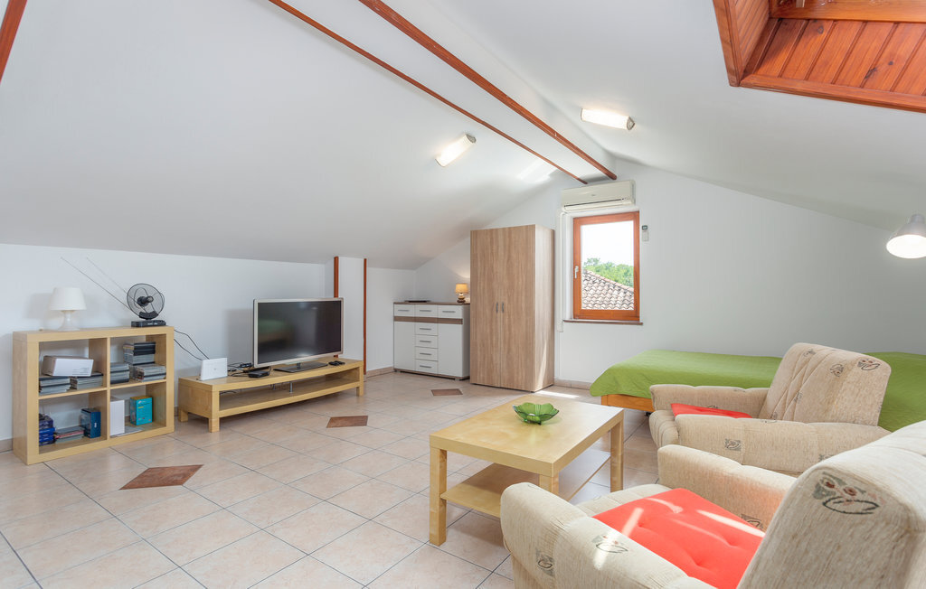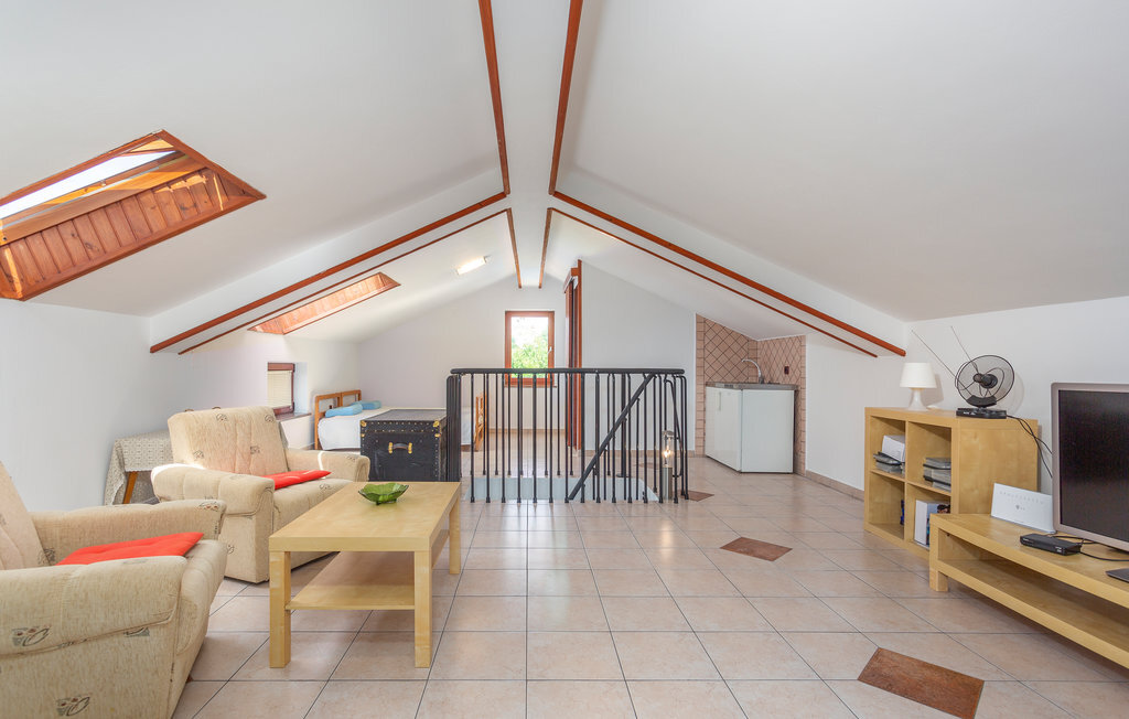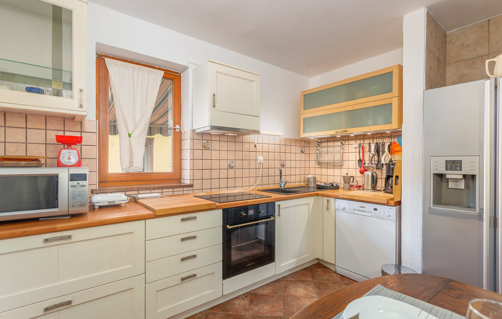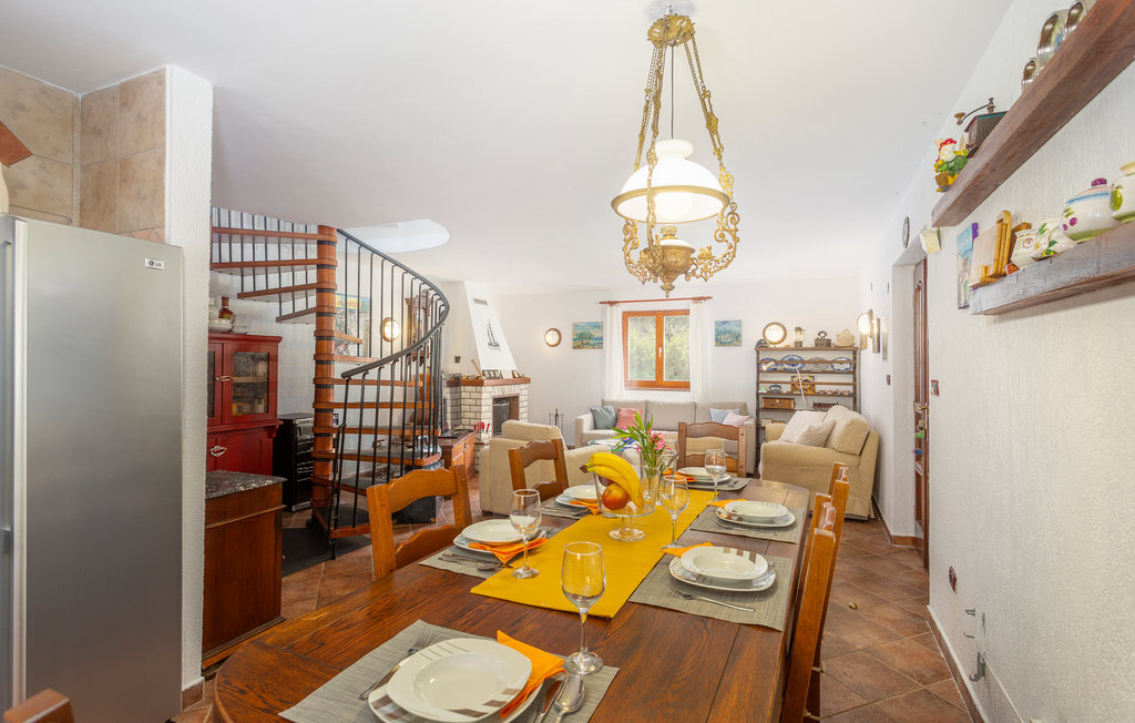 Cette maison de vacances traditionnelle se trouve à Sveti Vid, un petit village non loin de Malinska. Passez d'agréables vacances dans cette maison construite en 1860, elle est loin du tumulte de la ville. Les étages sont reliés par des escaliers en colimaçon, mais ceux qui mènent à la galerie sont très raides et ne conviennent pas aux personnes âgées ou aux jeunes enfants. La hauteur de plafond la plus basse dans le grenier est de 1,50 mètre. Le terrain est soigneusement aménagé et clôturé, de sorte que les enfants peuvent jouer sans souci. Il y a aussi une belle piscine extérieure. Il y a des pistes cyclables et des sentiers de randonnée à proximité, ainsi que de nombreuses autres activités de loisirs.