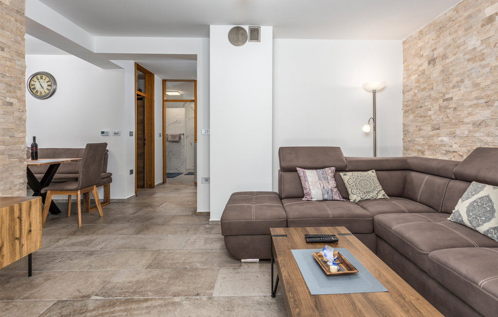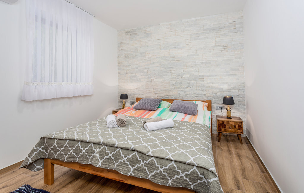 Située dans le petit village de Muraj, cette maison de vacances romantique est l'endroit idéal pour des vacances sans stress. Profitez du grand jardin plein de verdure avec une aire de jeux polyvalente en sable avec un panier de basket-ball, également adapté au bowling et au badminton. L'intérieur est agréable et fonctionnel. Le salon spacieux donne accès à la grande terrasse. Sur la pelouse, vos enfants peuvent jouer sans souci et c'est là que se trouve l'incontournable barbecue. Vivez des vacances actives, avec des randonnées, du vélo, du wakeboard ainsi que du karting et découvrez le riche patrimoine historique de l'île de Krk. Ne manquez pas de visiter le village de Vrbnik avec ses caves à vin et de déguster d'excellentes spécialités traditionnelles de l'île dans l'un des restaurants.