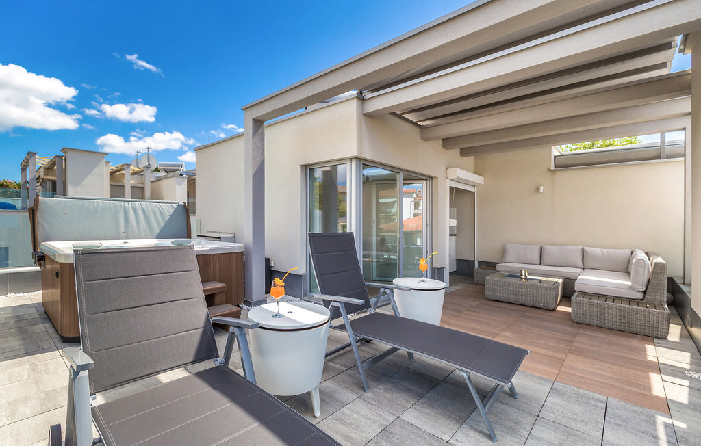 Bien-être à l'extérieur : Location de vacances disposant de chaises-longues et d'un ou plusieurs équipements tels que piscine extérieure, jacuzzi extérieur, lit à baldaquin de jardin etc...