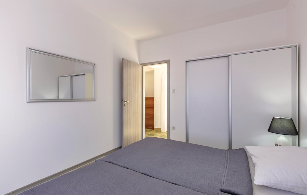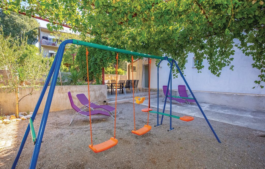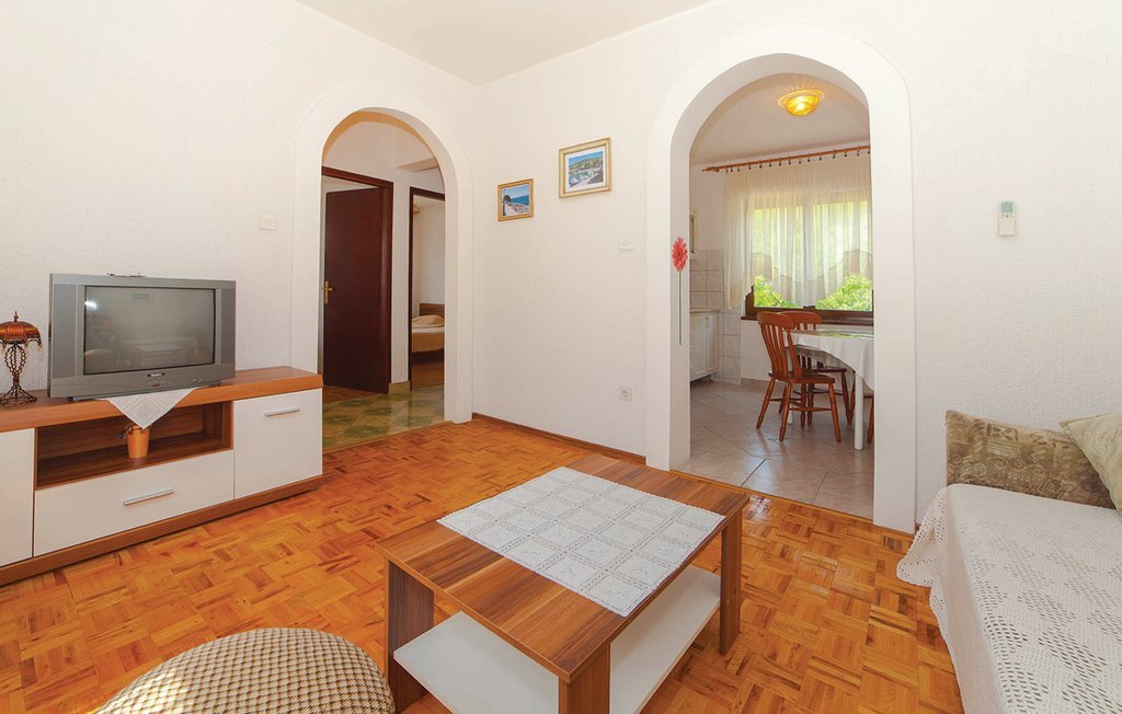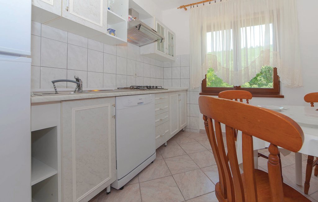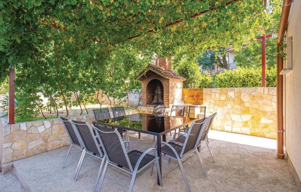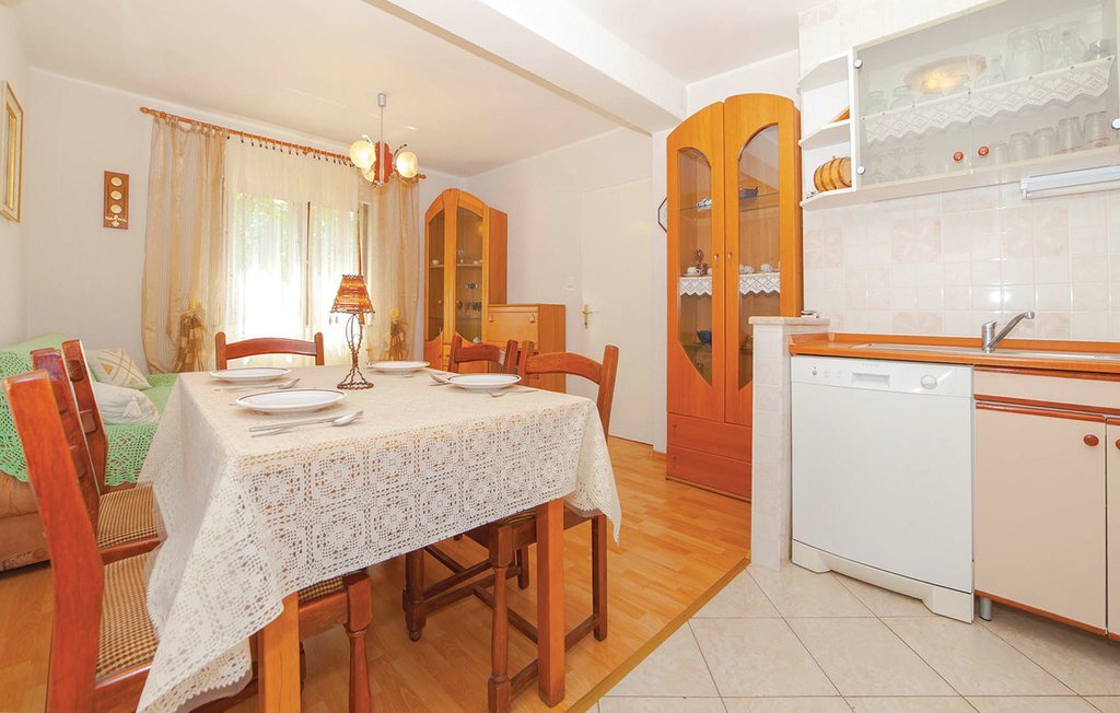 Dans le petit village de Povile, près de la ville, se trouve cette maison de vacances située au calme. Le rez-de-chaussée et le premier étage sont presque identiques dans la répartition des pièces, les étages sont reliés entre eux par un escalier extérieur. Derrière la maison se trouve une grande terrasse ouverte avec barbecue, idéale pour passer des moments ensemble en plein air. La maison est optimale pour deux familles ou un groupe d'amis qui souhaitent passer leurs vacances ensemble. Les plages voisines sont rapidement accessibles à pied. La plage est de galets et non loin se trouve une plage rocheuse avec un plateau en béton.