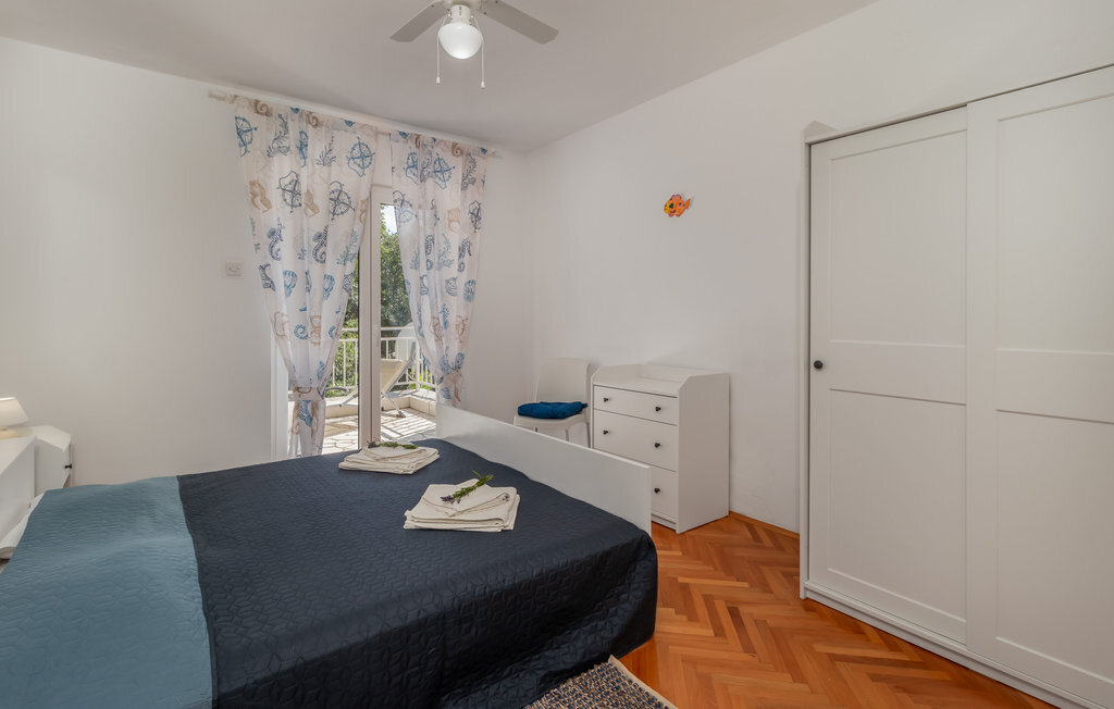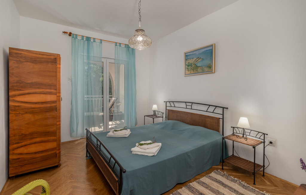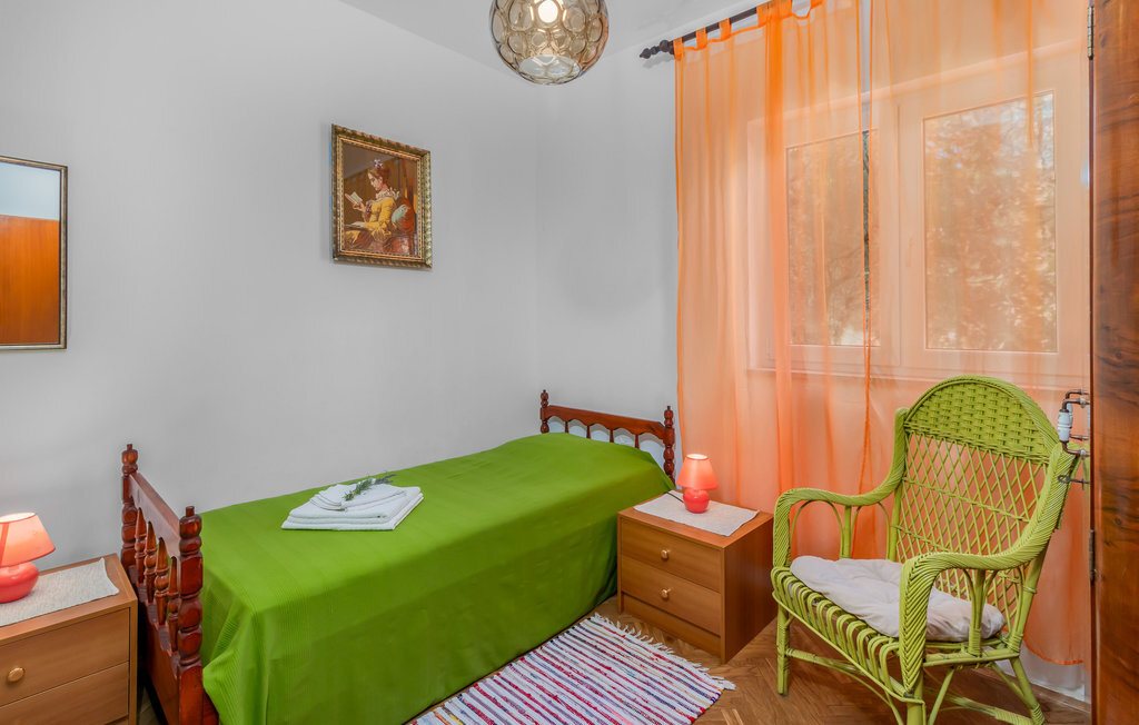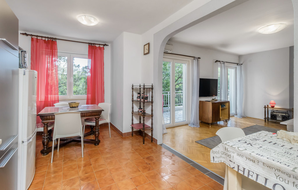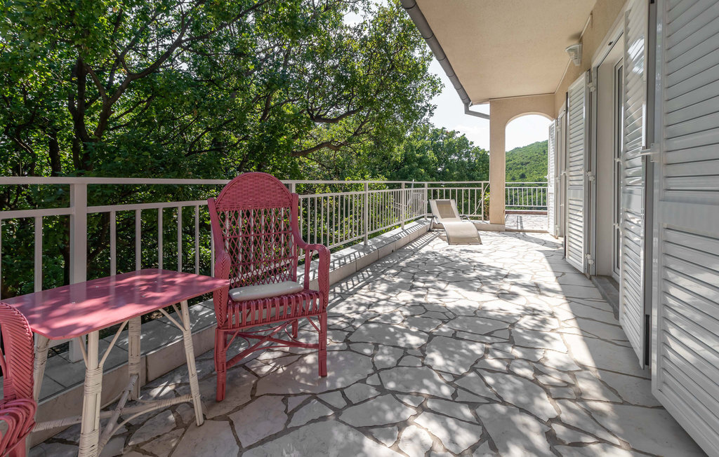 Povile est une petite localité située non loin de Novi Vindodolski. C'est ici que vous attend cette maison de vacances à deux étages avec des escaliers extérieurs. Au rez-de-chaussée se trouve la terrasse couverte et sur la terrasse ouverte à l'étage supérieur, vous avez une belle vue sur la mer. Sur le terrain se trouve également une terrasse de jardin avec barbecue, où vous pourrez profiter de soirées conviviales autour d'un barbecue. La belle plage de Povile n'est qu'à quelques minutes à pied. Le sympathique propriétaire de la maison habite non loin de la maison de vacances.