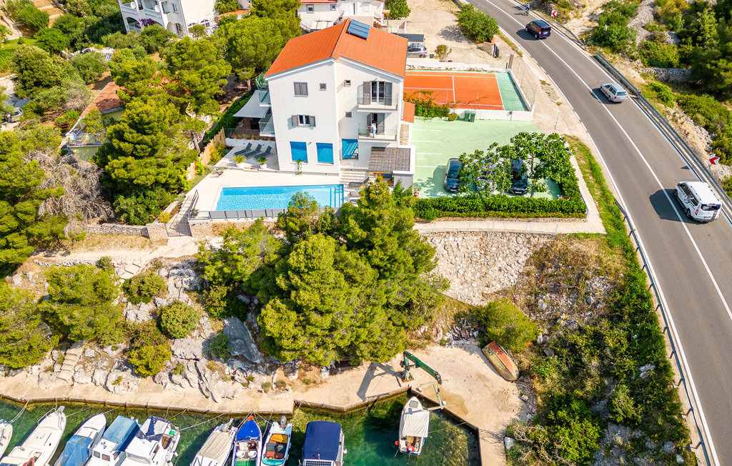À seulement 10 minutes en voiture d'ibenik se trouve cette maison de vacances pratique avec une belle vue sur la mer, qui convient très bien à un grand groupe. La maison se trouve sur une route fréquentée. Elle dispose d'une piscine avec eau de mer, d'un court de tennis privé et d'un jardin clôturé avec barbecue. La maison est située dans un quartier calme. Assistez à l'une des nombreuses manifestations, explorez les environs ou faites-vous plaisir dans l'un des nombreux restaurants. La ville d'ibenik est située dans une baie pittoresque à l'embouchure de la rivière Krka. Solaris, un très bon centre de vacances, se trouve à proximité et offre un grand choix de divertissements, surtout pour les enfants. Nous recommandons de visiter les parcs nationaux de Krka et Kornati. La propriété dispose d'un embarcadère.