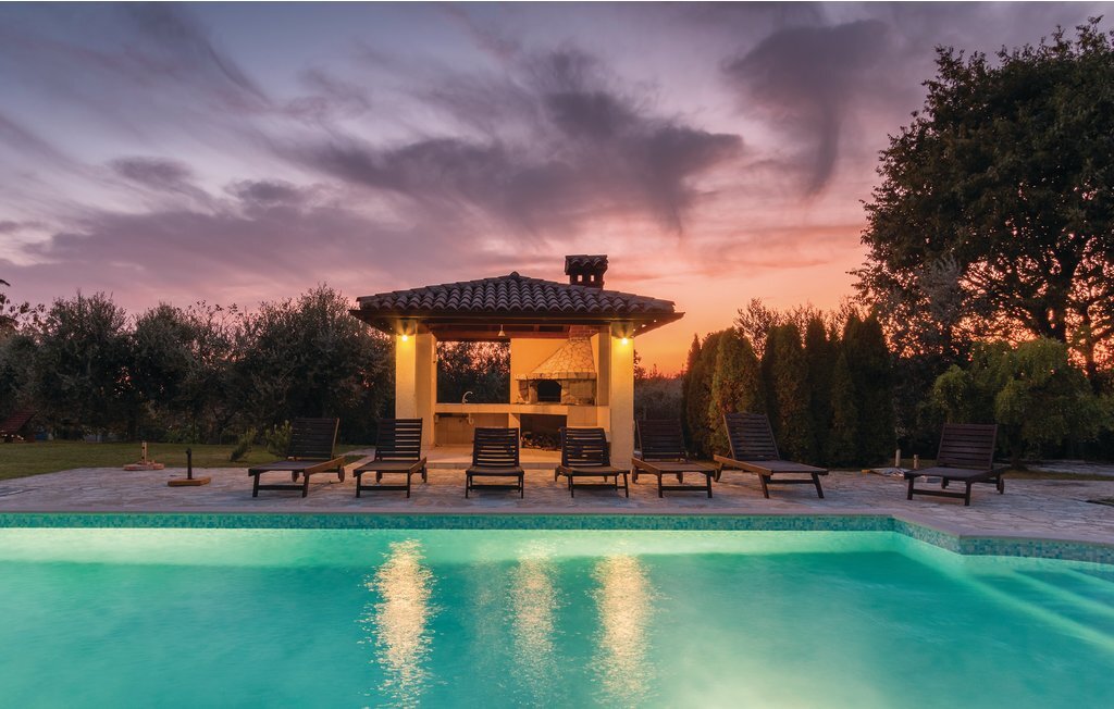 Bien-être à l'extérieur : Location de vacances disposant de chaises-longues et d'un ou plusieurs équipements tels que piscine extérieure, jacuzzi extérieur, lit à baldaquin de jardin etc...