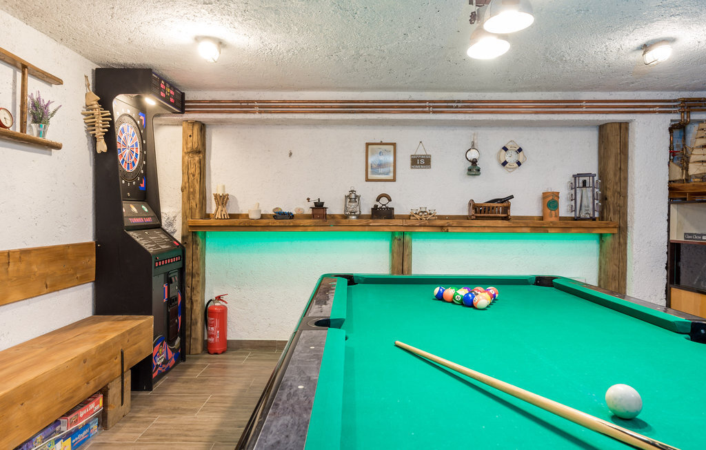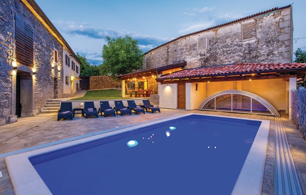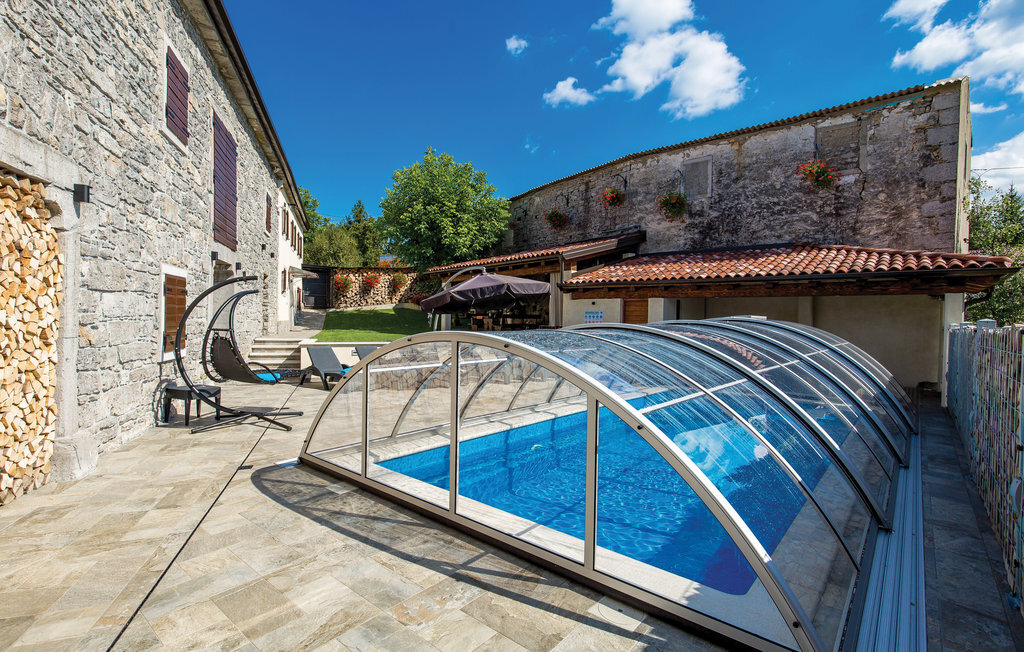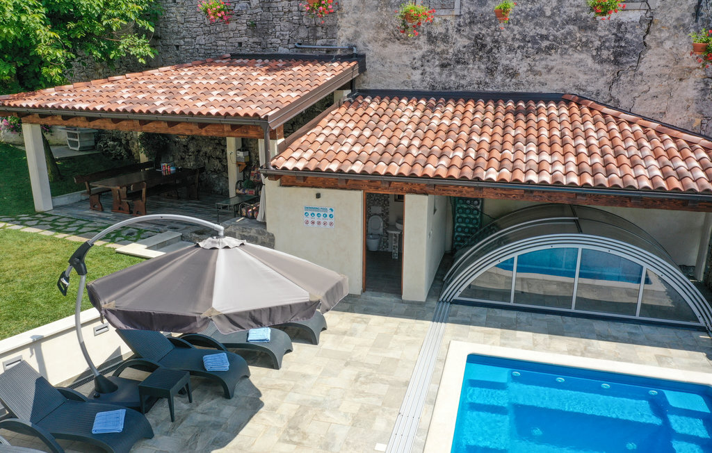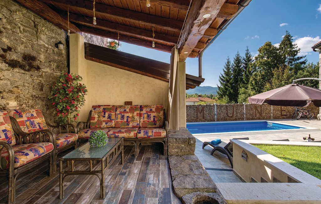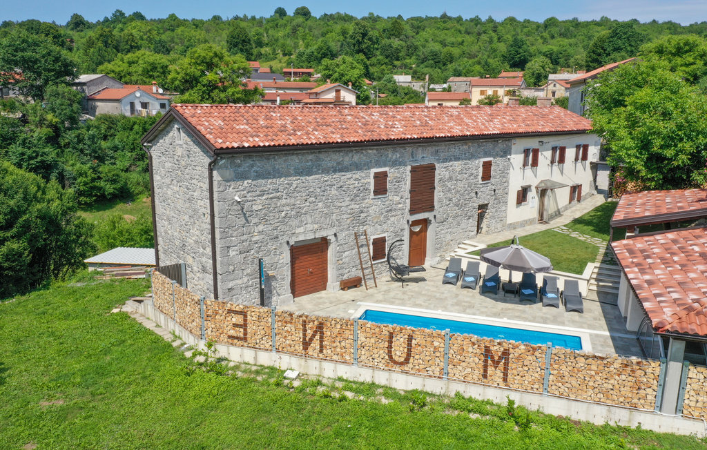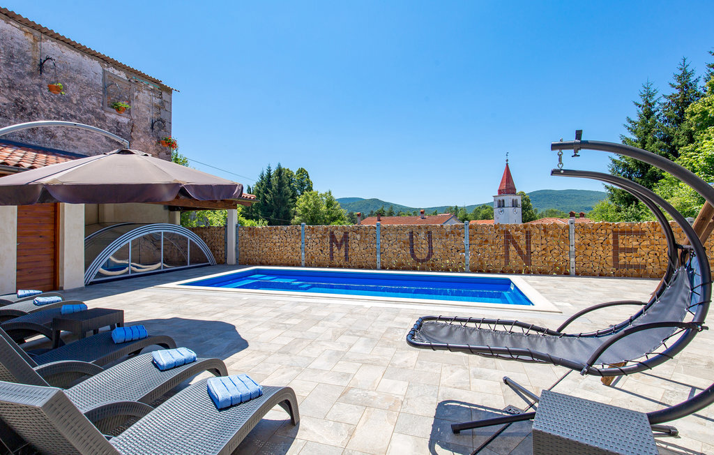 Cette charmante maison de vacances se trouve dans le petit village de Vele Mune. Vous y passerez des vacances parfaites, vous serez entourés d'un paysage magnifique, de vergers, de prairies, d'étangs et de forêts. La maison est aménagée de manière confortable et pratique. Au rez-de-chaussée se trouve la salle de séjour et à l'étage, les chambres à coucher. La cour est spacieuse ; on y trouve une terrasse, une piscine et un barbecue. La piscine est équipée d'un stérilisateur UV qui assure en plus l'hygiène de l'eau. Avec le billard et les fléchettes, vous vous amuserez beaucoup. Le climat de la côte montagneuse assure des journées chaudes et ensoleillées et des nuits fraîches. De belles plages se trouvent sur la Riviera d'Opatija, il y a également beaucoup à voir et à faire dans l'ancienne Kastav et à Rijeka. La baie de Kvarner abrite les meilleurs restaurants de Croatie, ils vous régaleront tous d'une excellente cuisine méditerranéenne. En accord avec le propriétaire, il est possible d'utiliser 3 vélos pour adultes et 2 pour enfants. Une coupole de piscine assure un plaisir agréable même en avant et en arrière-saison.